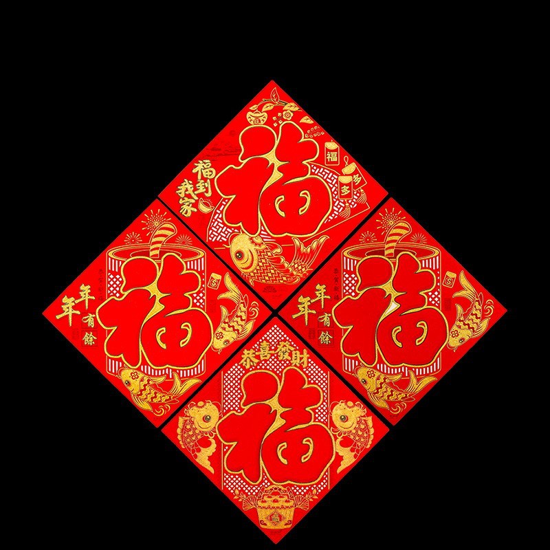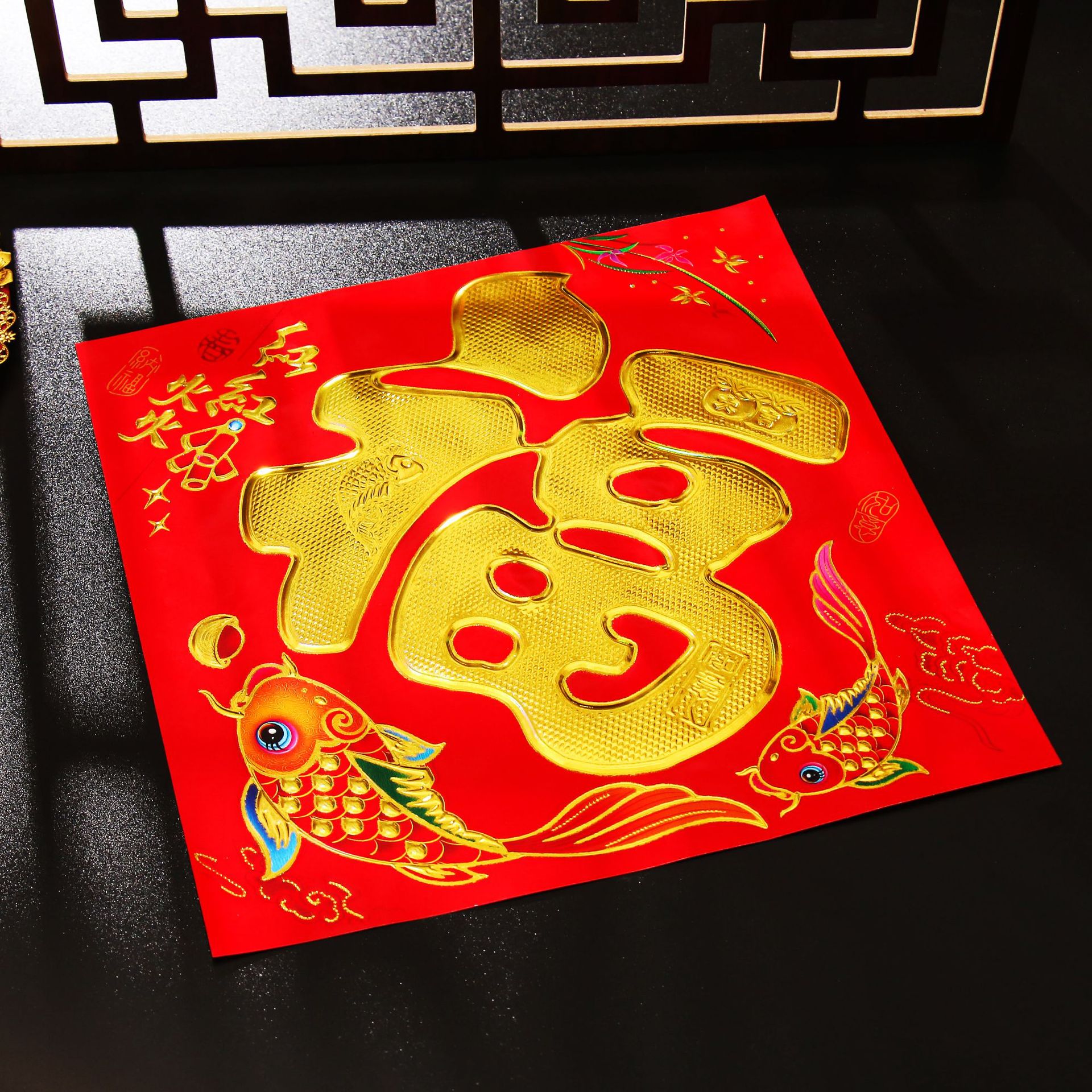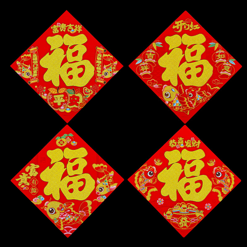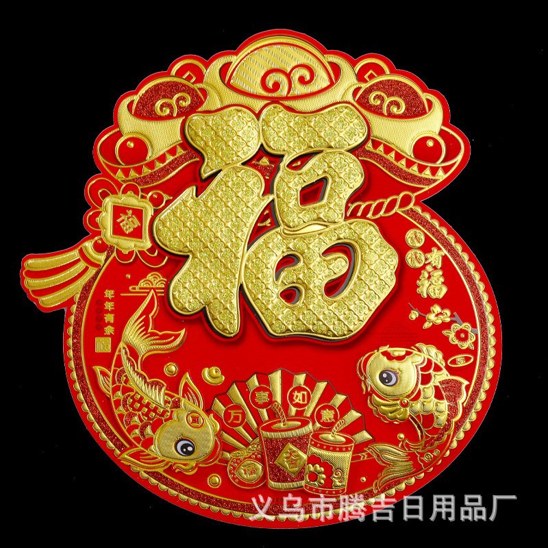 2026马年春节新款烫金生肖福满金平面大福字门贴年画义乌厂家直销