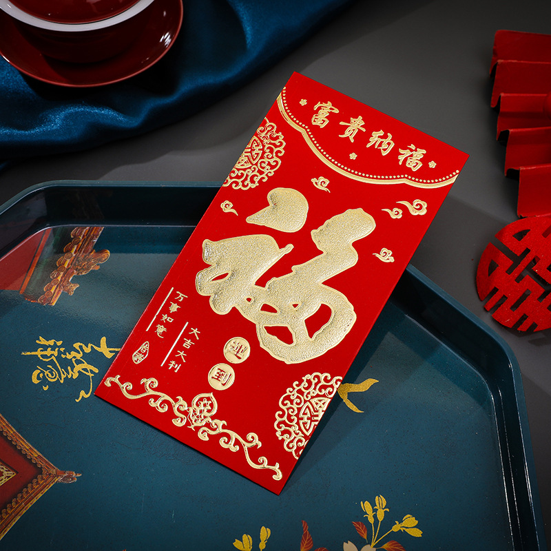 春节红包百元千元双色浮雕烫金红包 新年创意利是封批发地摊年货