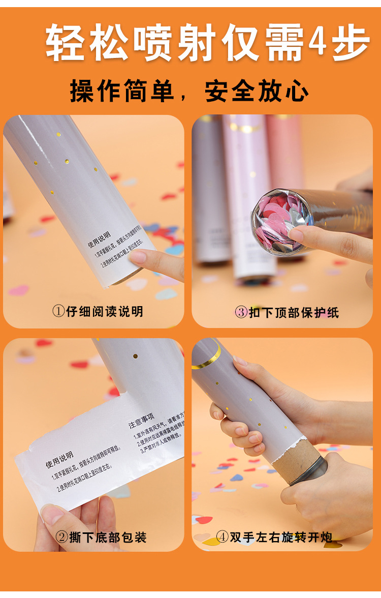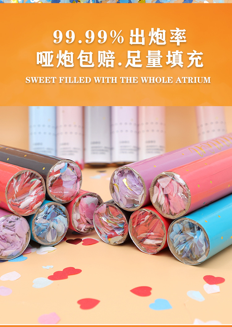 印金多色爱心直播间婚庆结婚派对氛围礼花筒礼炮手持喷花堵门道具