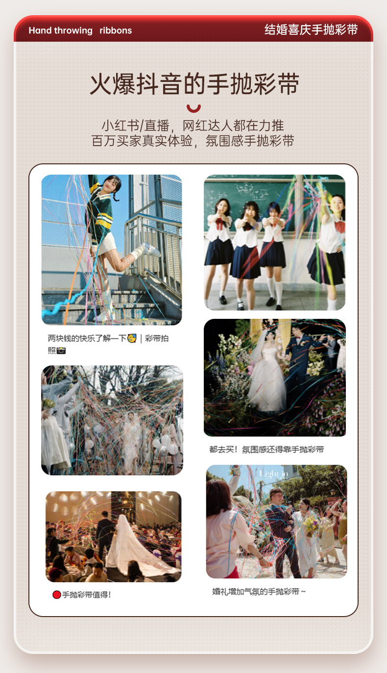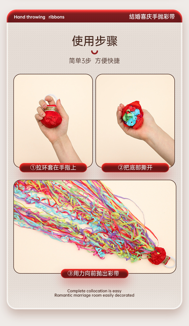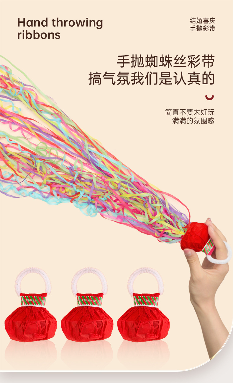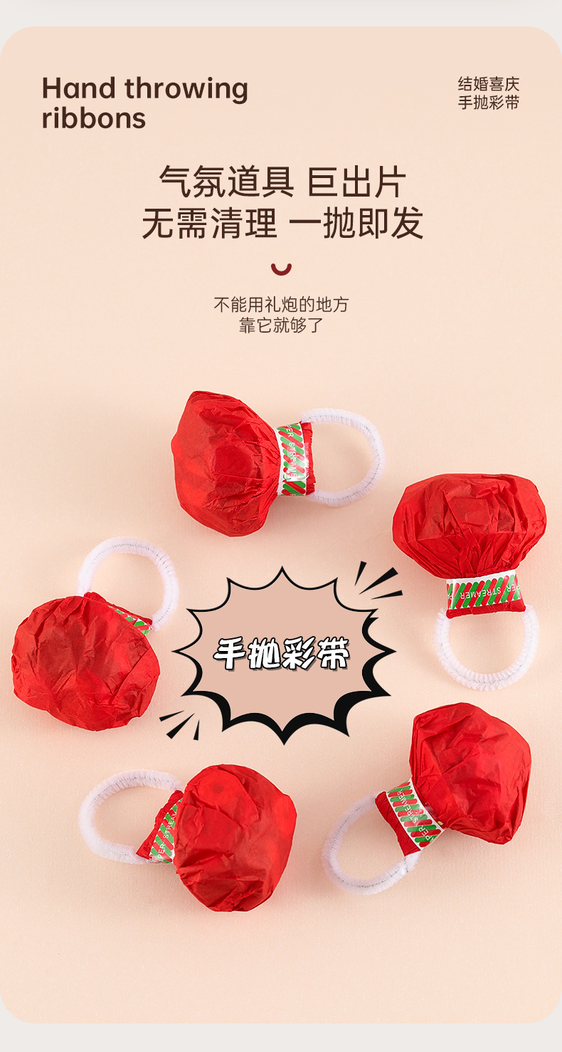 结婚手抛彩带订婚礼接亲蜘蛛丝手环礼花生日拉花彩条氛围拍照道具