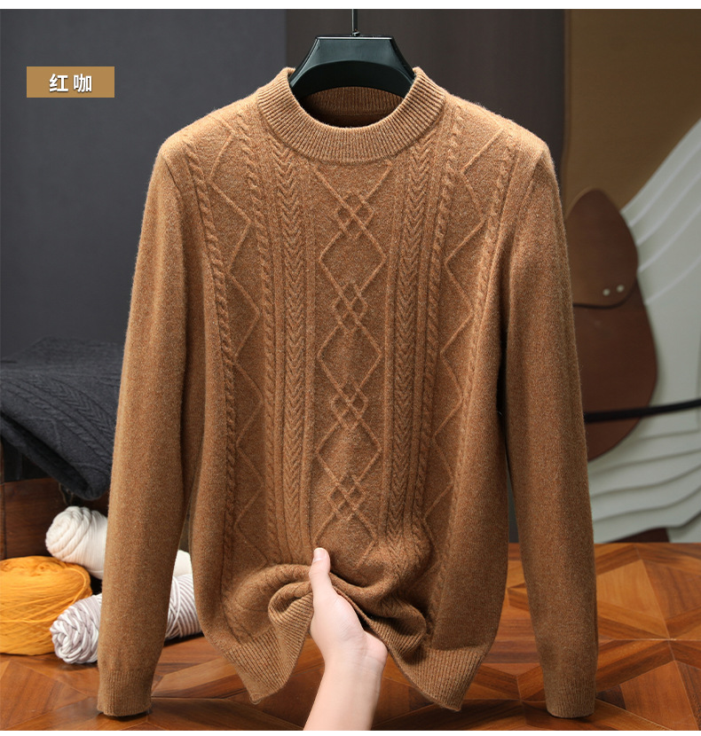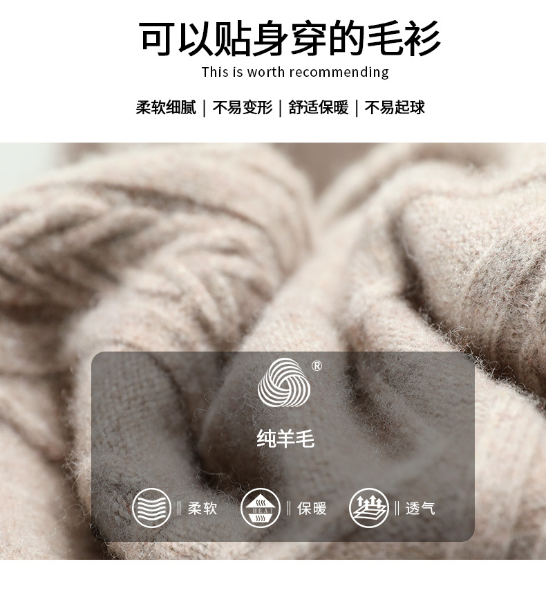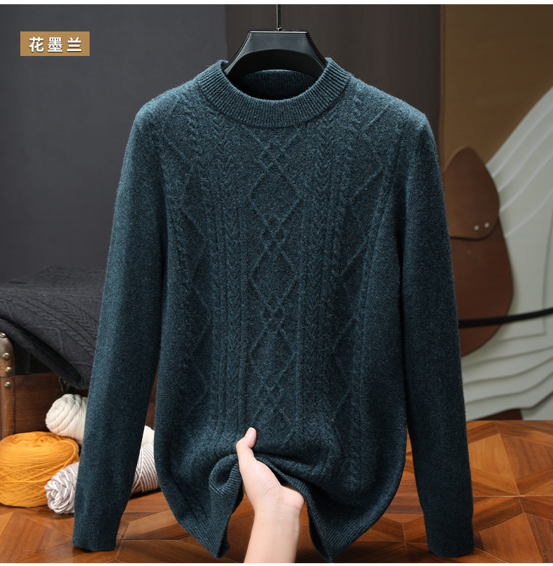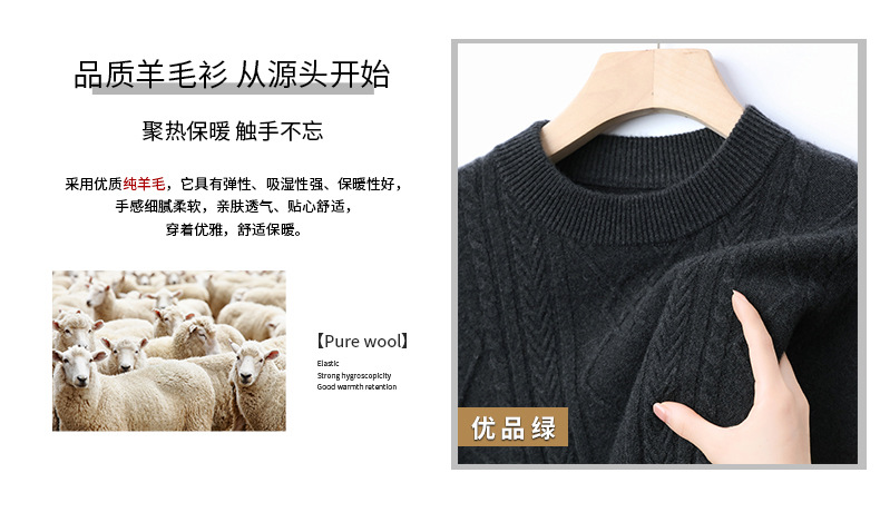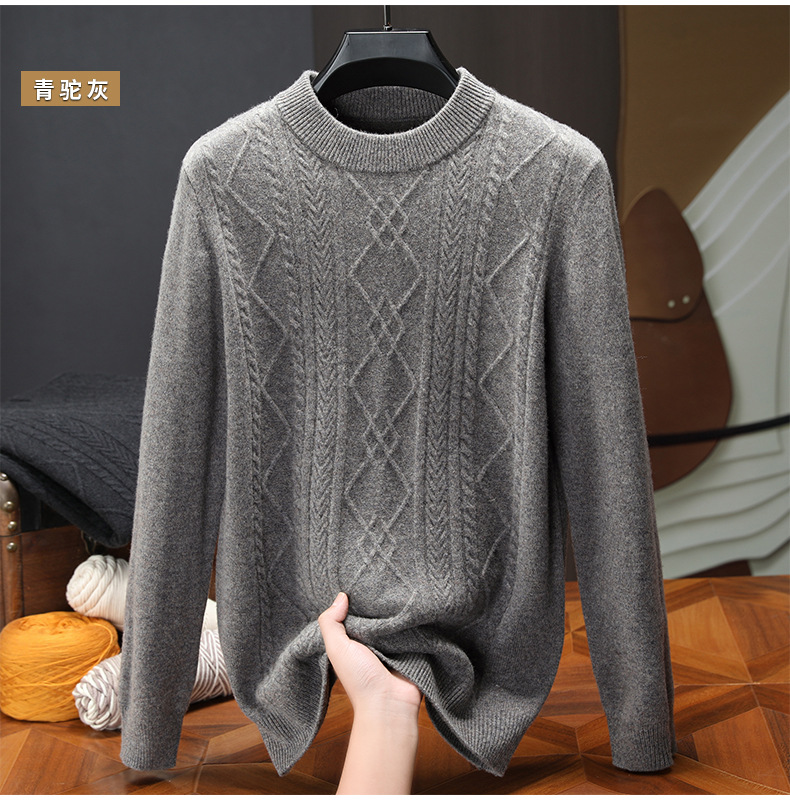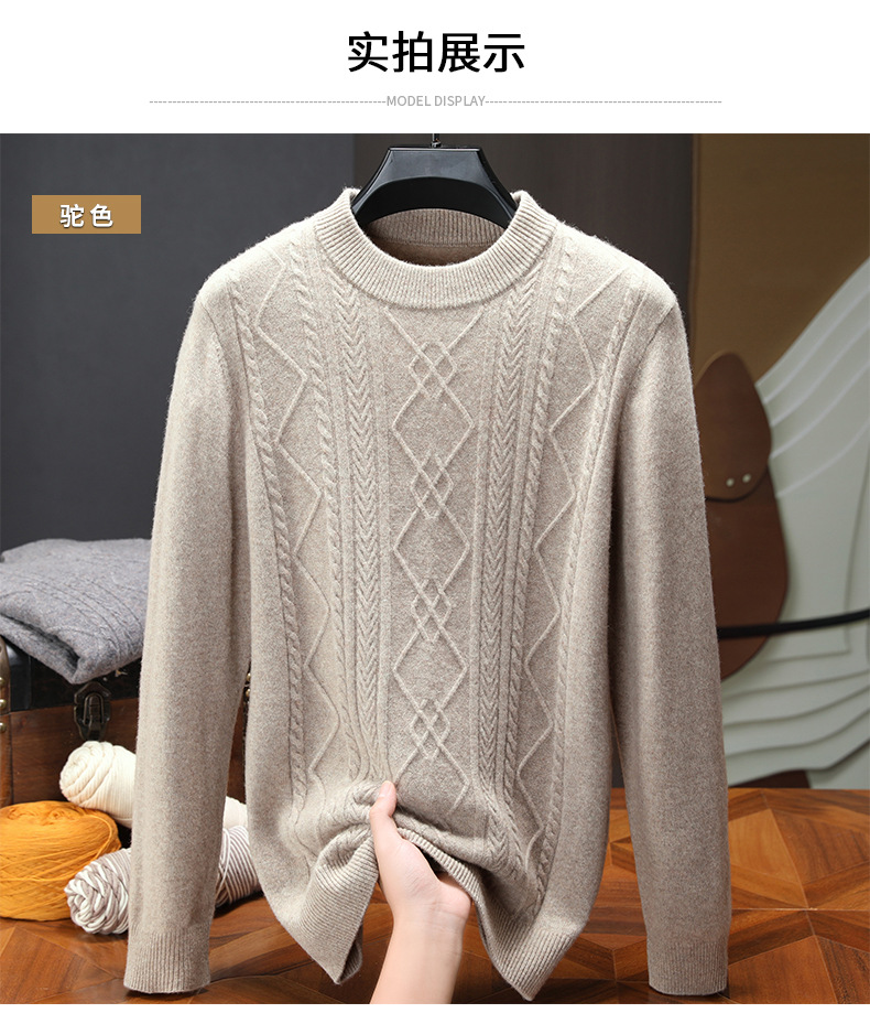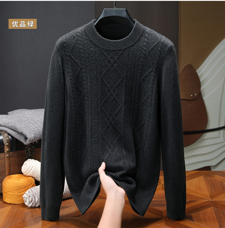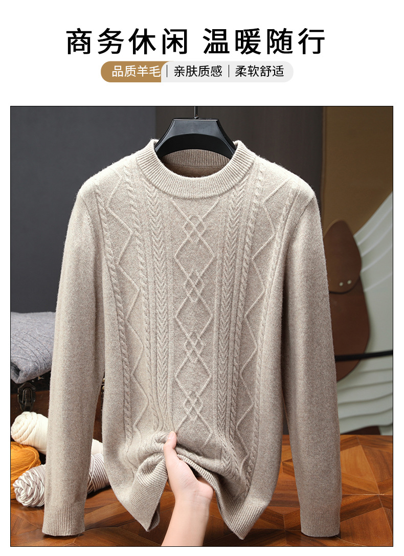 加厚秋冬款羊毛衫100纯男圆领内搭针织打底衫高端男士毛衣高级感