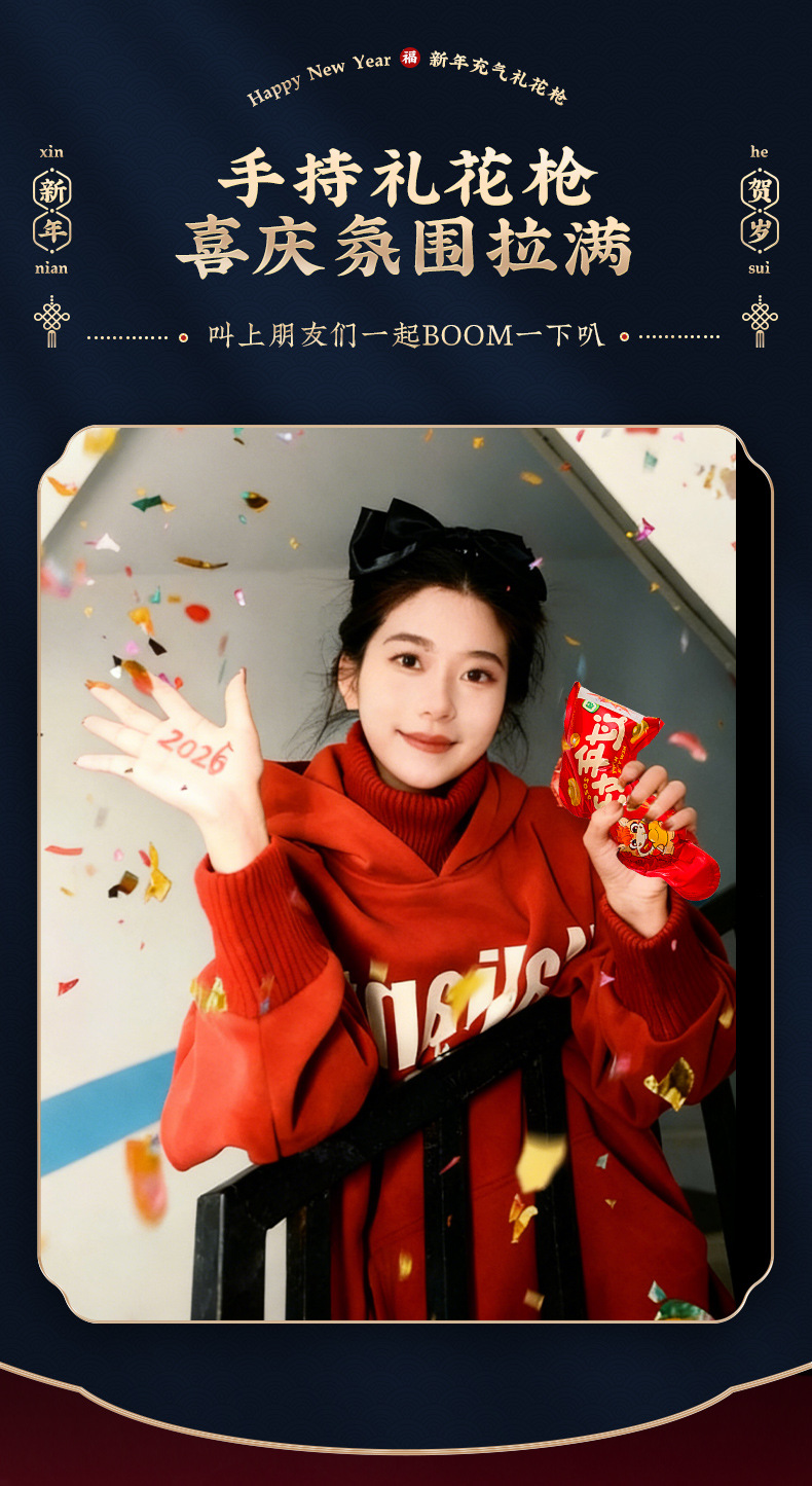 2026新年小礼炮手持礼花手枪元旦装饰马年过年春节氛围感拍照道具