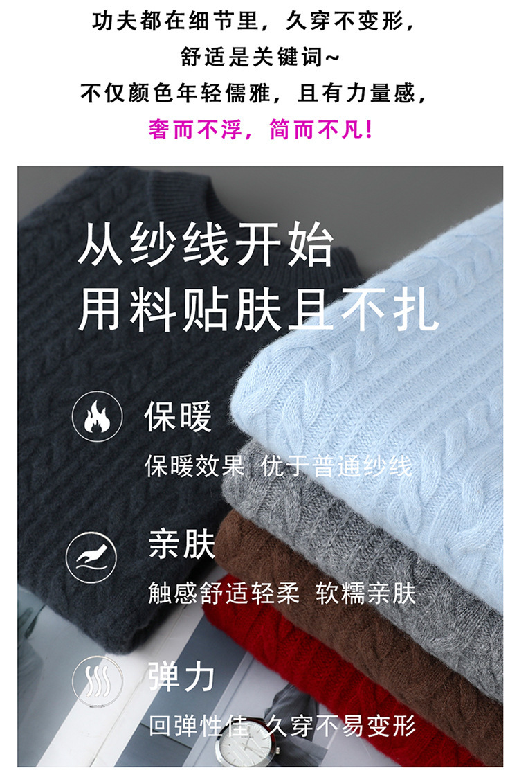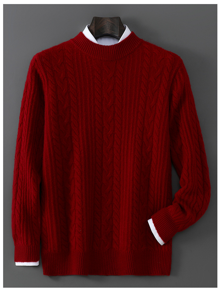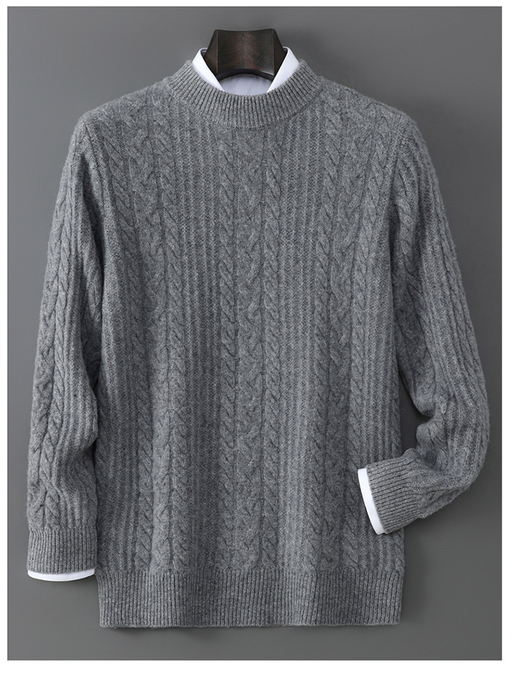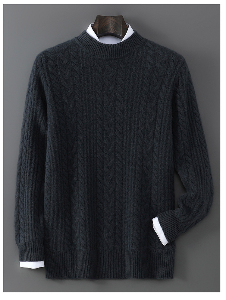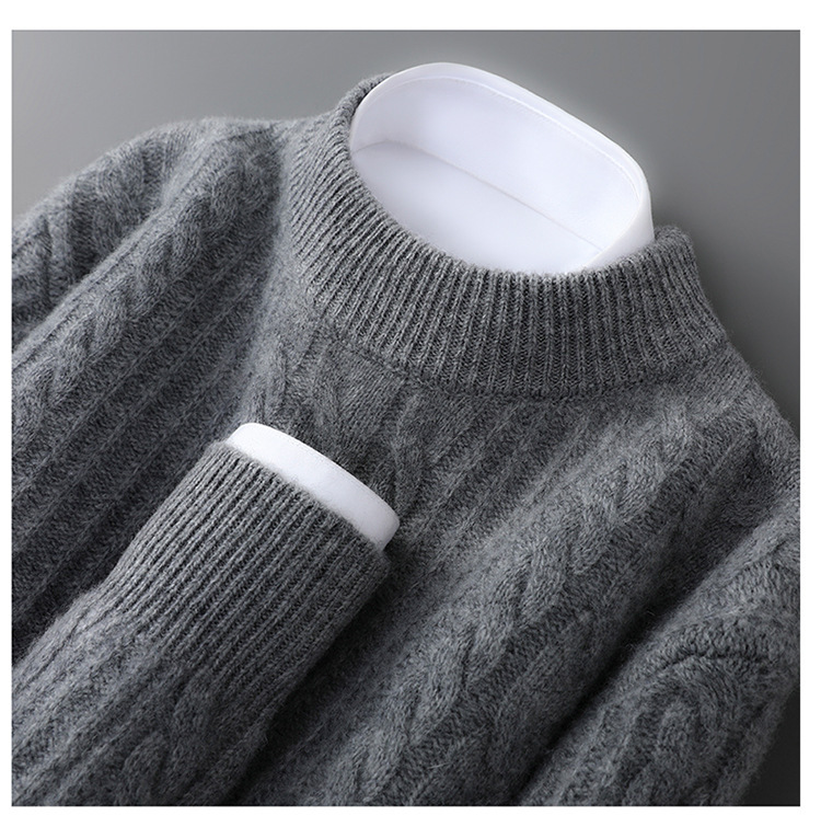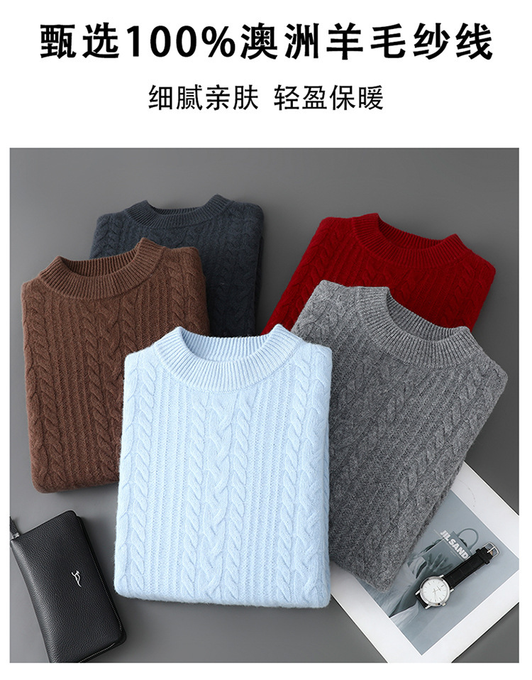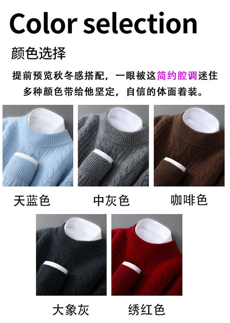 秋冬新款100%纯羊毛衫男士半高领套头宽松加厚毛衣休闲针织羊绒衫