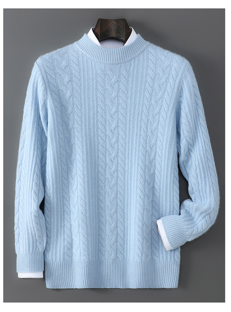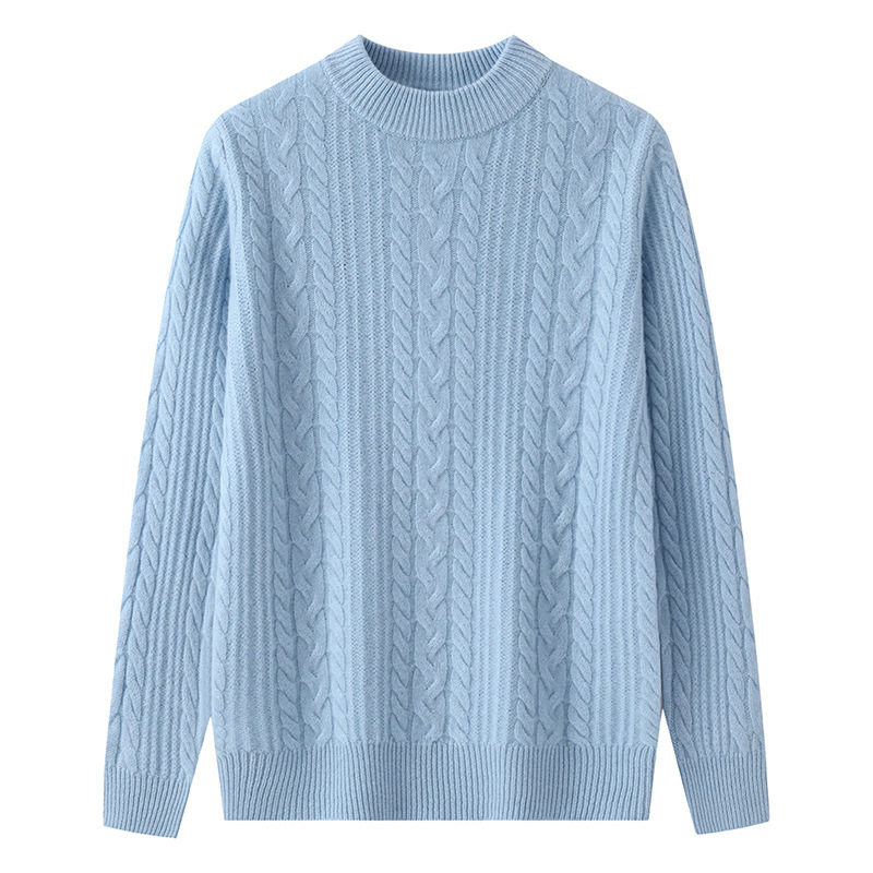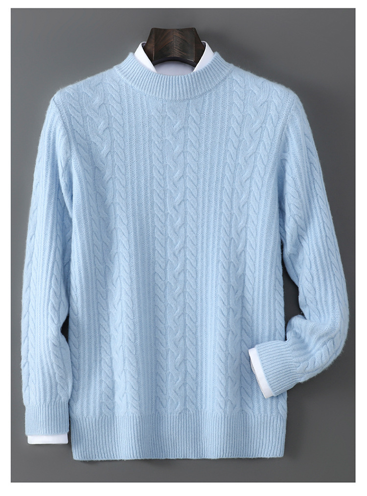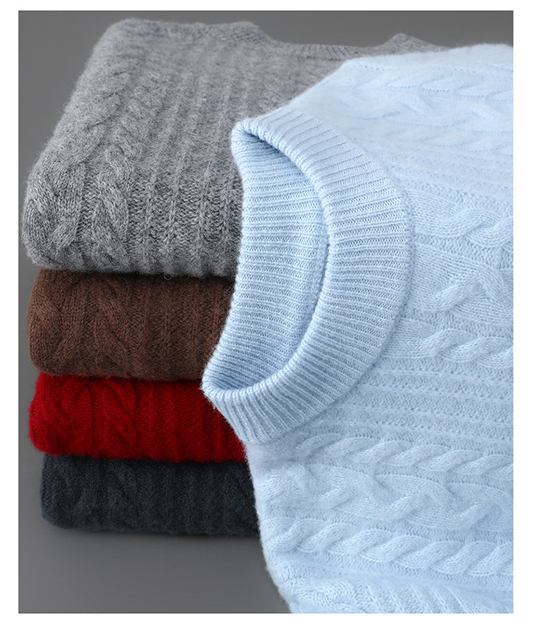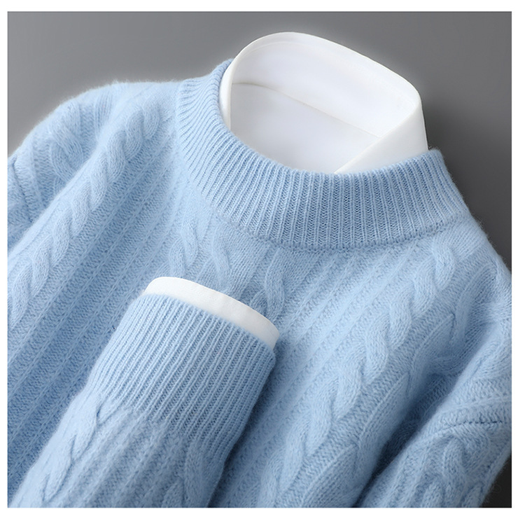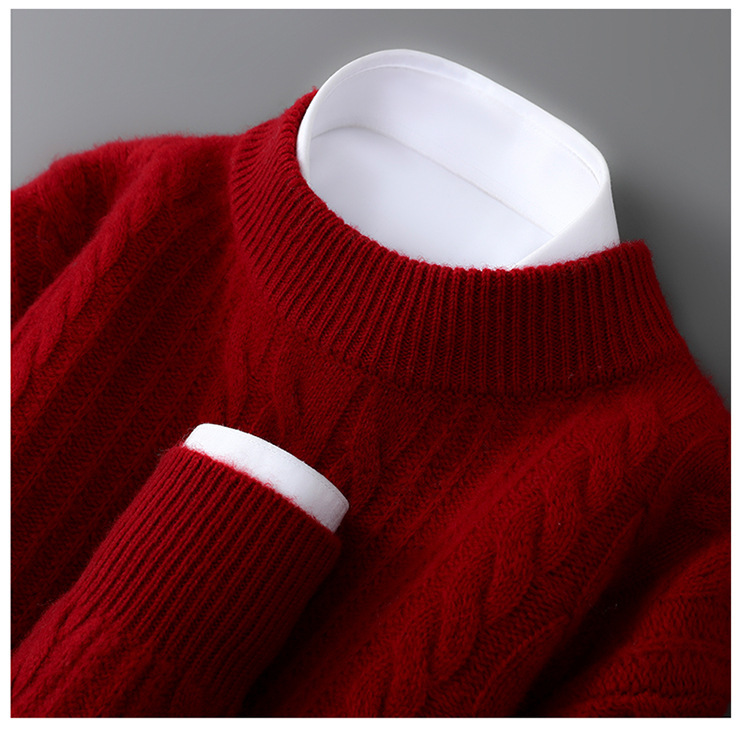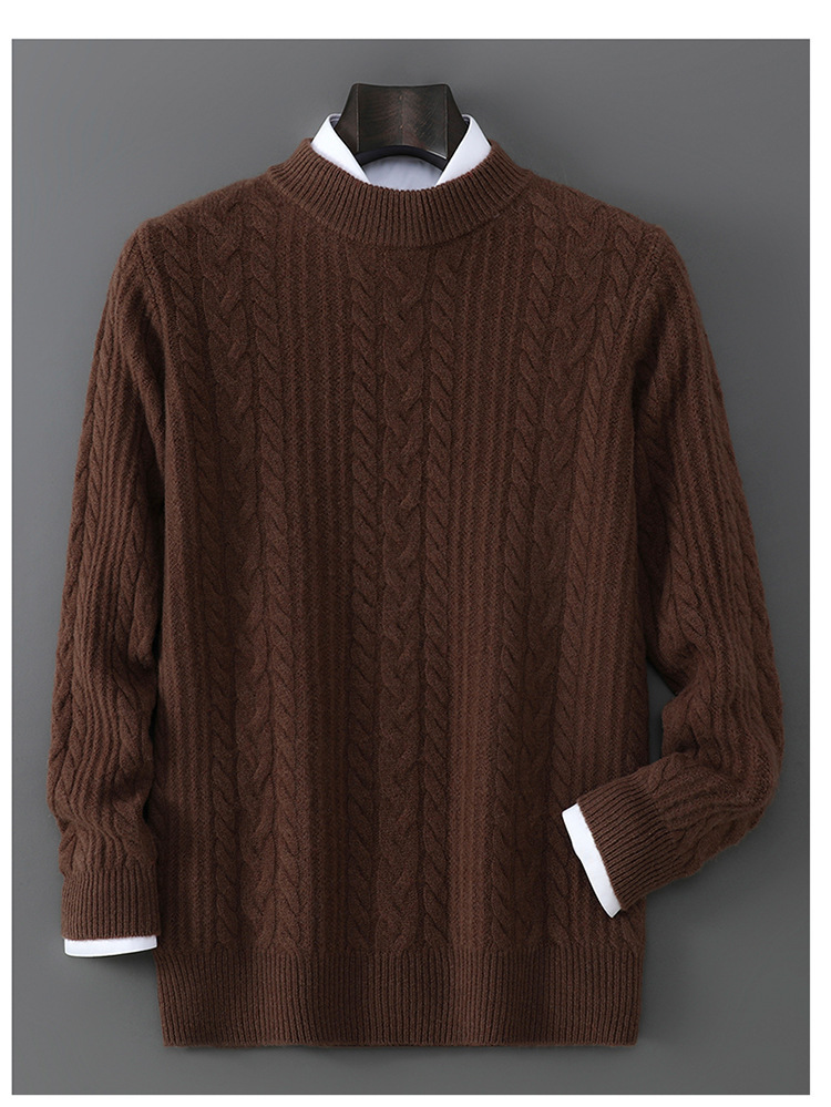 秋冬新款100%纯羊毛衫男士半高领套头宽松加厚毛衣休闲针织羊绒衫