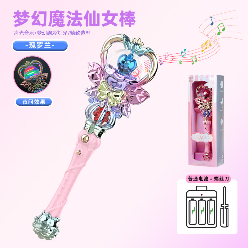 儿童旋转声光梦幻女王权杖魔法棒礼盒装灯光过家家礼品女孩玩具