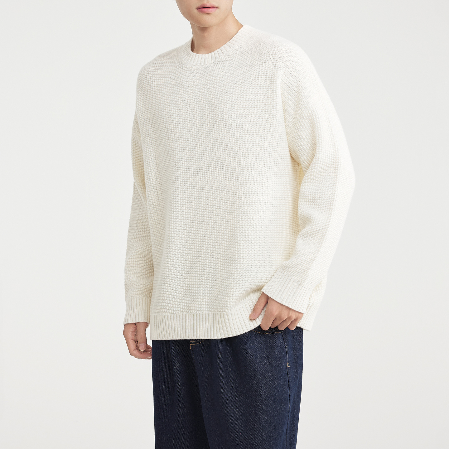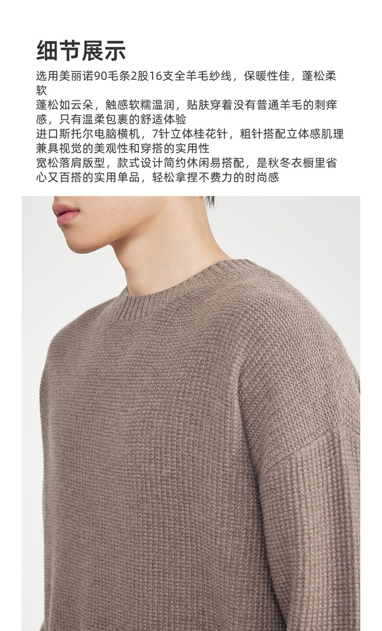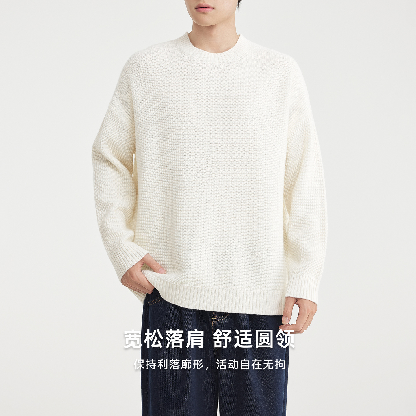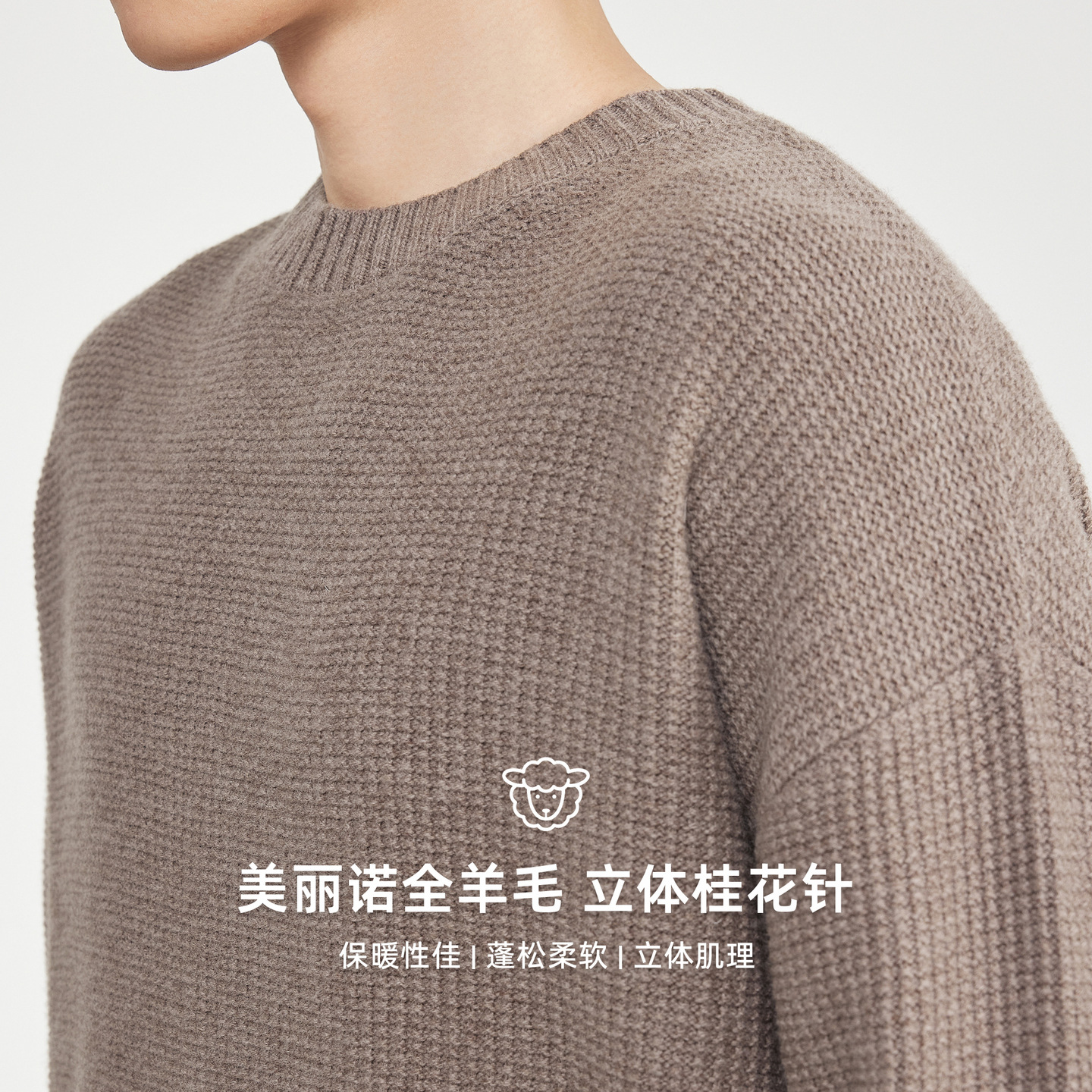 墨麦客男装重磅粗针羊毛衫男2025冬款桂花针全羊毛男士毛衣22080.