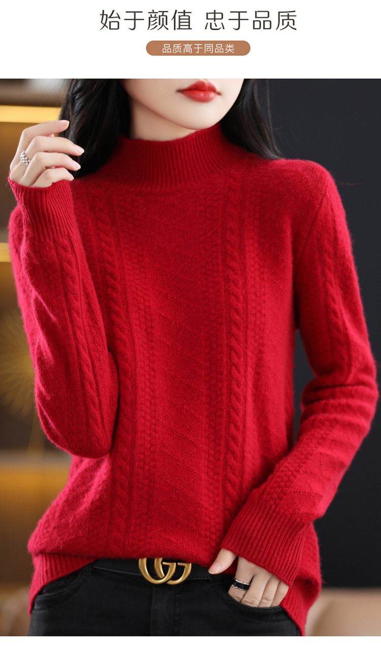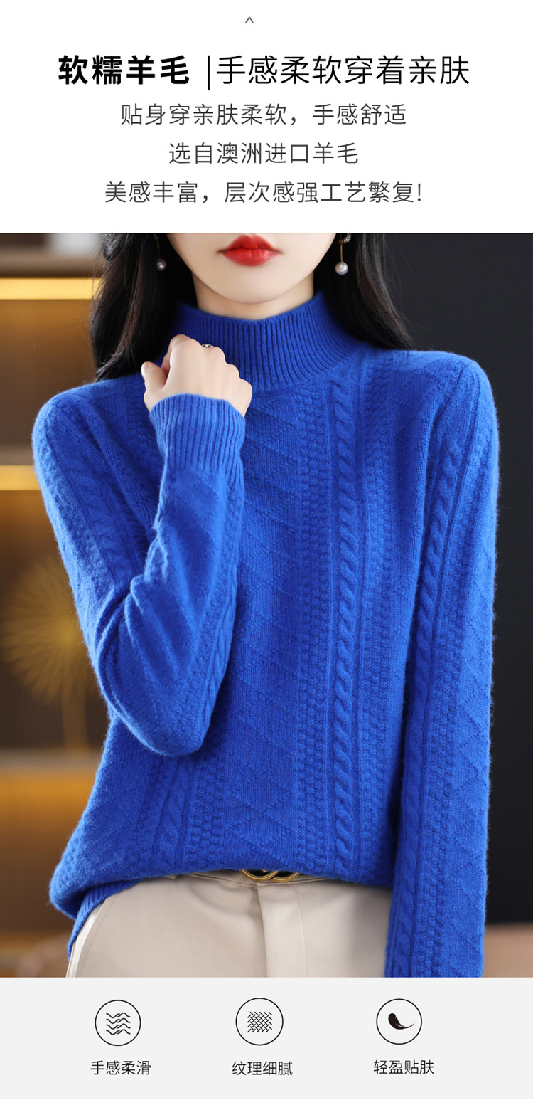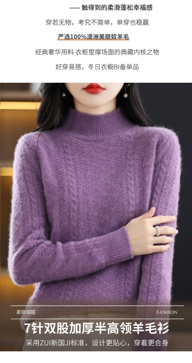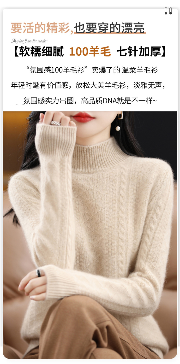 加厚半高领羊毛衫女秋冬新款高档洋气针织衫长袖宽松毛衣提花百搭