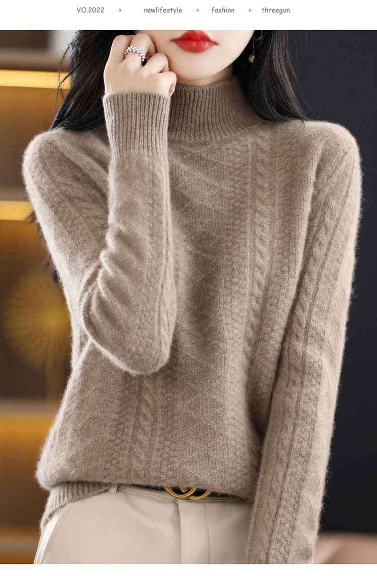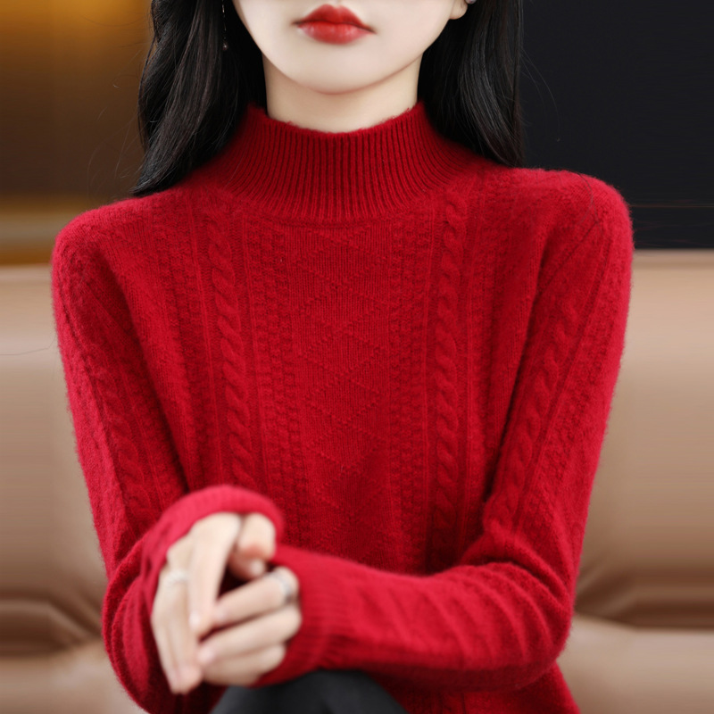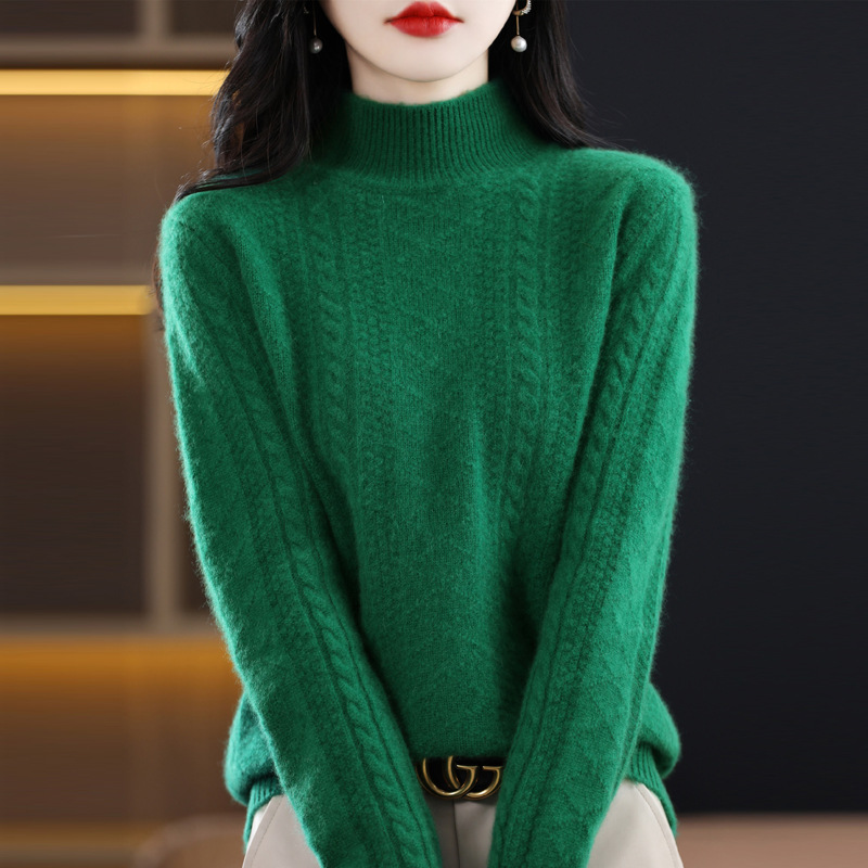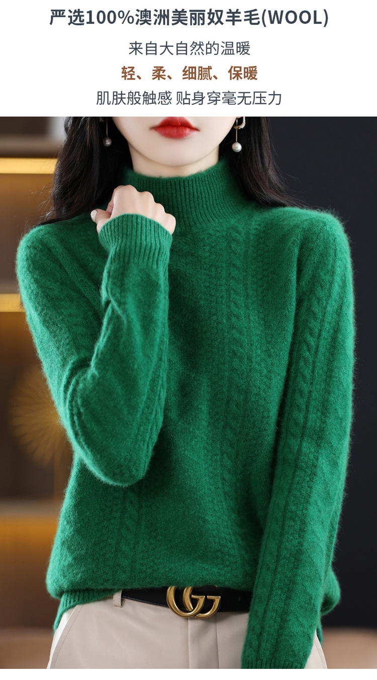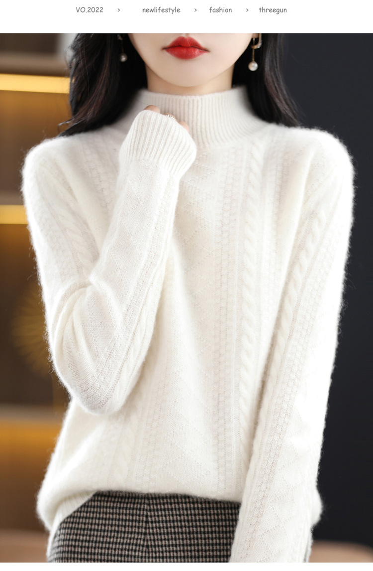加厚半高领羊毛衫女秋冬新款高档洋气针织衫长袖宽松毛衣提花百搭
