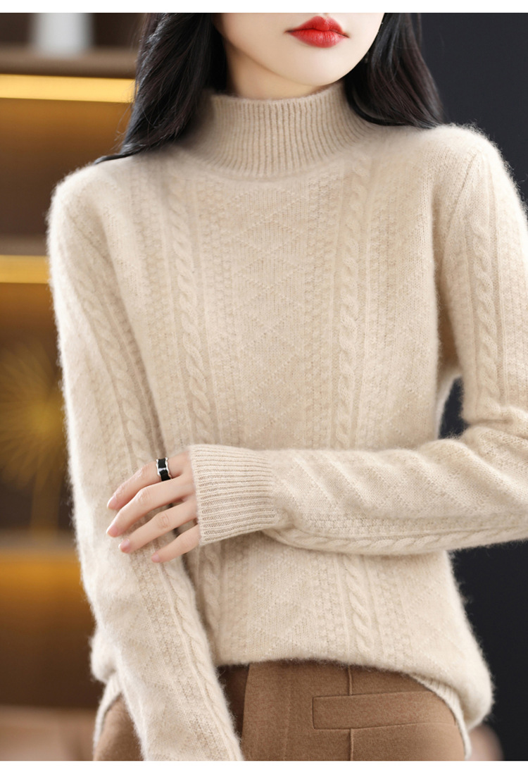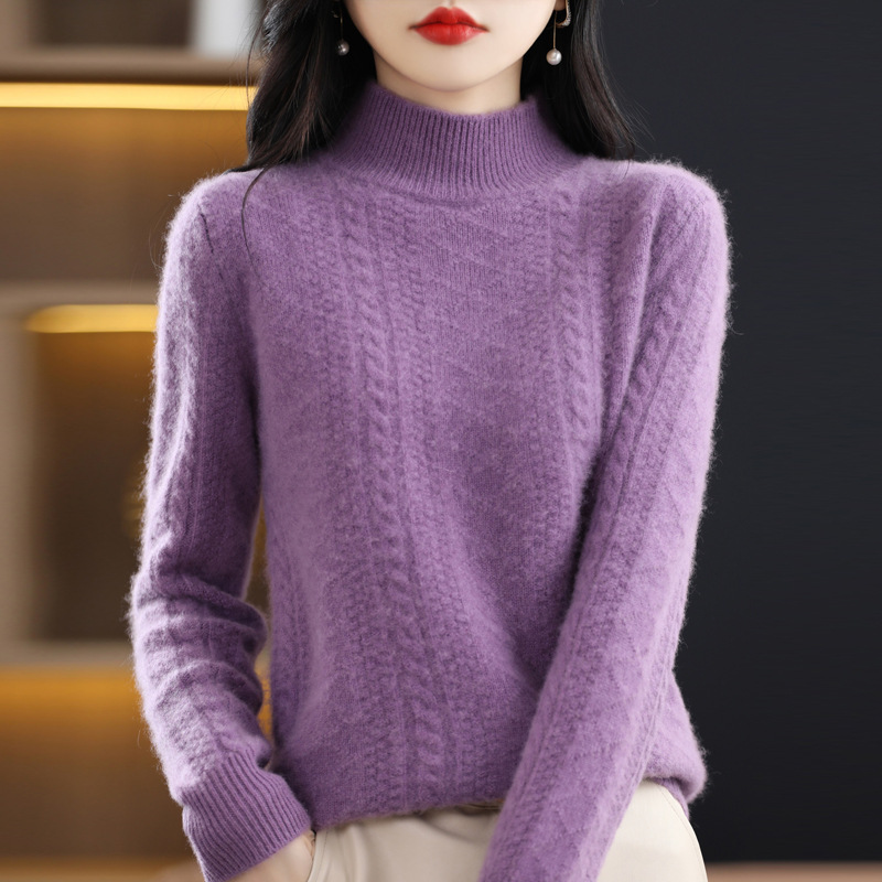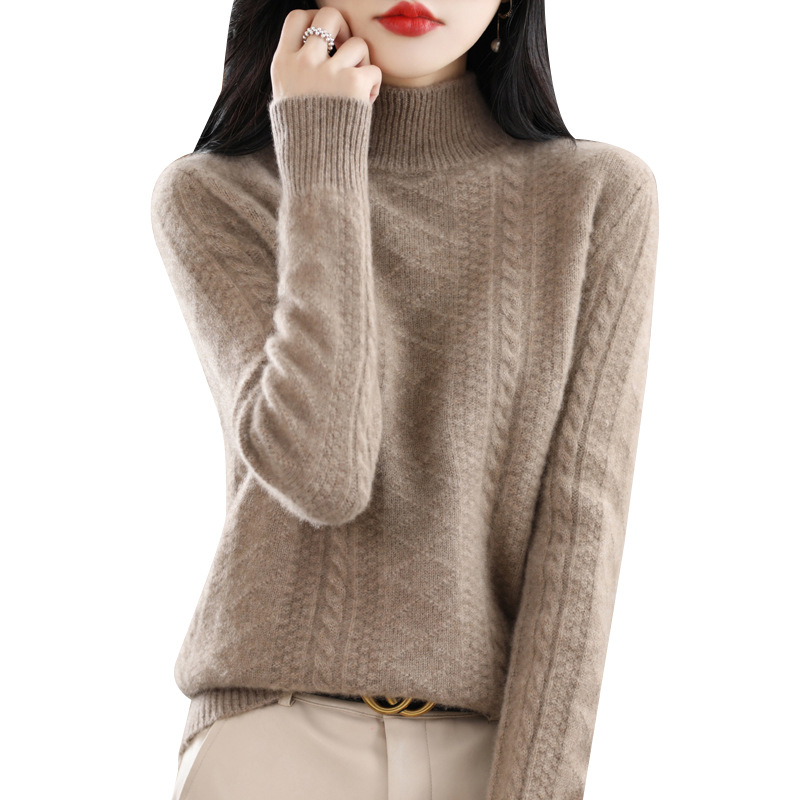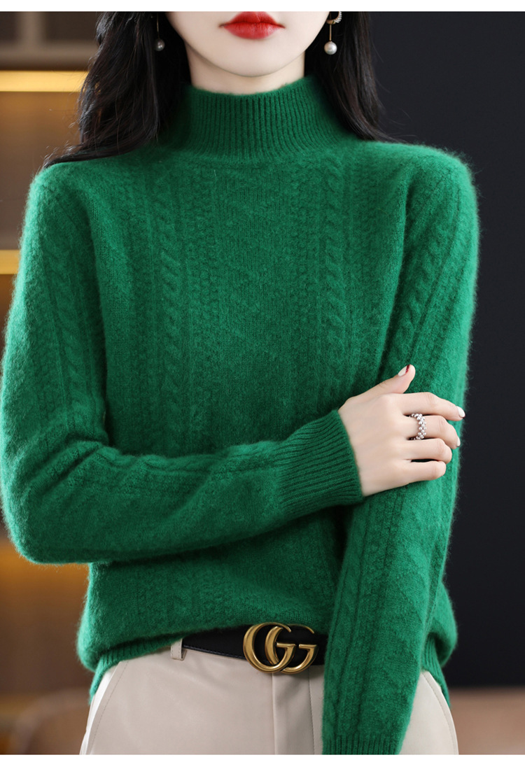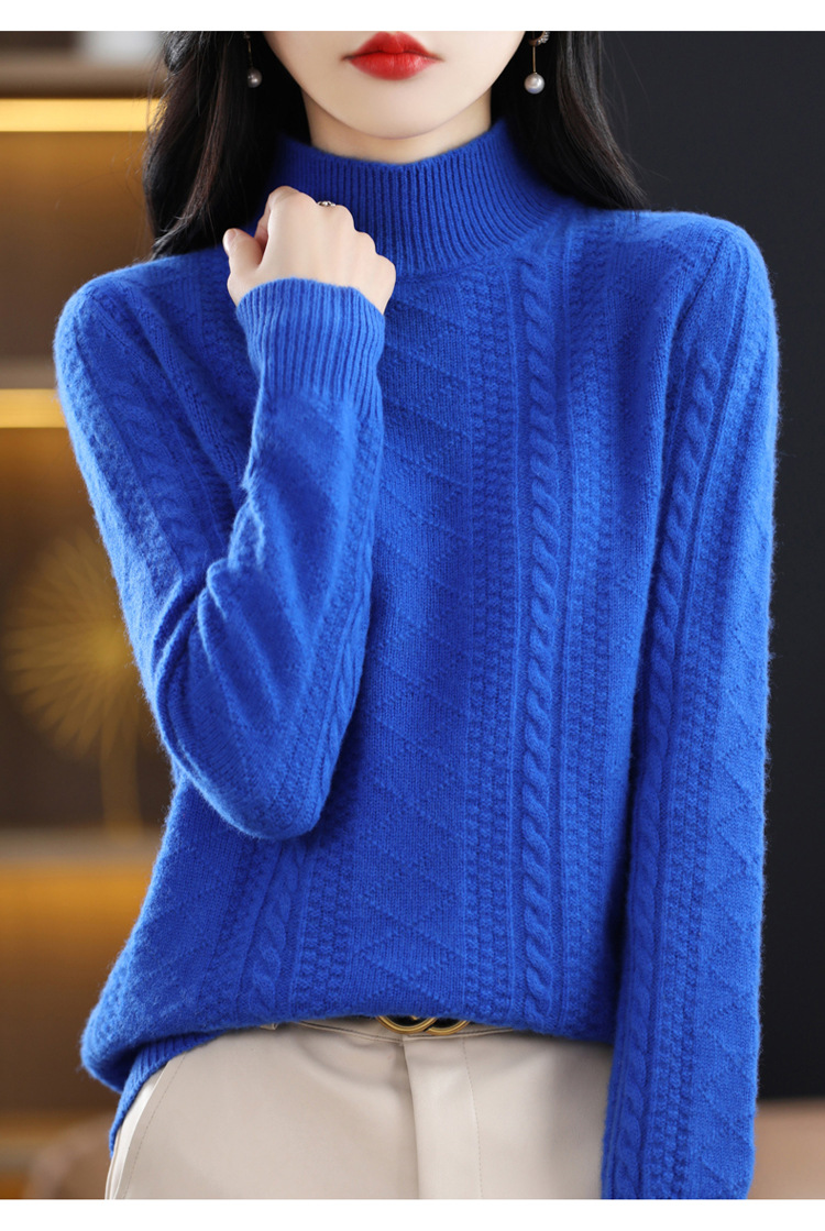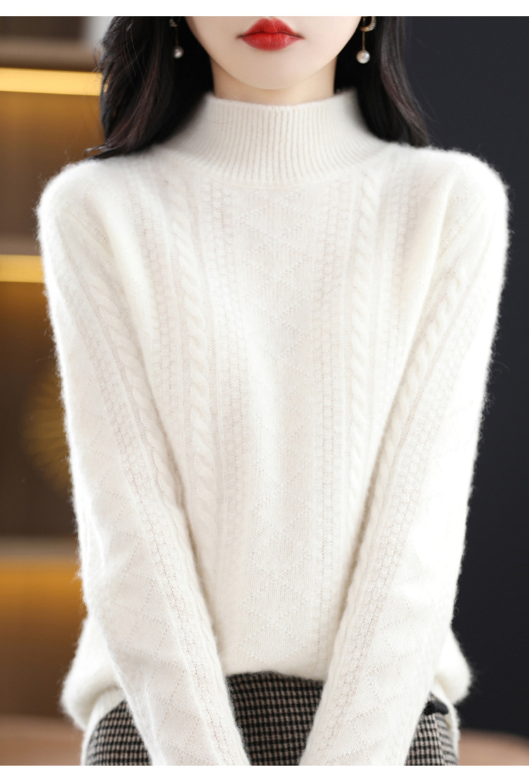 加厚半高领羊毛衫女秋冬新款高档洋气针织衫长袖宽松毛衣提花百搭