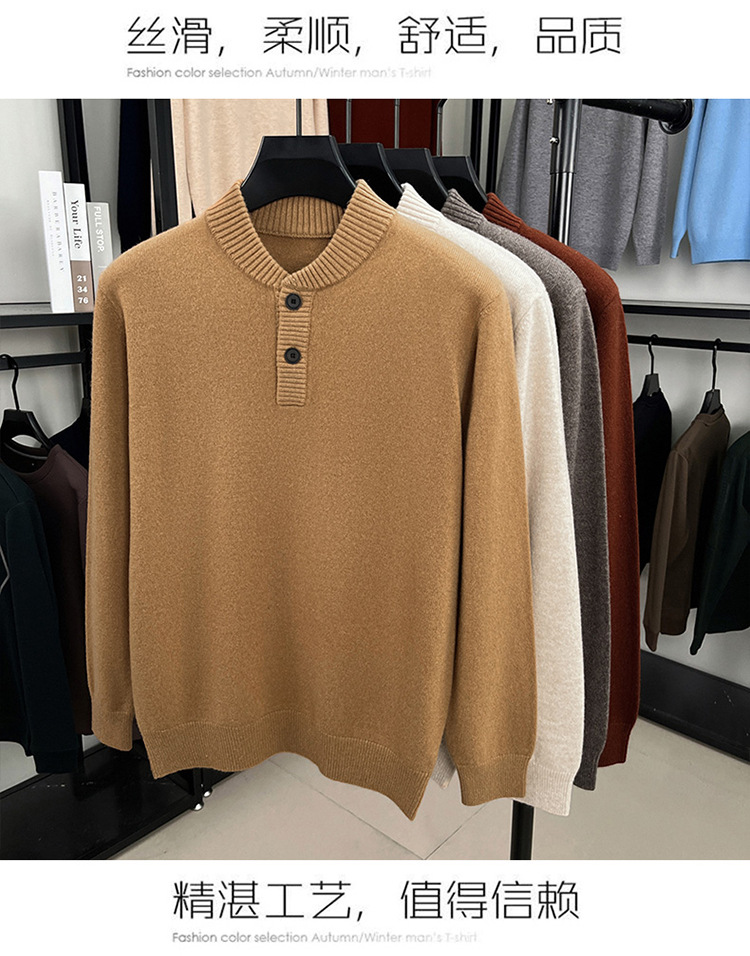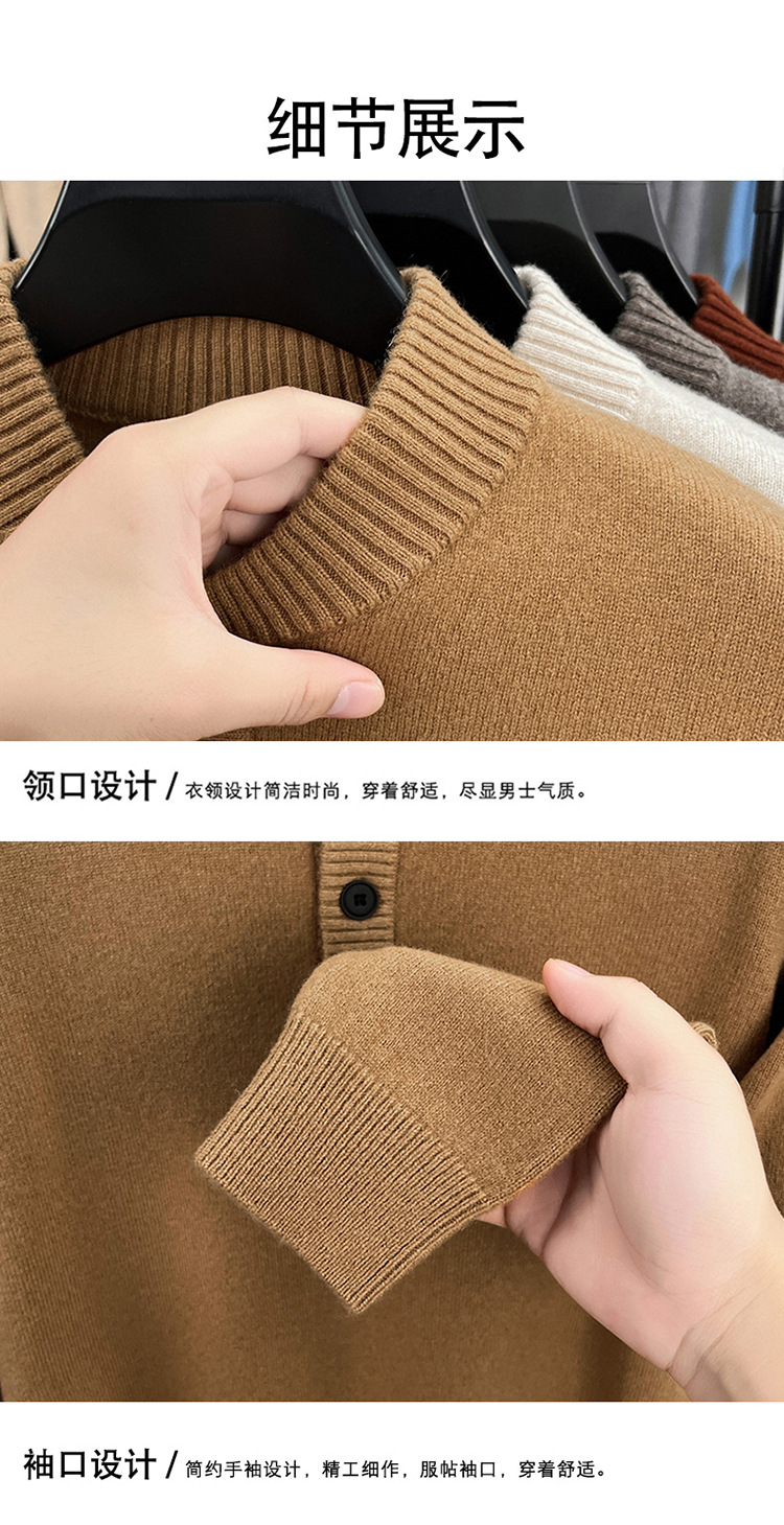 羊毛衫男100纯羊毛450g加厚休闲圆领宽松保暖针织内搭亲肤毛衣男