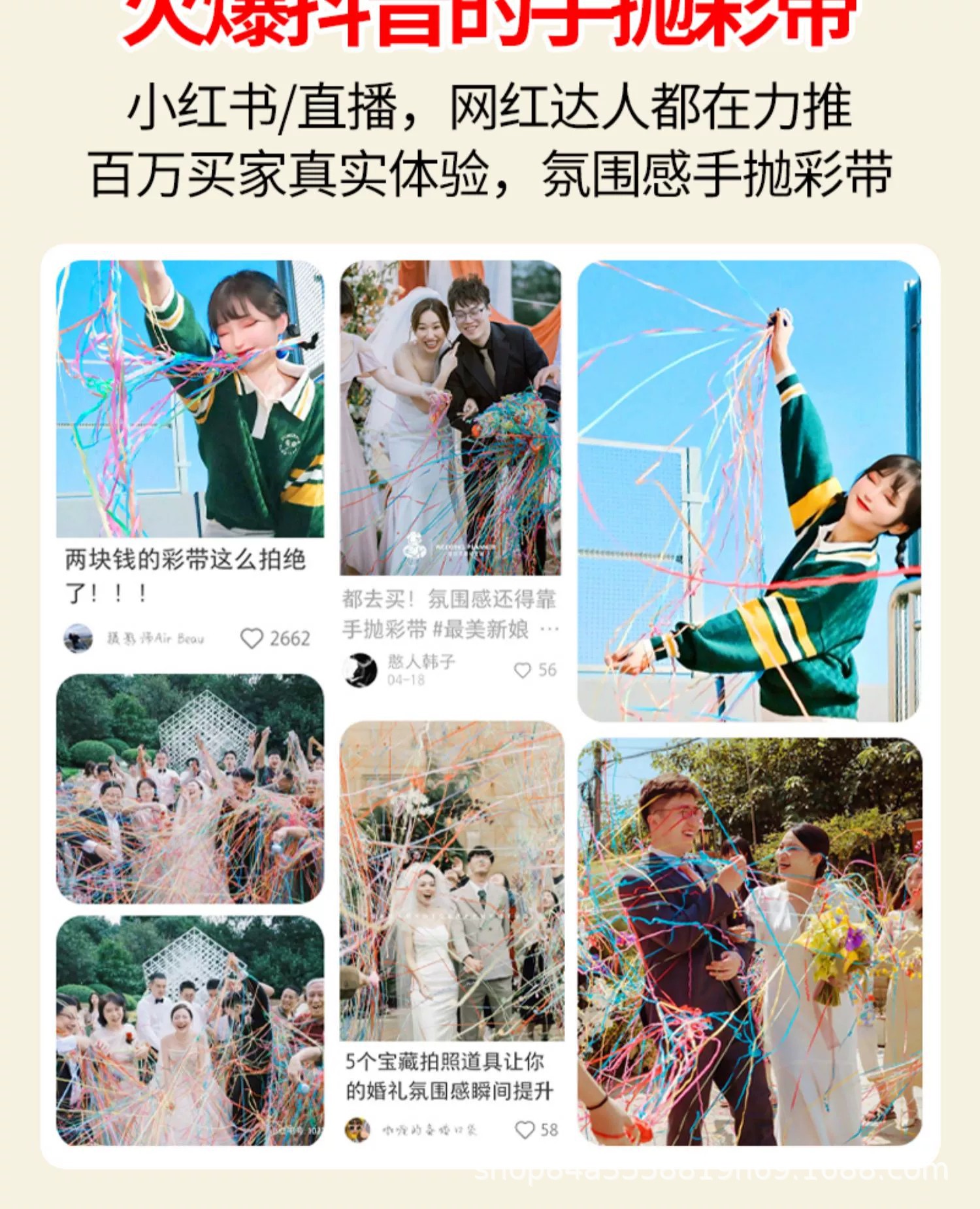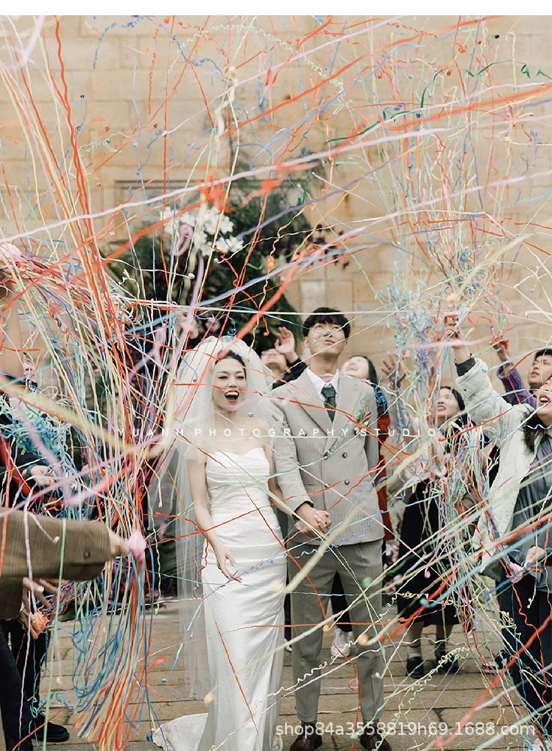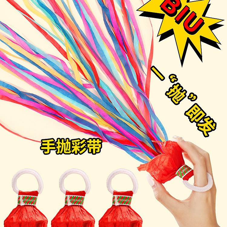 拉花彩带丝带礼炮手抛礼花彩带气氛道具生日手持结婚礼花丝花喷筒