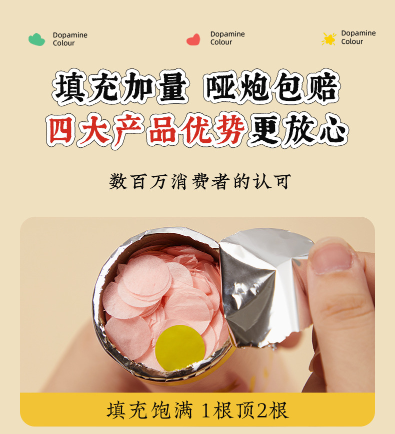 生日派对小礼炮网红礼花筒结婚礼花彩带手拧式手持喷花筒道具创意