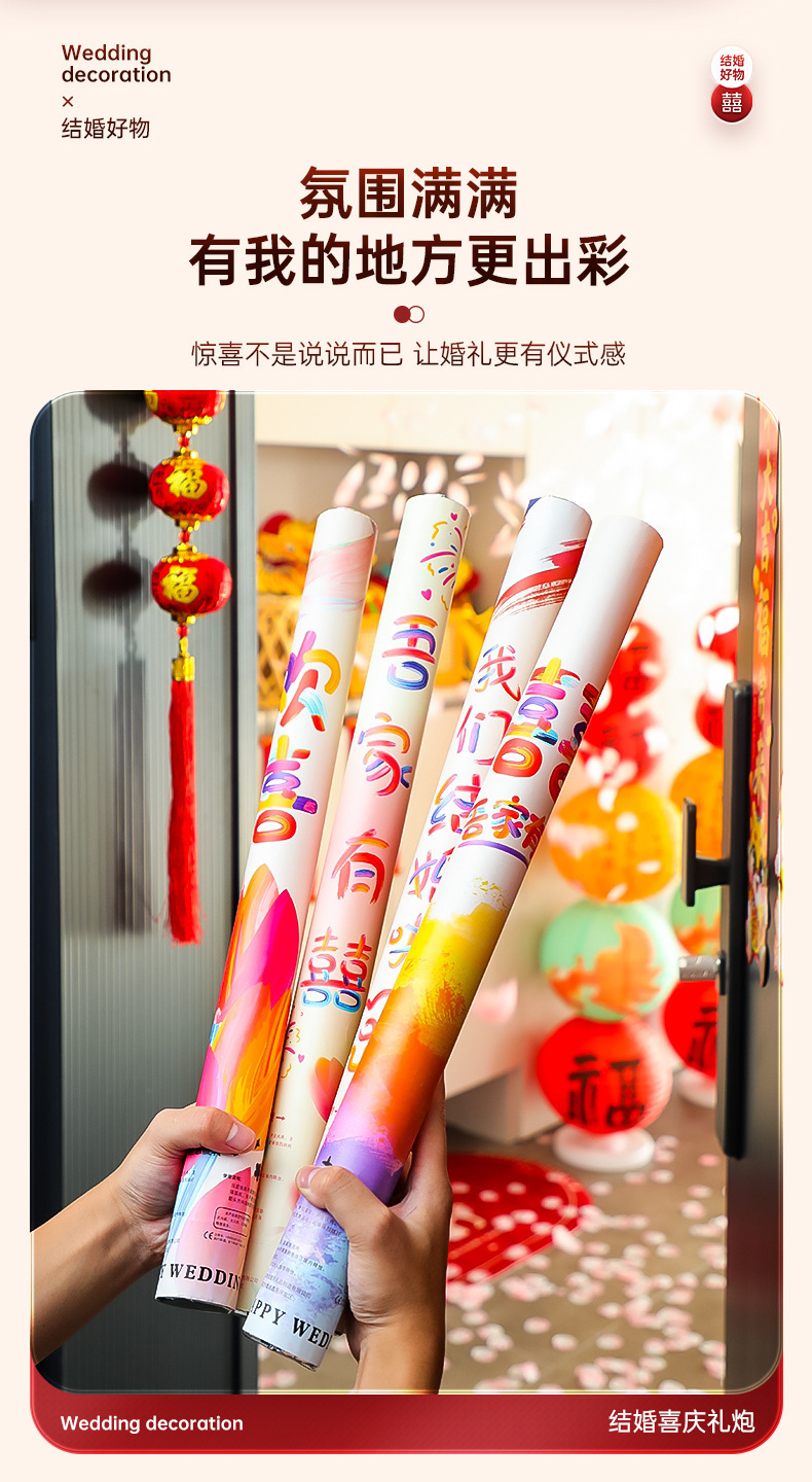 结婚礼炮礼花筒手拧式婚礼彩带喷花筒手持羽毛礼筒炮婚庆用品大全