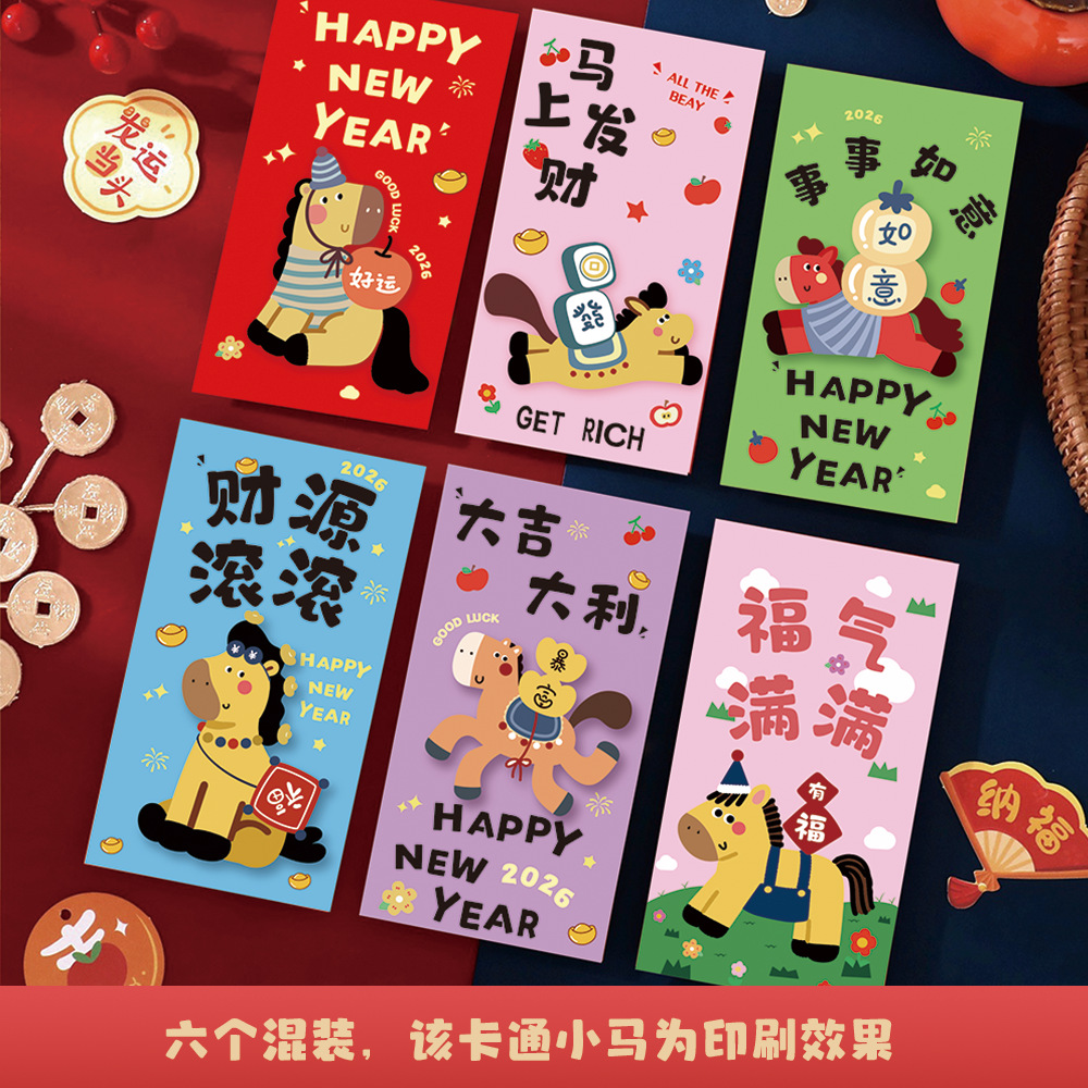 2026新款马年ins风红包生日儿童压岁通用利是封创意卡通爆款现货