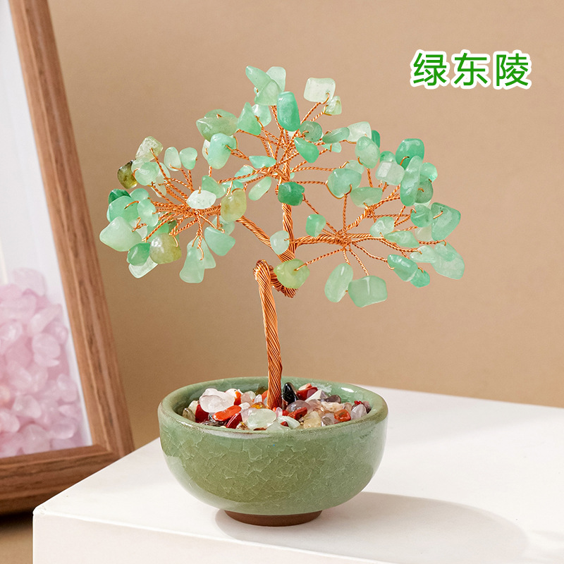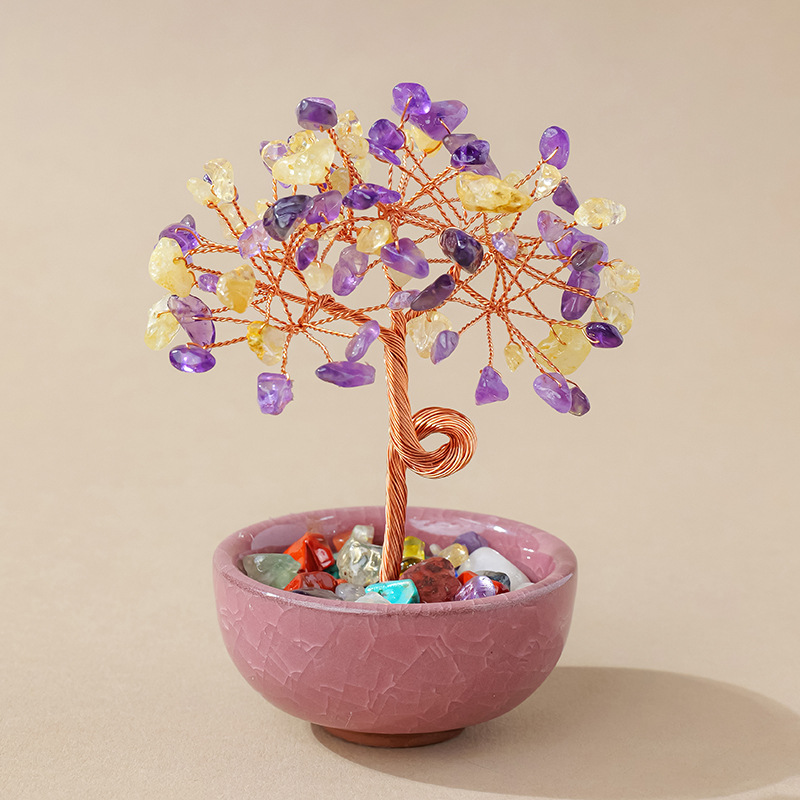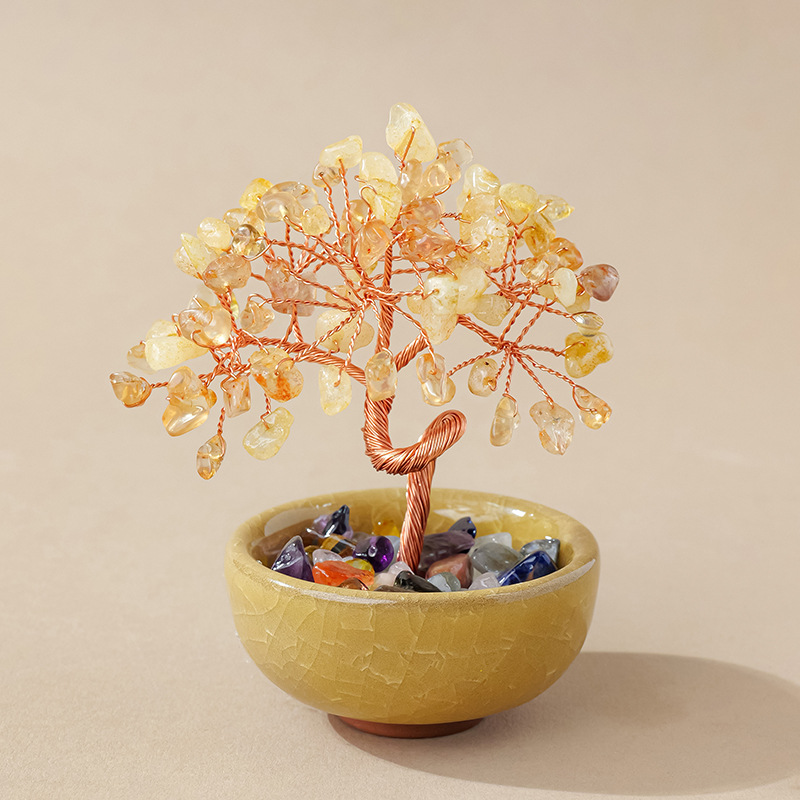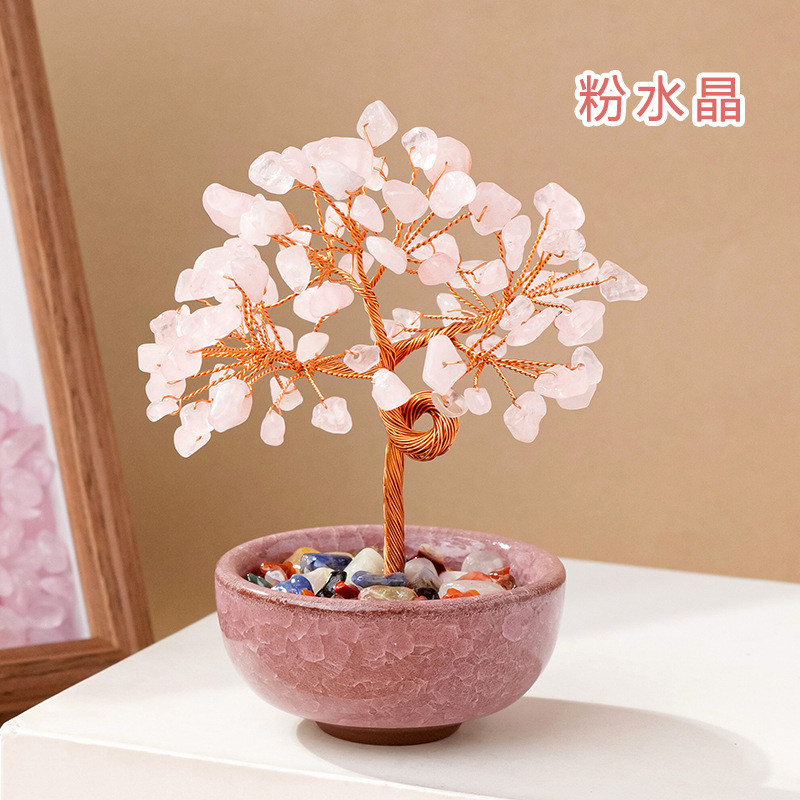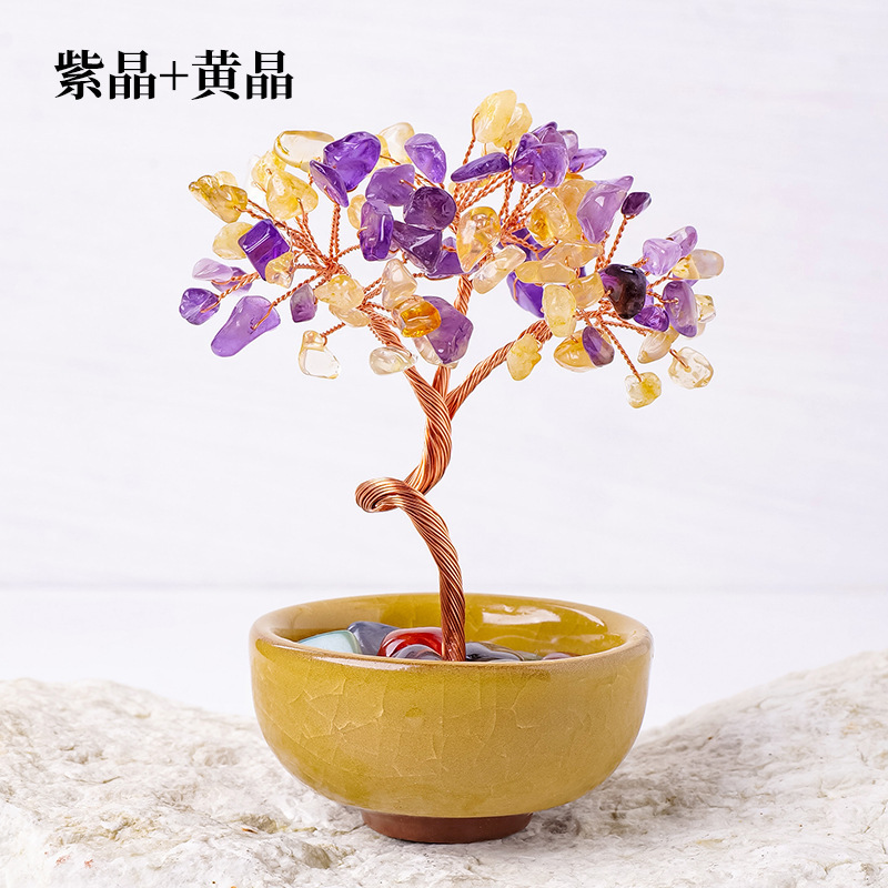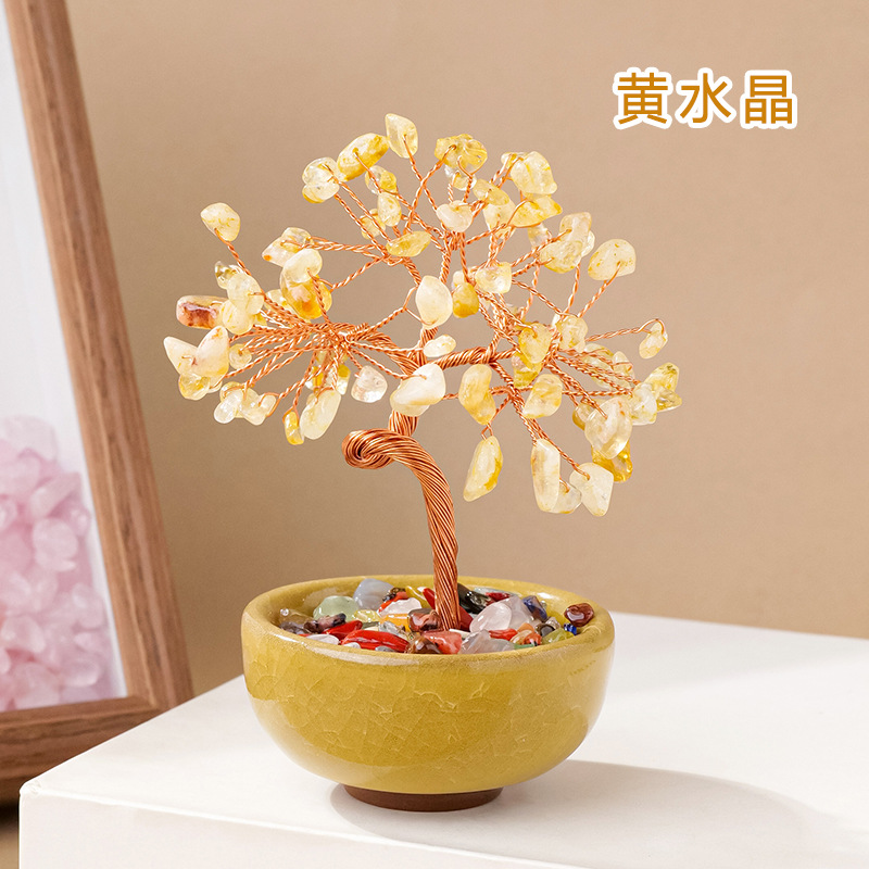 聚宝盆水晶发财树茶盏底座水晶树摆件水晶生命树创意水晶摆件
