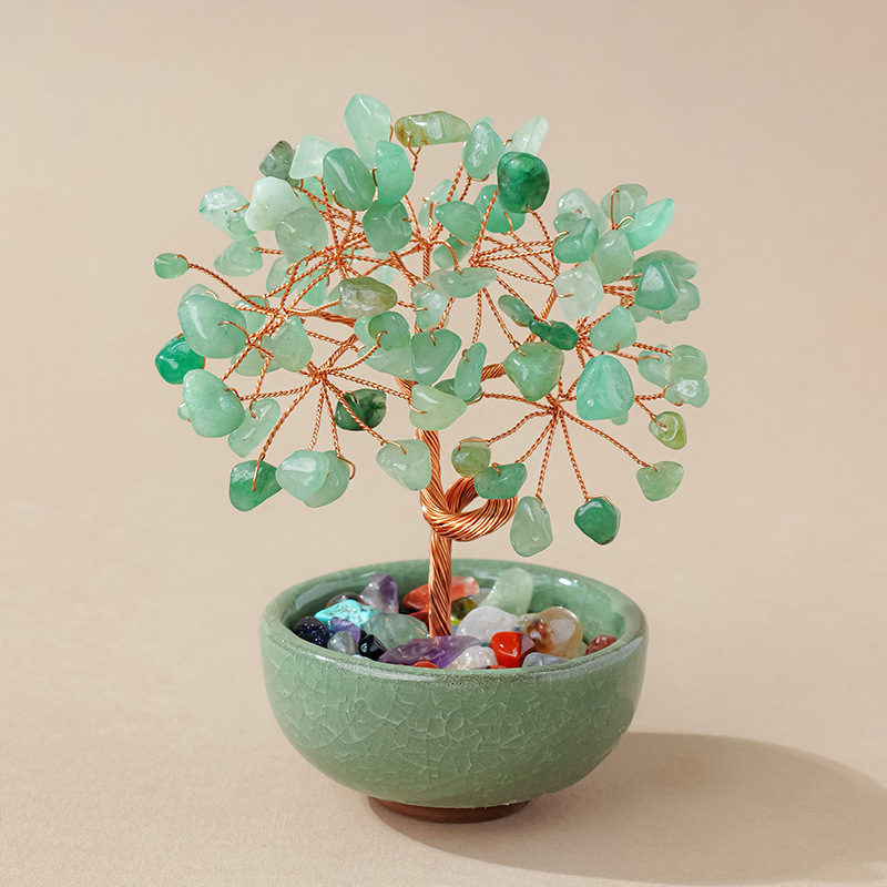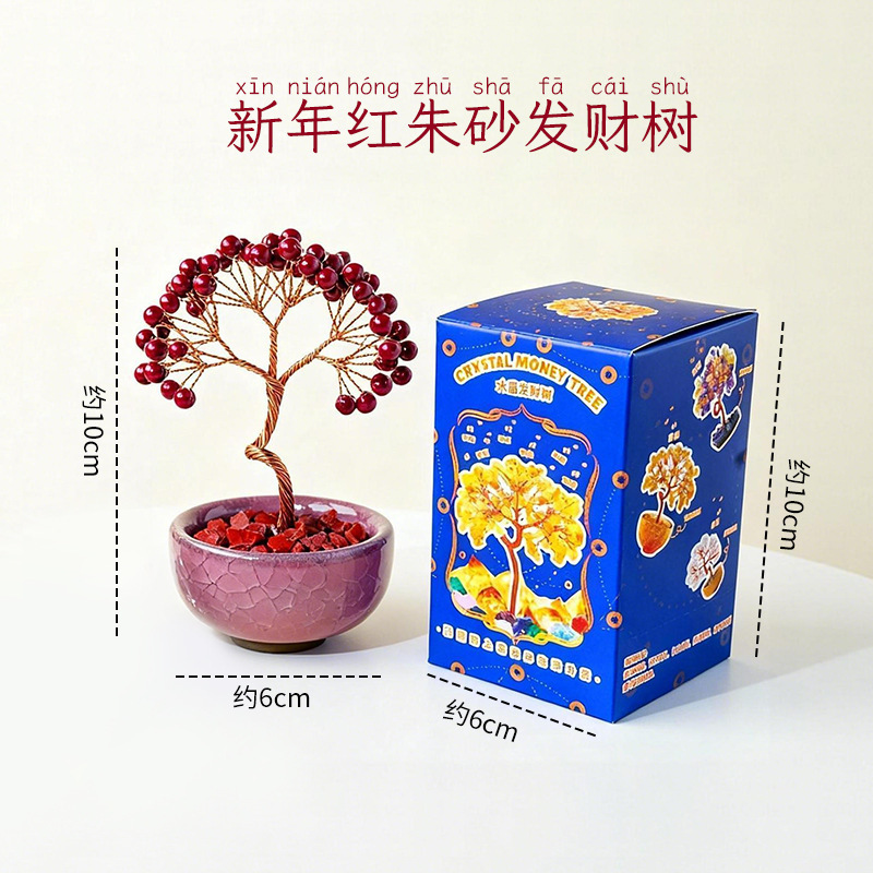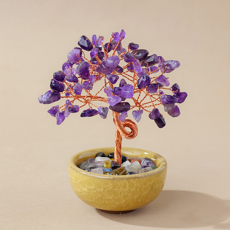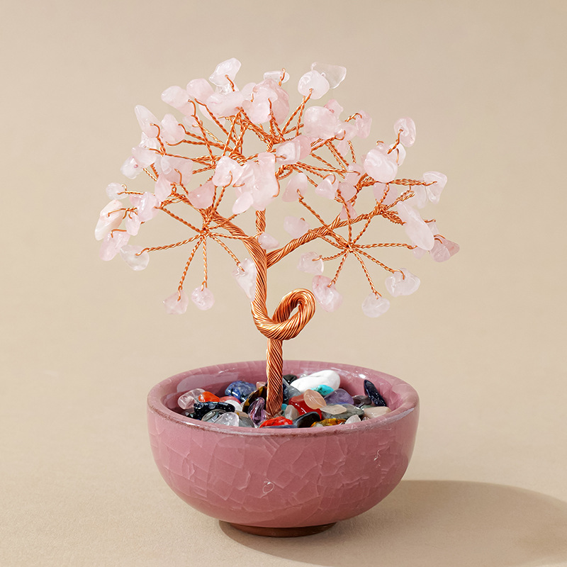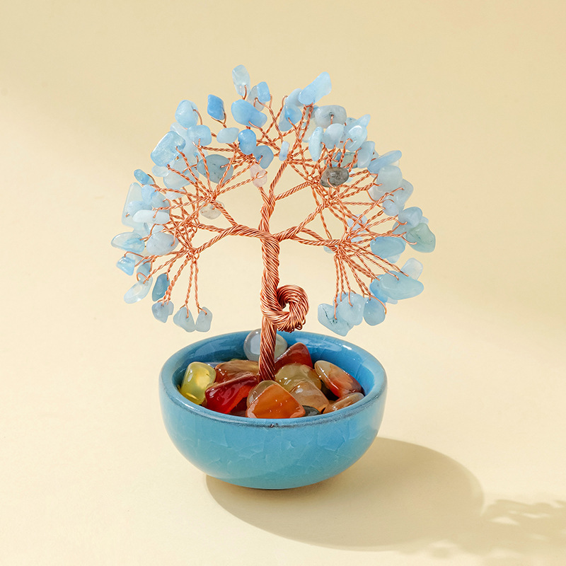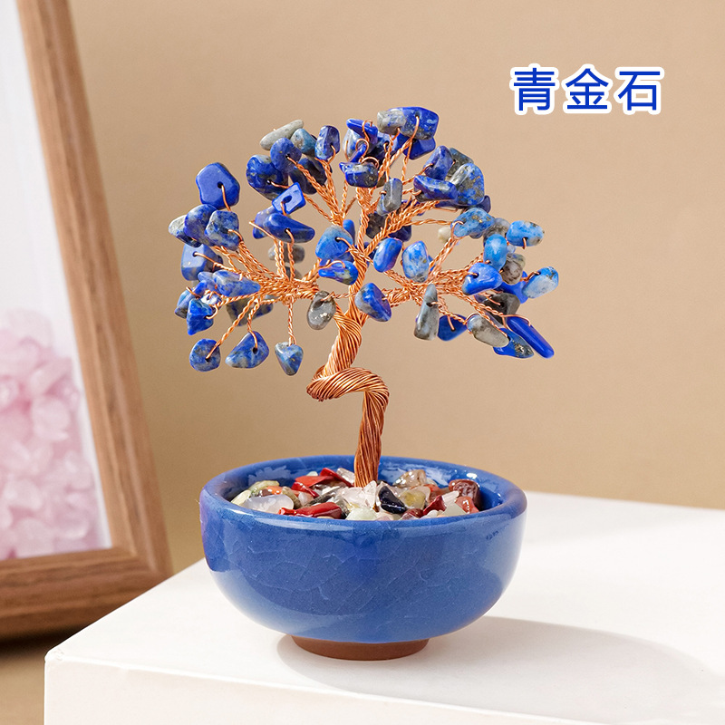 聚宝盆水晶发财树茶盏底座水晶树摆件水晶生命树创意水晶摆件