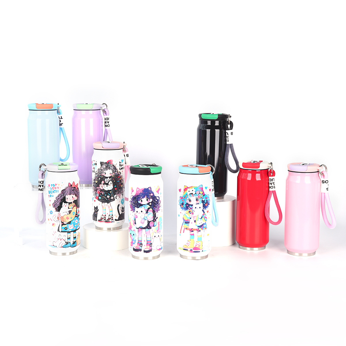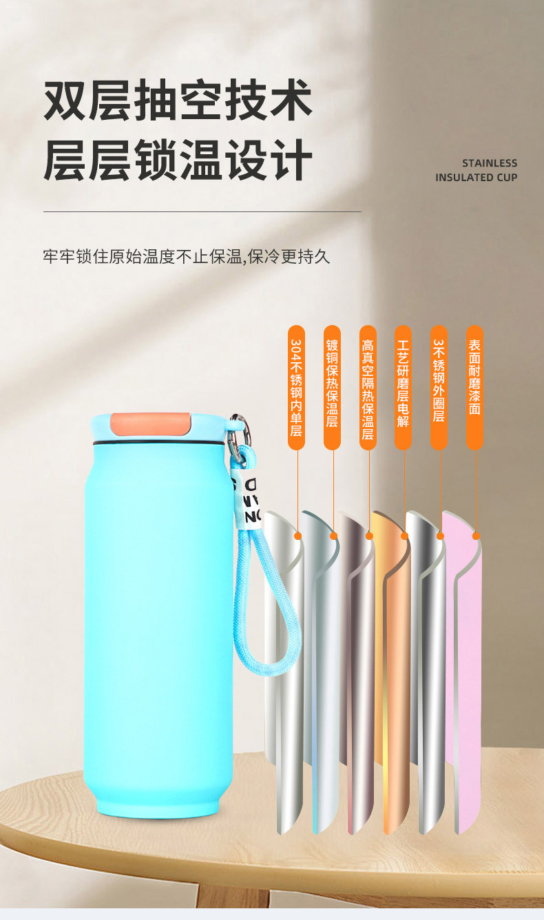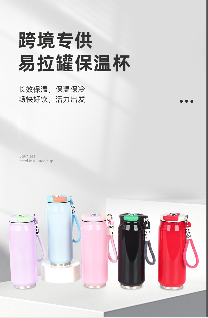跨境304不锈钢保温杯易拉罐马卡龙大容量汽车杯橡胶漆可乐罐定制