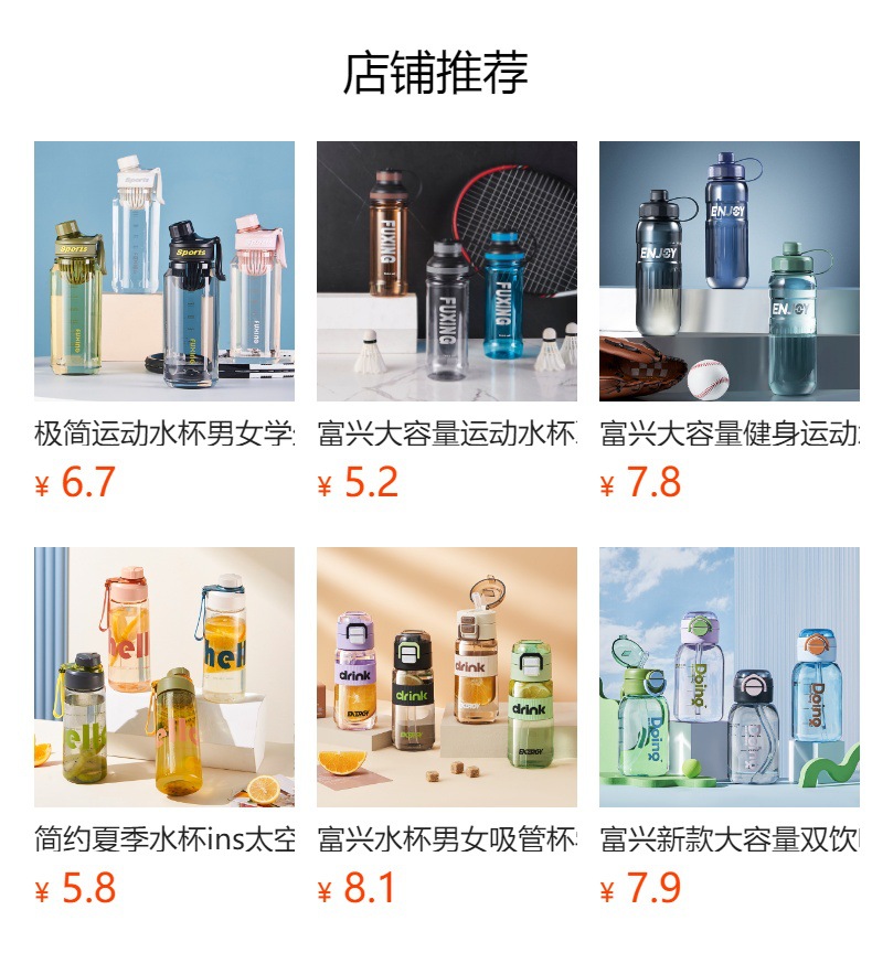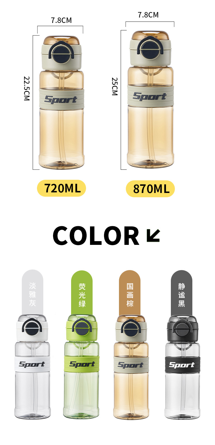 富兴学生水壶男女塑料杯防摔防漏吸管杯弹盖水杯带提手简约太空杯