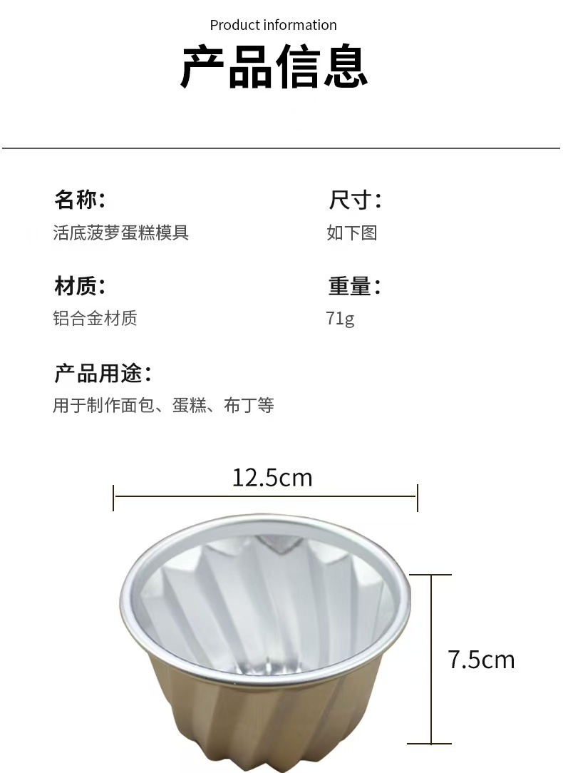 M-E08活底小号菠萝模 阳极烘焙模具 蛋糕面包 布丁果冻 脱模方便