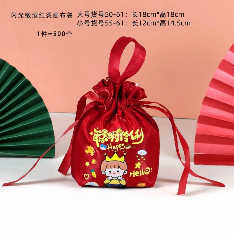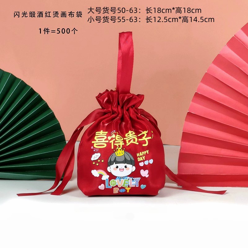 宝宝出生满月喜糖袋百日宴回礼喜糖束口袋周岁宴布艺包装袋子红包