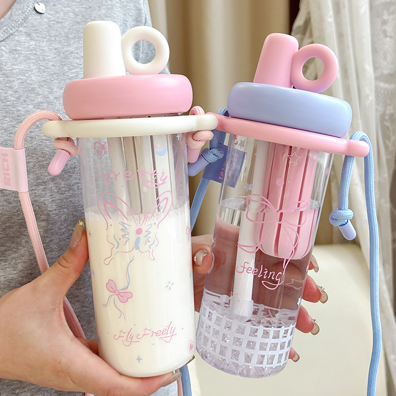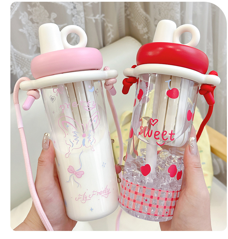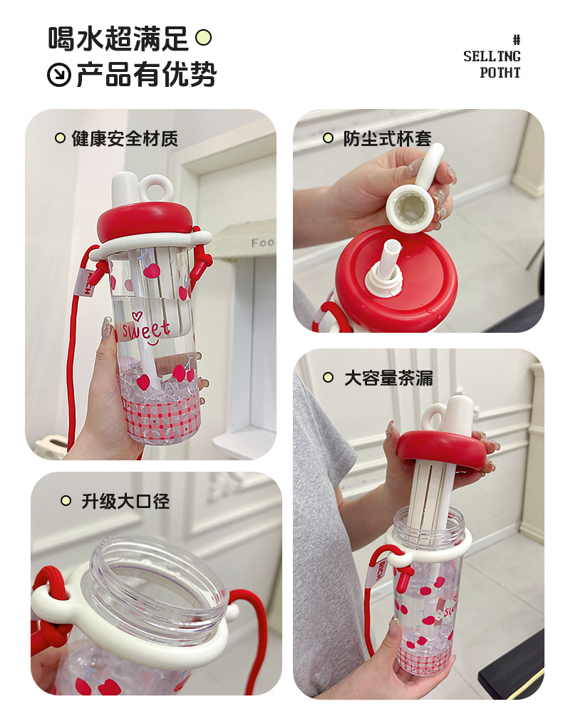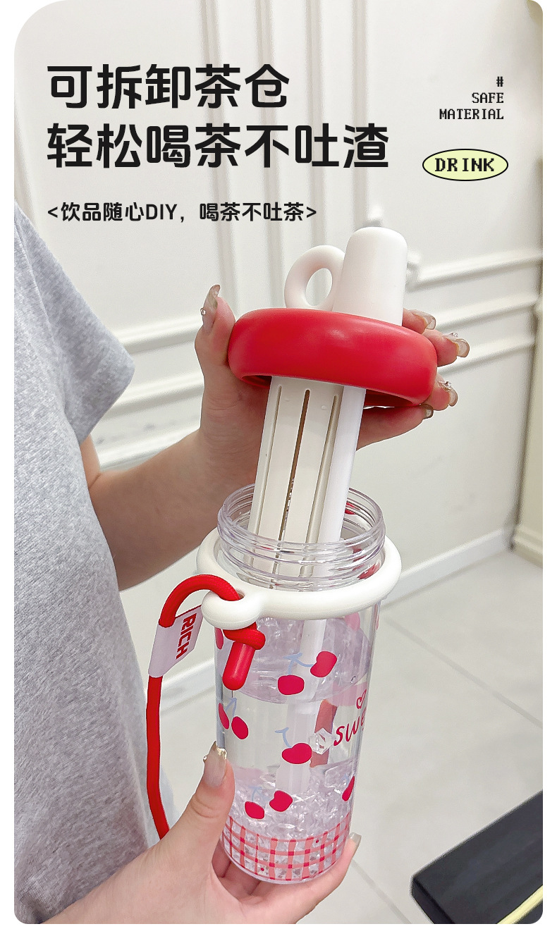 summer large capacity plastic cup fresh tea water separation scented tea cup good-looking girls portable straw cup water cup