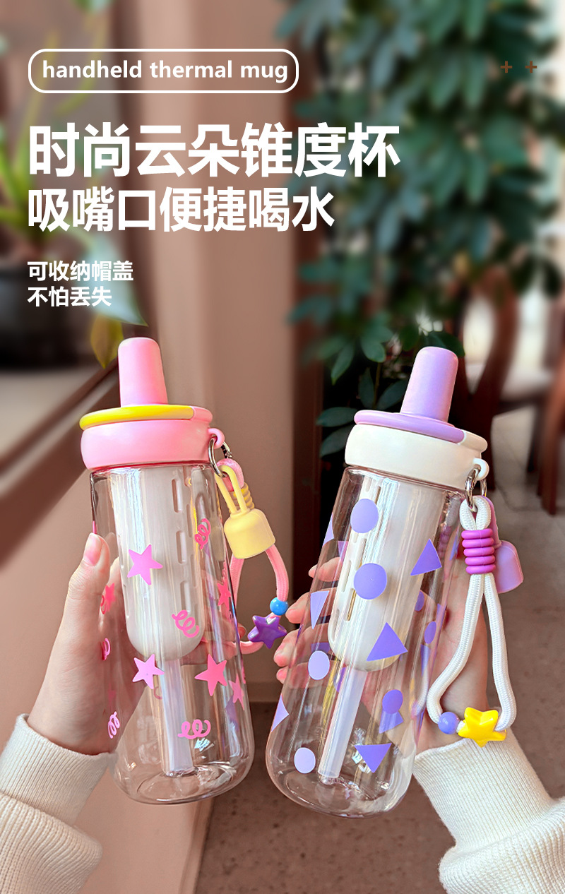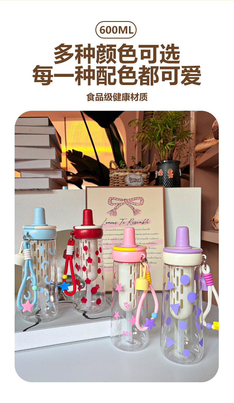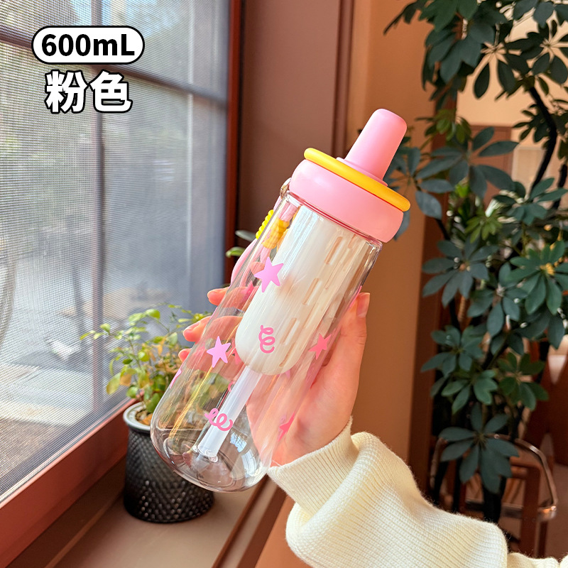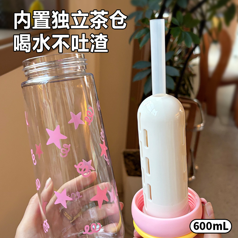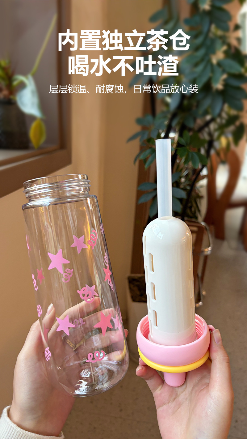新款高颜值塑料杯男女生通用大容量户外便携吸管杯茶水分离水杯子