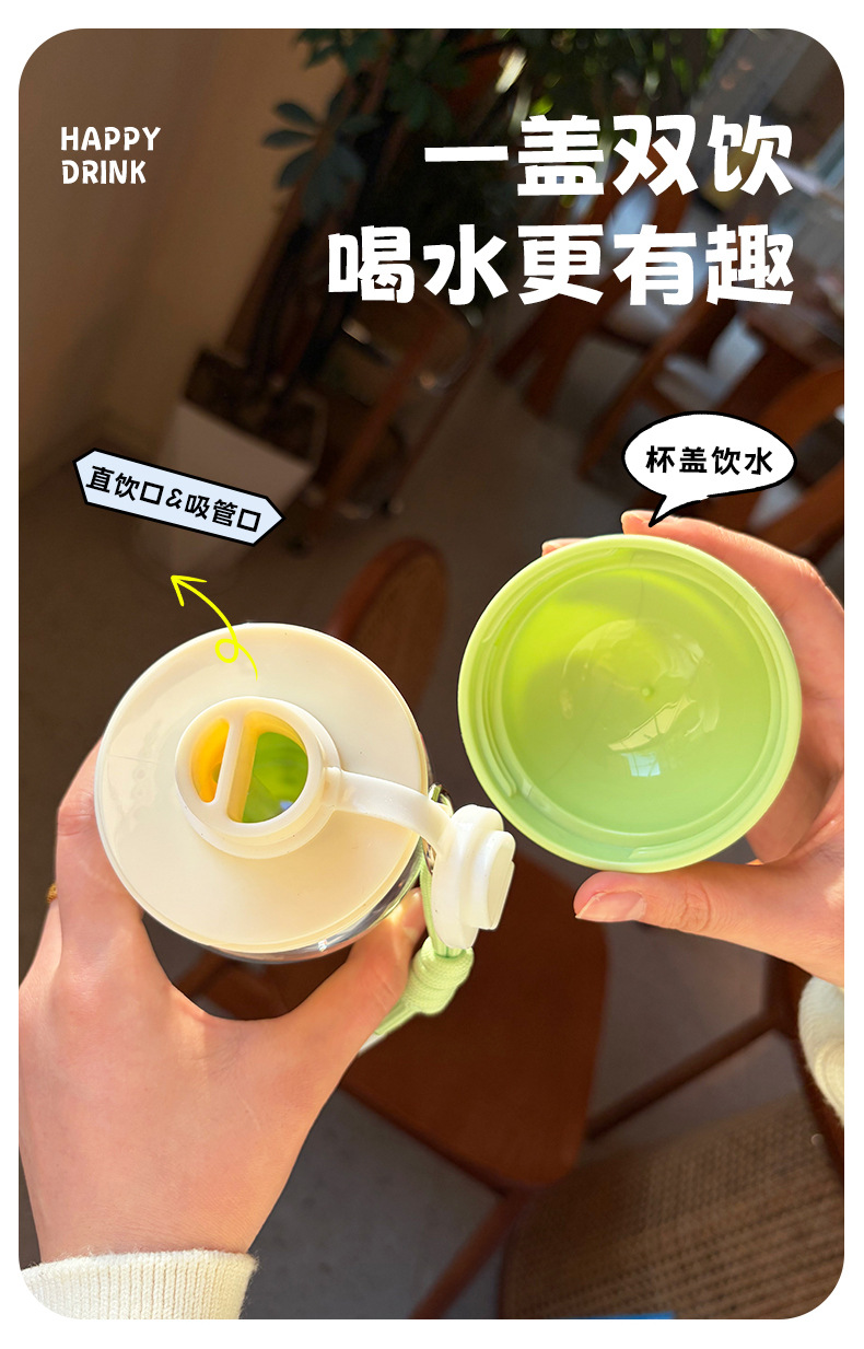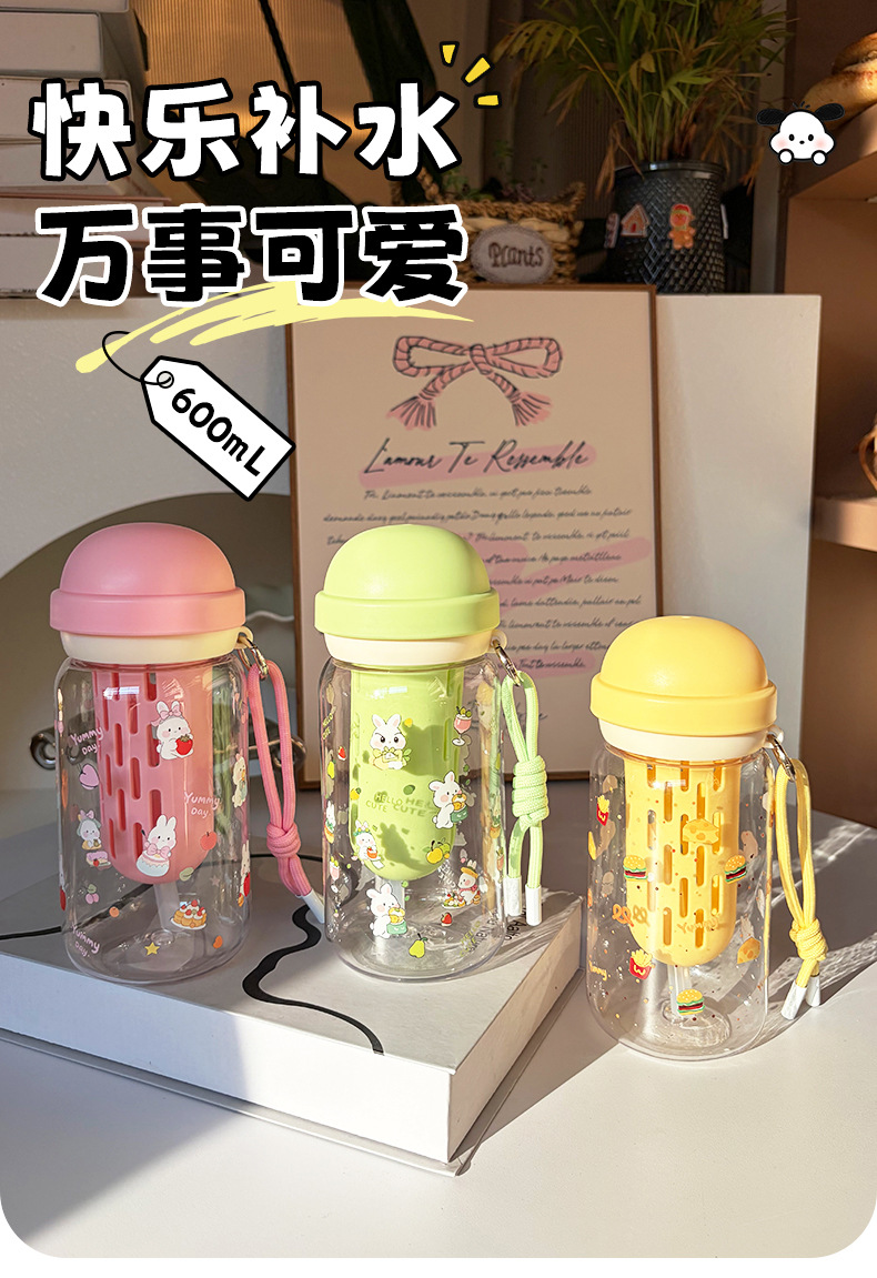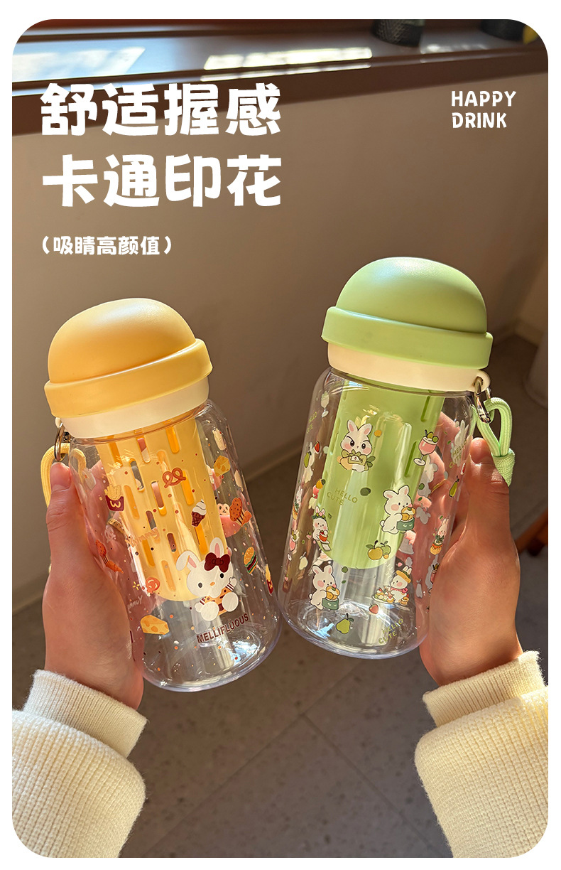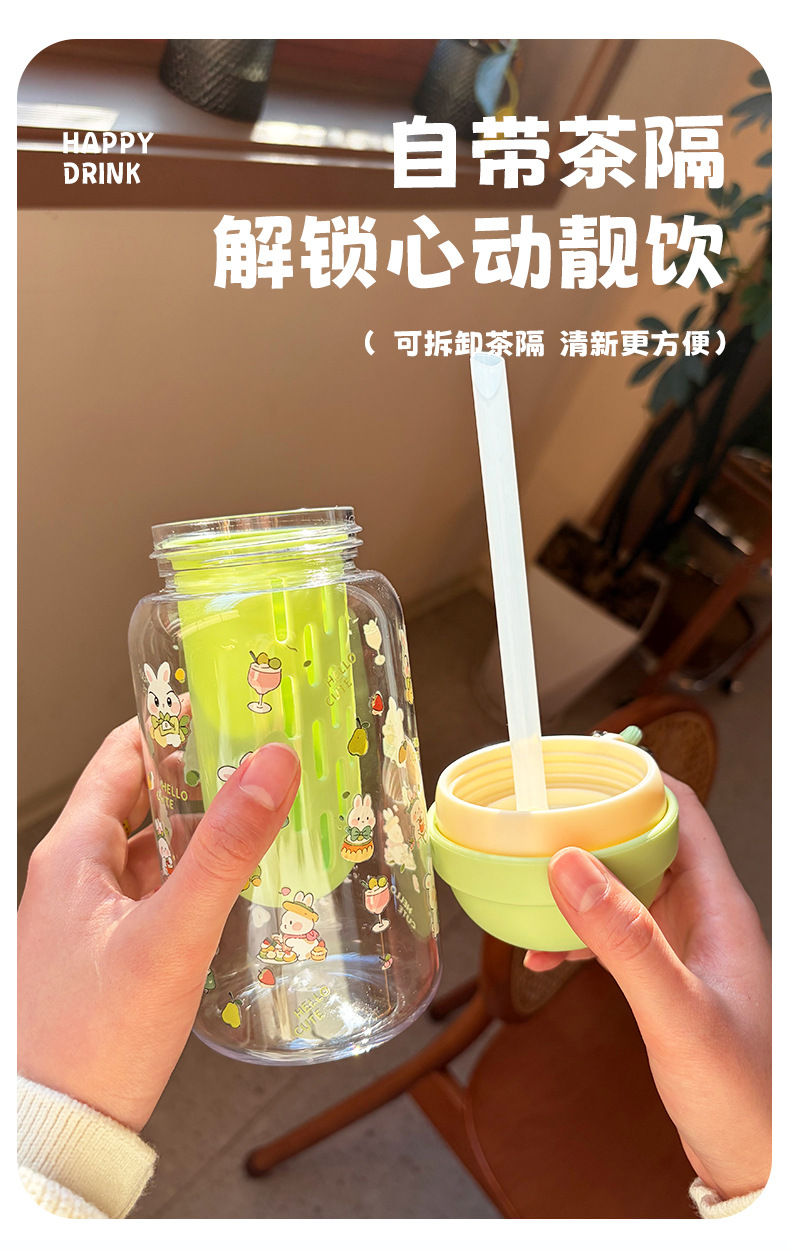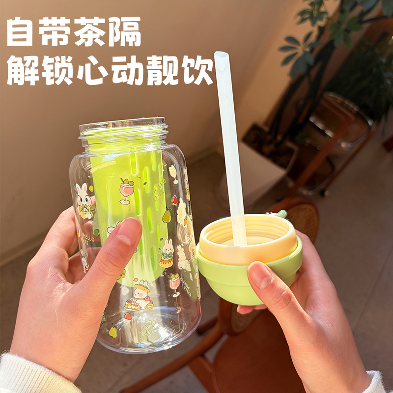 卡通可爱双饮塑料杯男女学生上学专用吸管杯高颜值茶水分离花茶杯