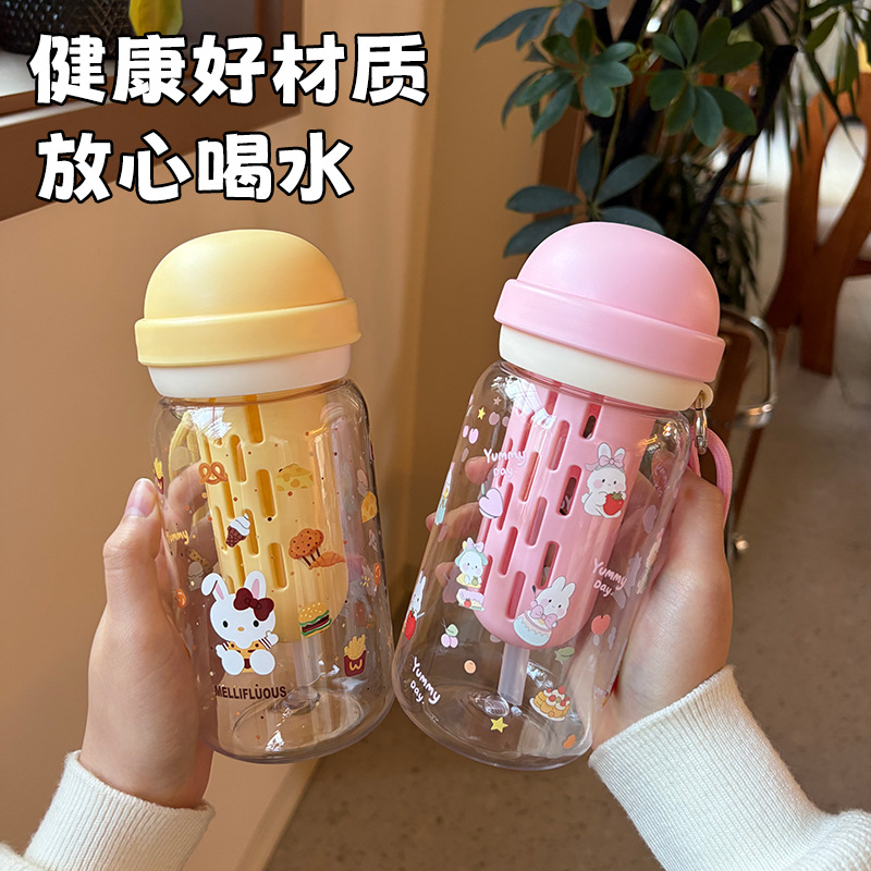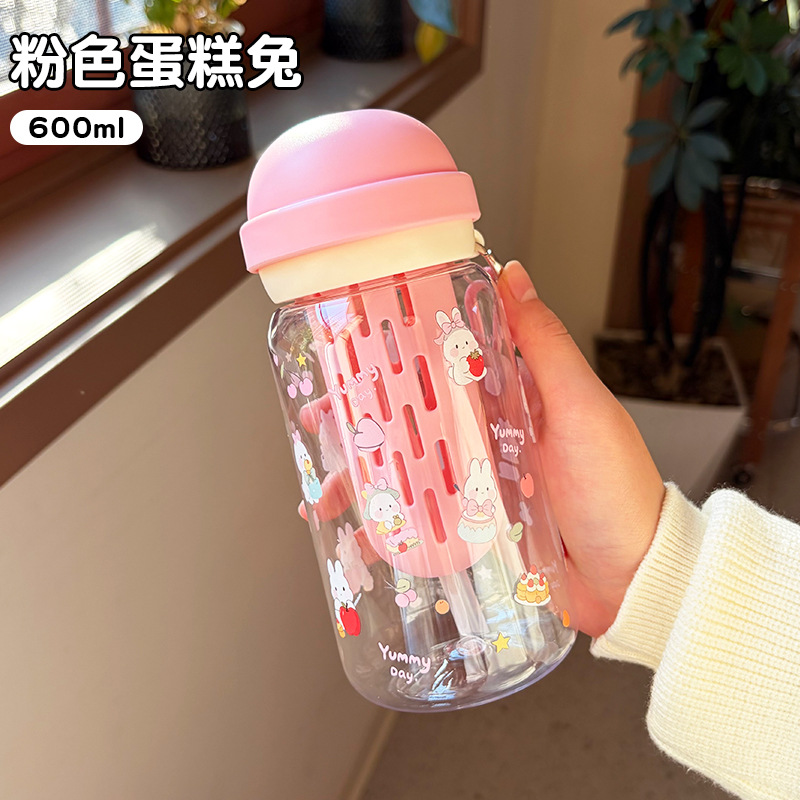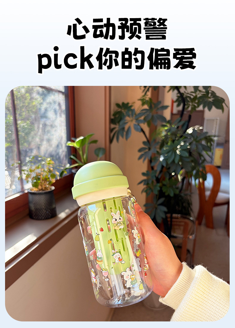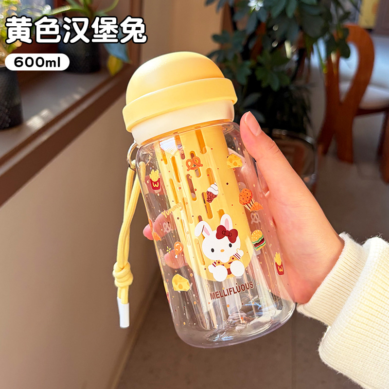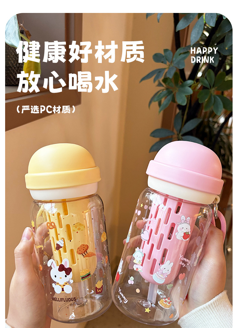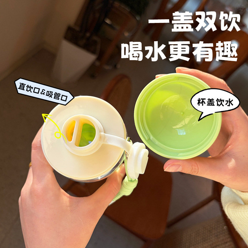 卡通可爱双饮塑料杯男女学生上学专用吸管杯高颜值茶水分离花茶杯