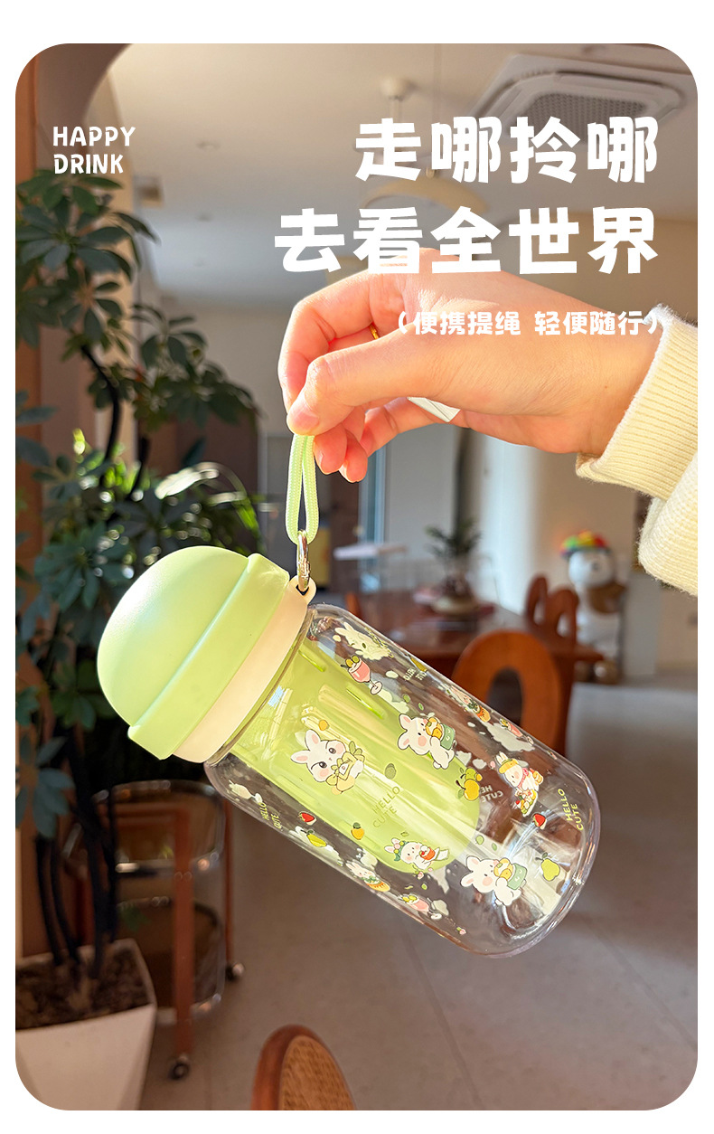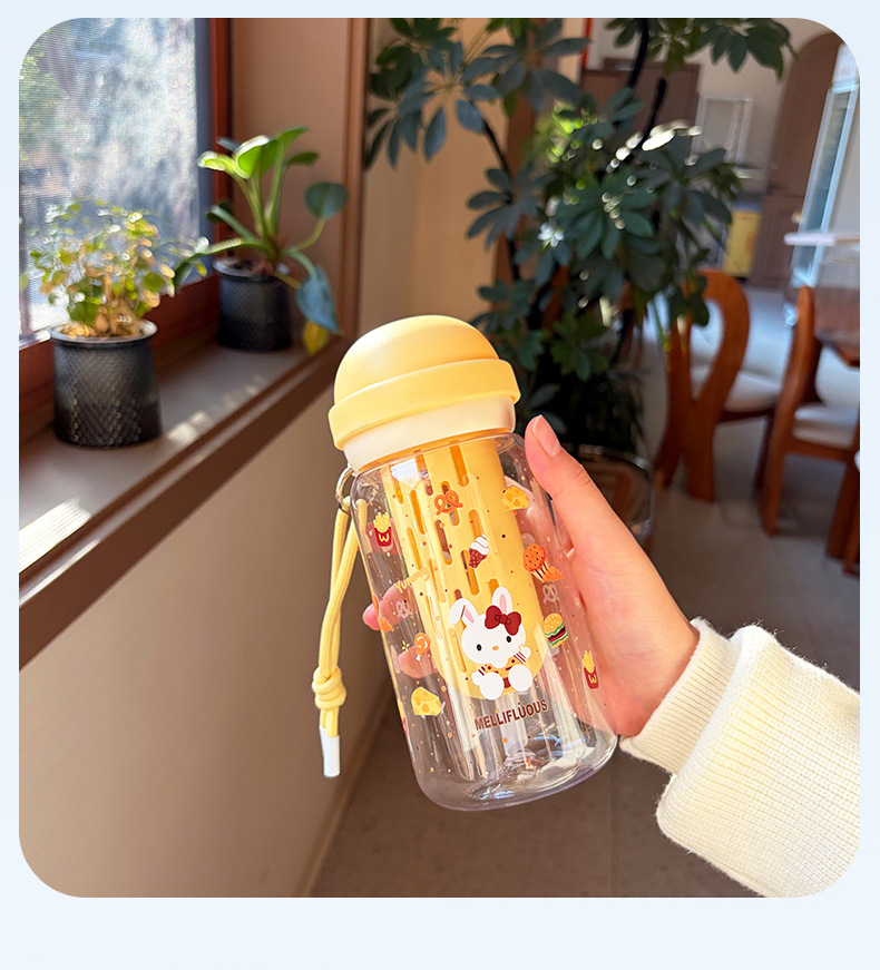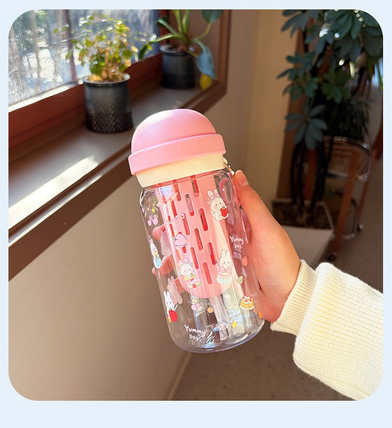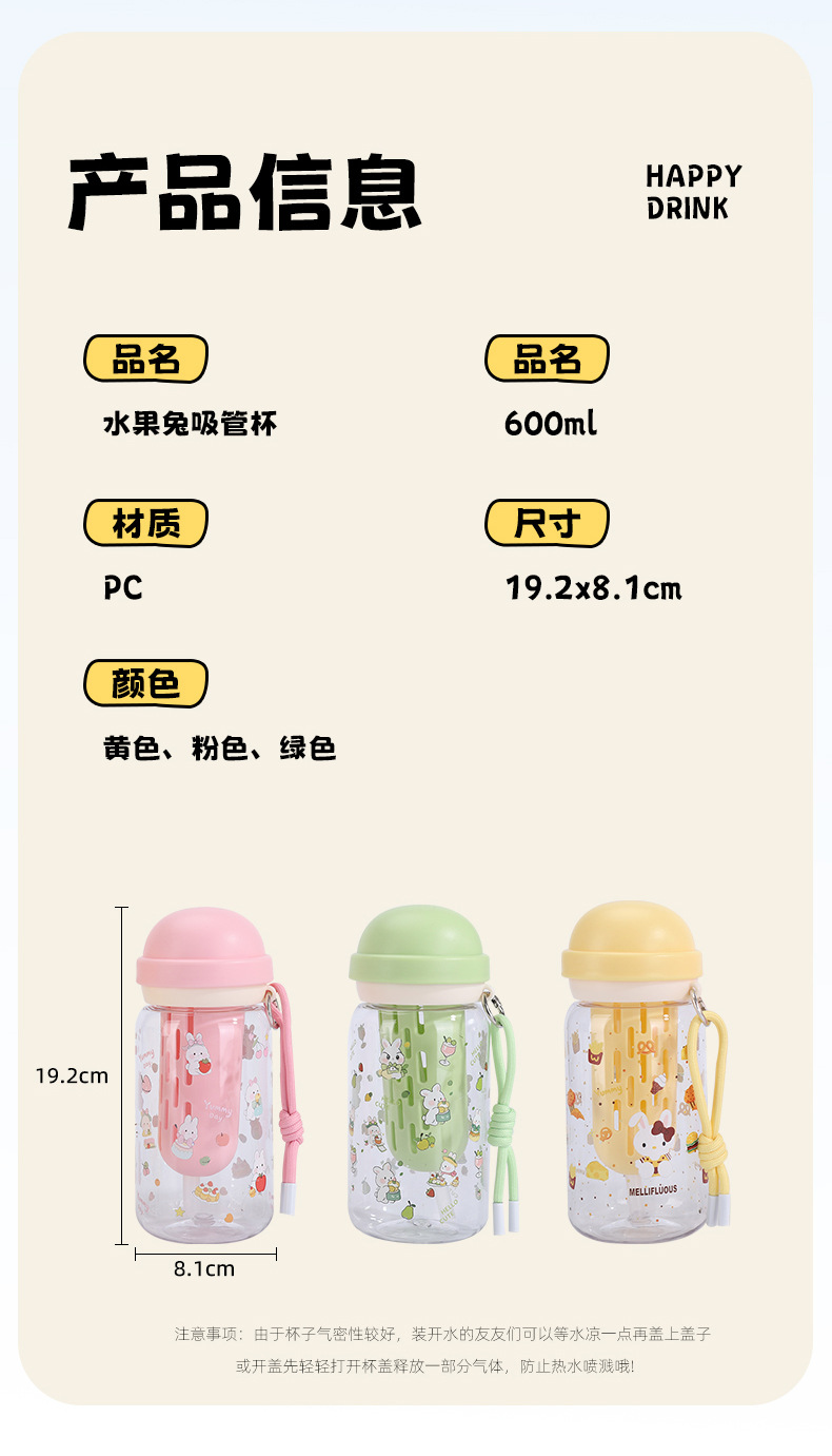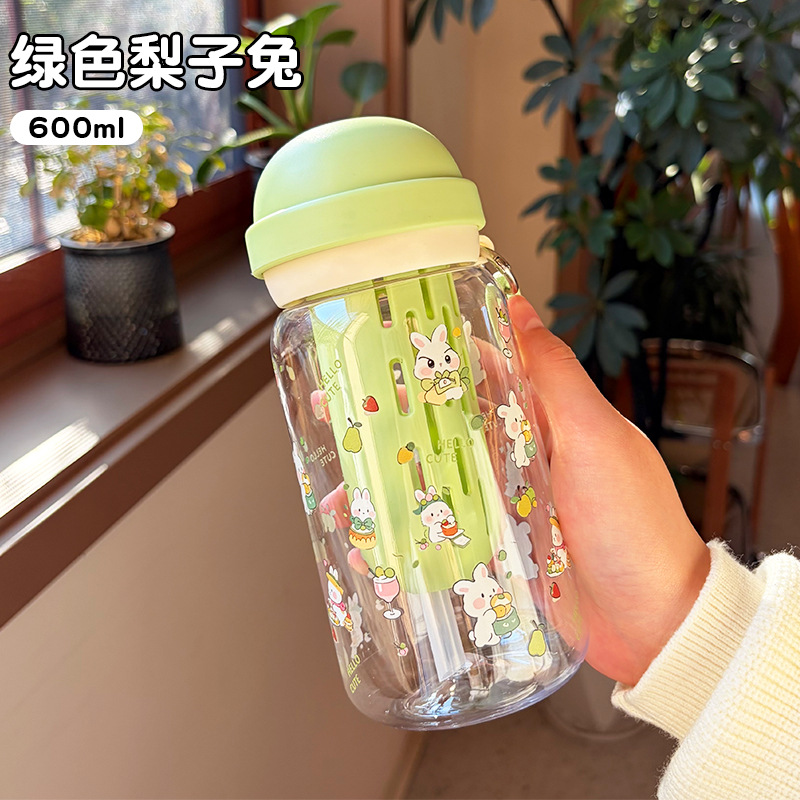 卡通可爱双饮塑料杯男女学生上学专用吸管杯高颜值茶水分离花茶杯
