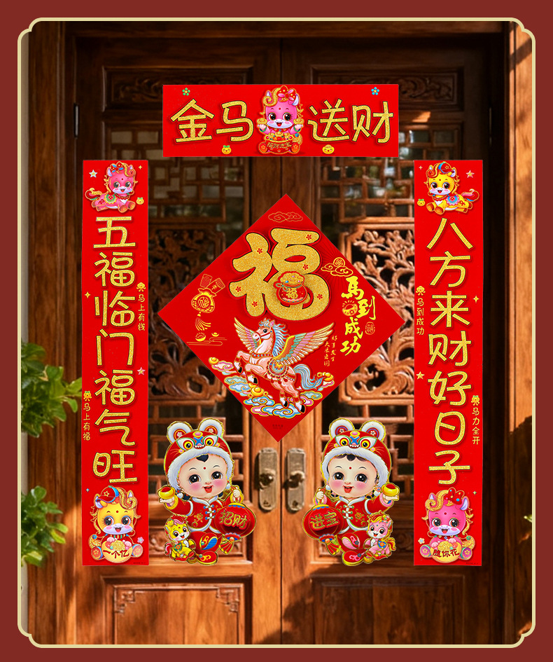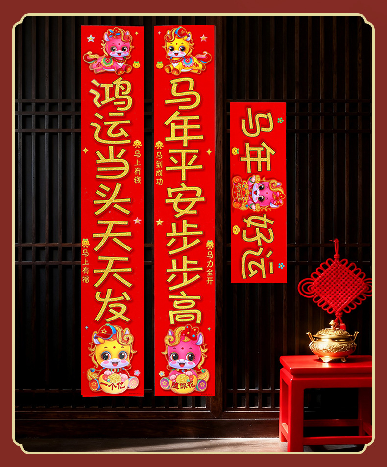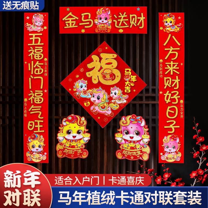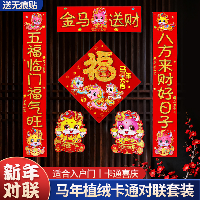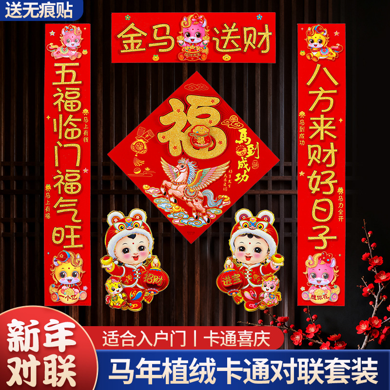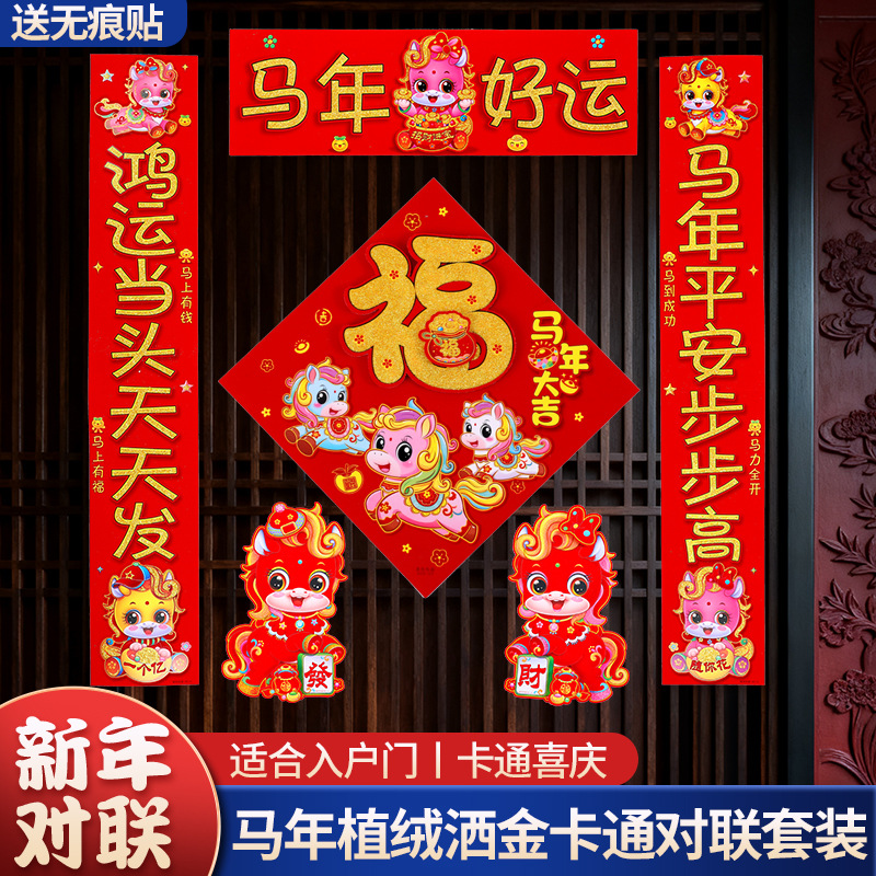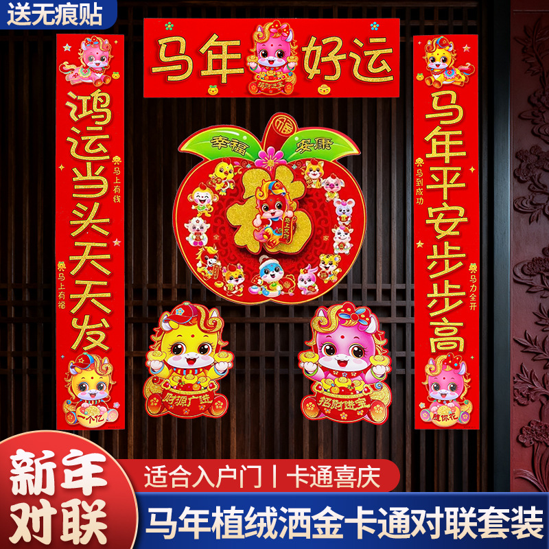 2026新款春节背胶对联家用马年春联过年新年新春农村大门绒布门联