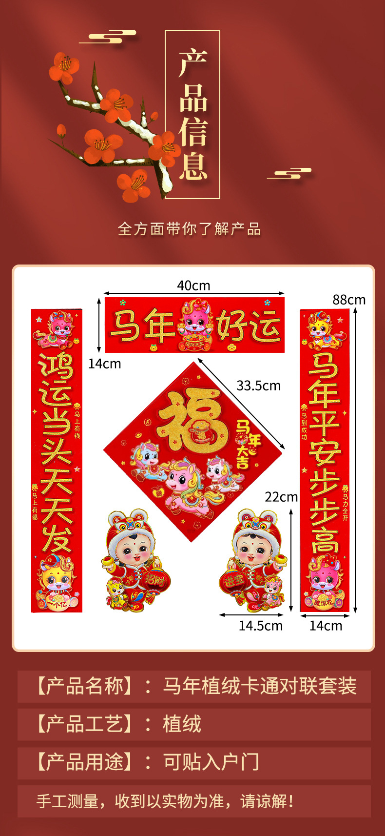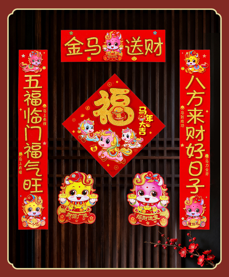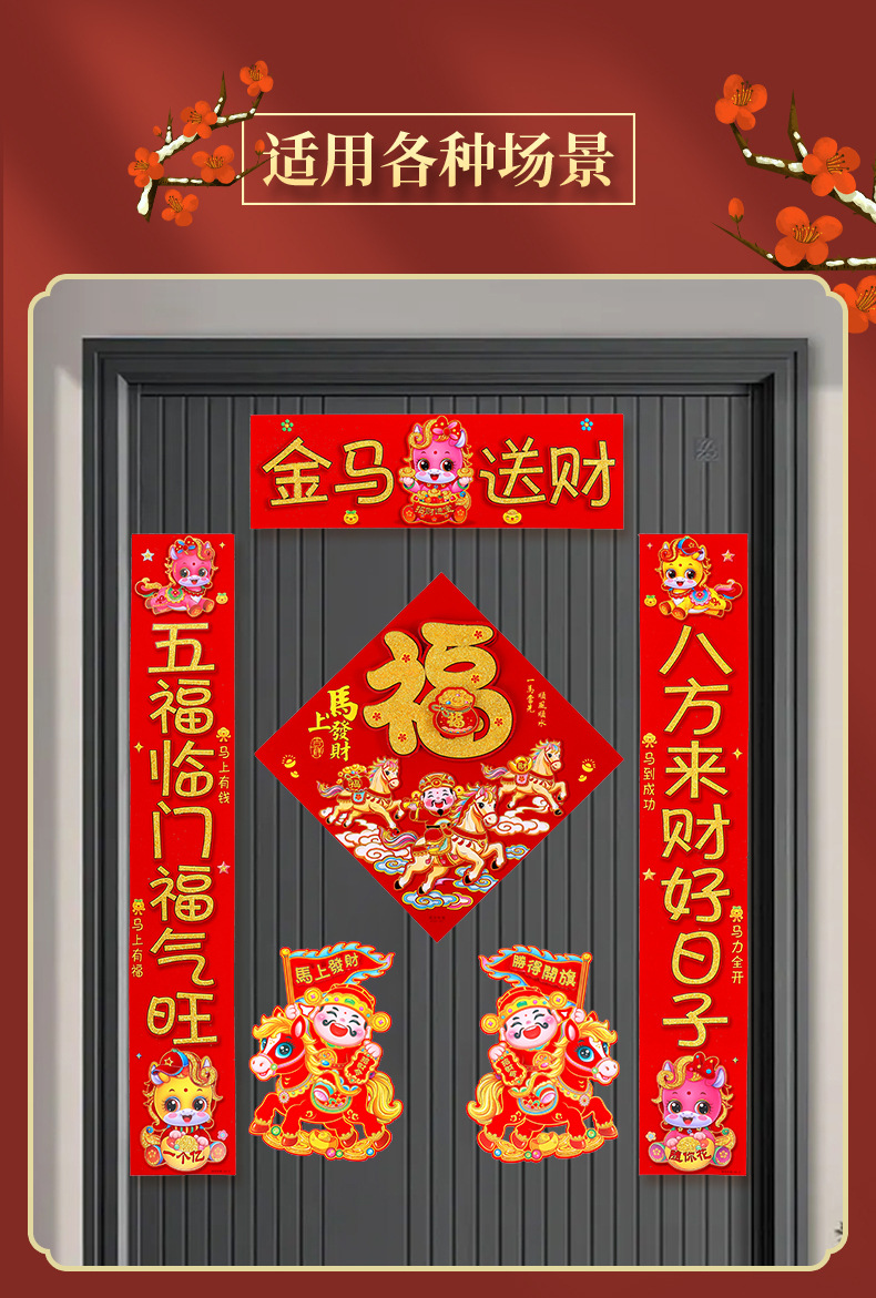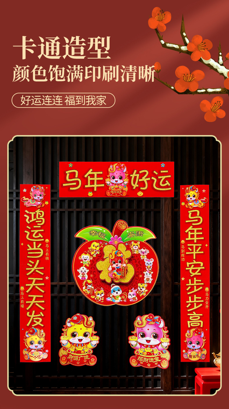 2026新款春节背胶对联家用马年春联过年新年新春农村大门绒布门联