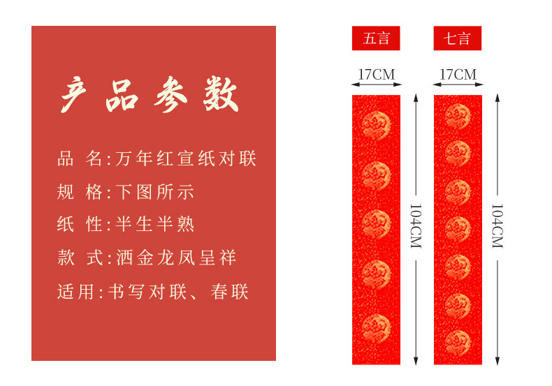 出厂价 对联批发 万年红洒金宣纸对联龙凤七言呈祥书法练习福字