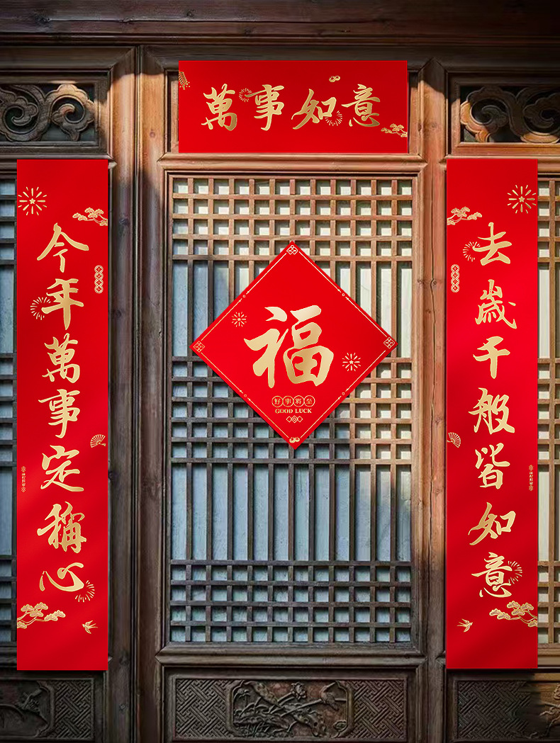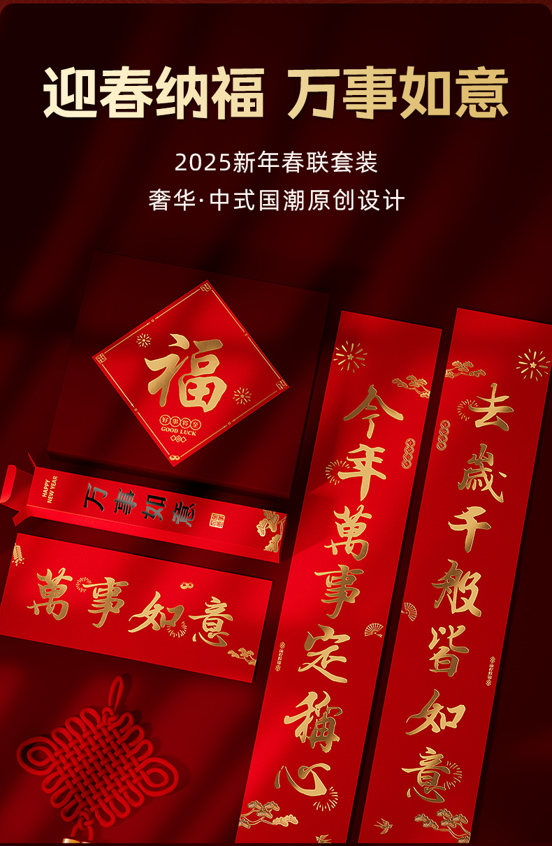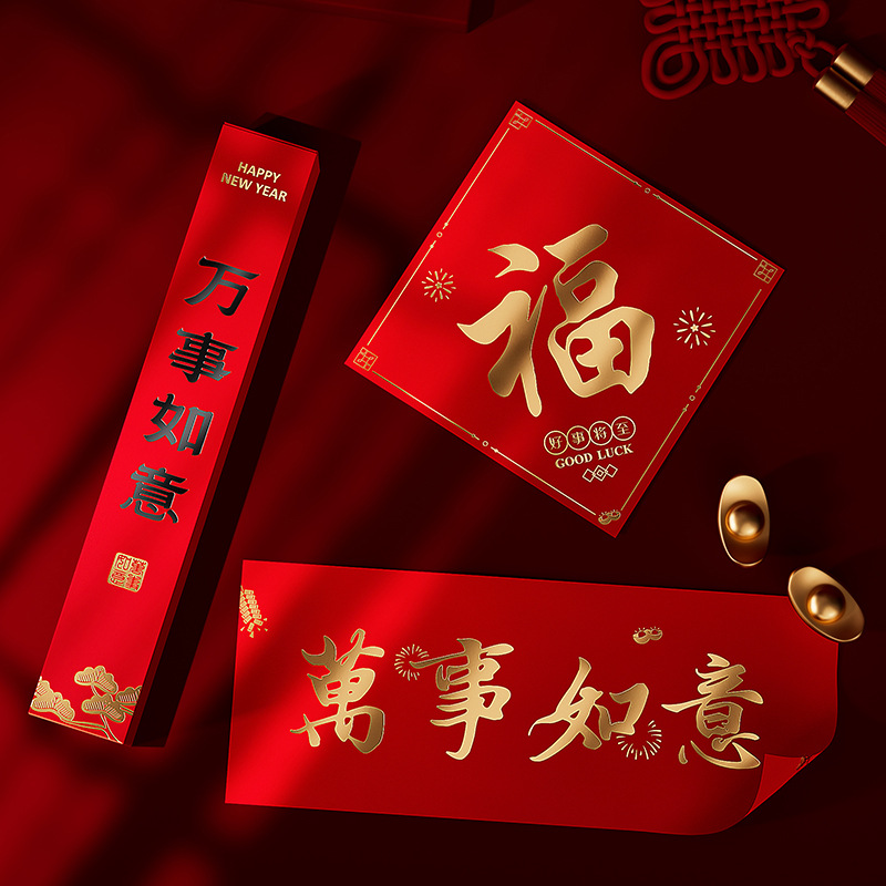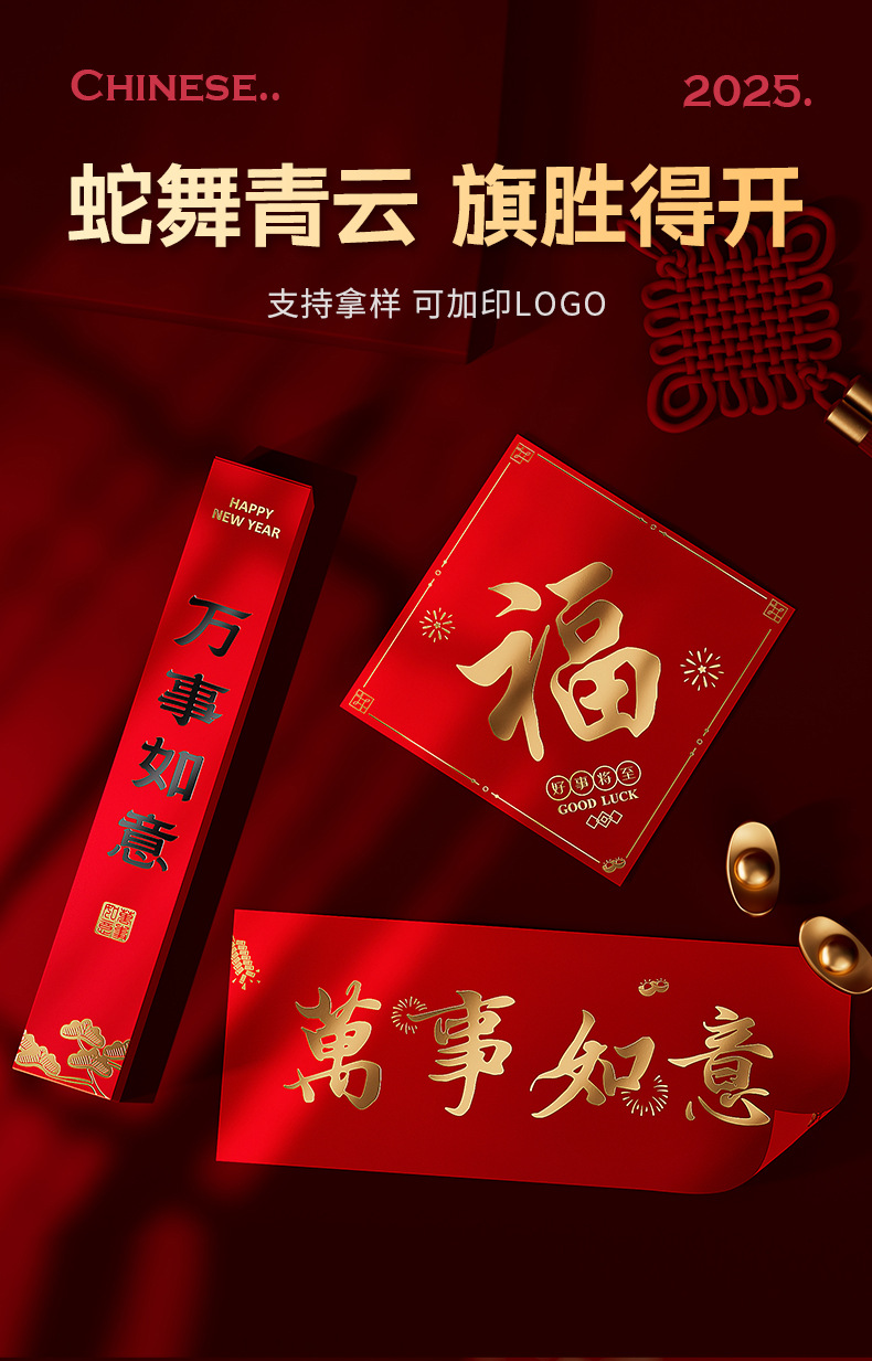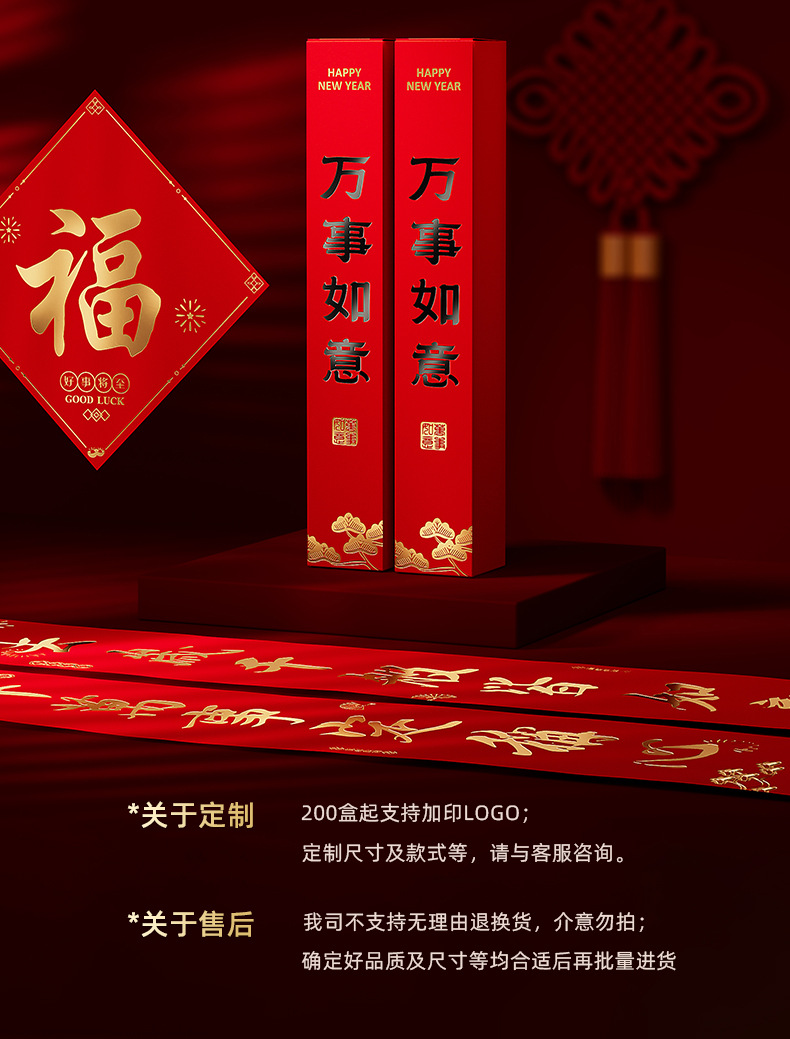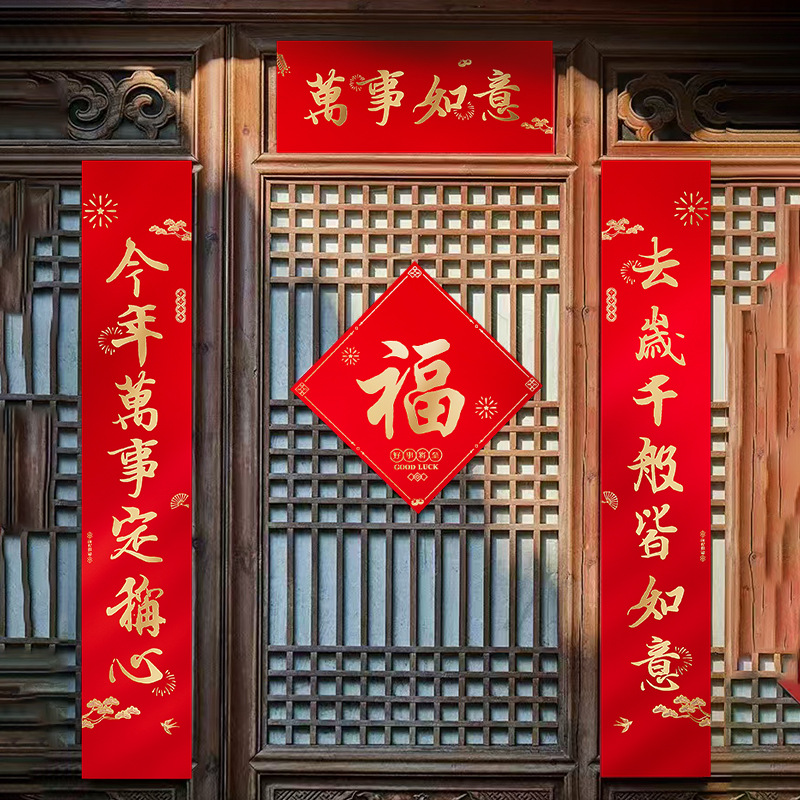 2026马年对联福字现货新春年货套装批发烫金书法春联可加LOGO喜庆