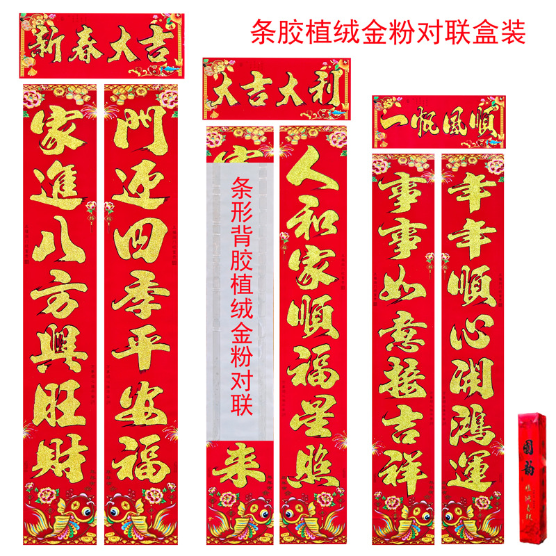 对联批发2026马年铜版纸烫金春节对联盒装植绒春联地摊批货厂家