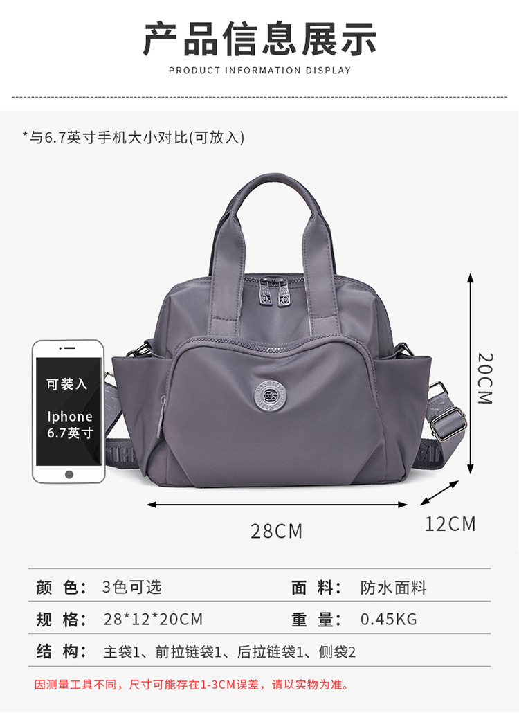 女士大容量托特包休闲斜挎包妈妈尼龙通勤纯色高级感单肩包手提袋