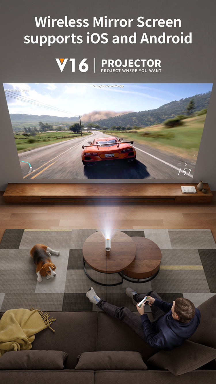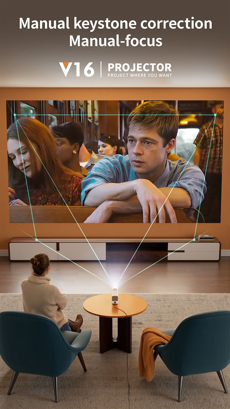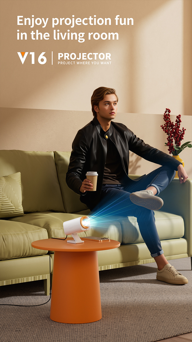 V16 跨境新款安卓12系统 家用户外手动对焦折叠便携式Mini投影仪