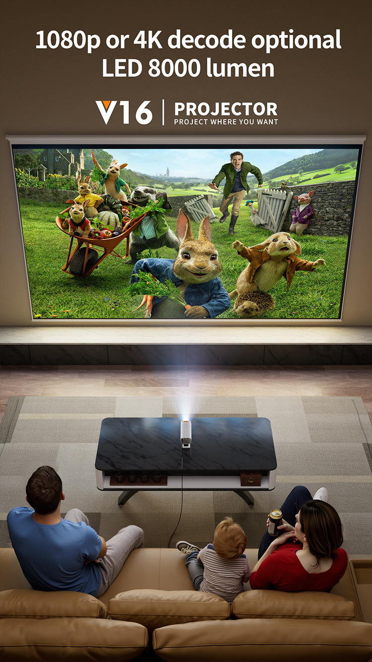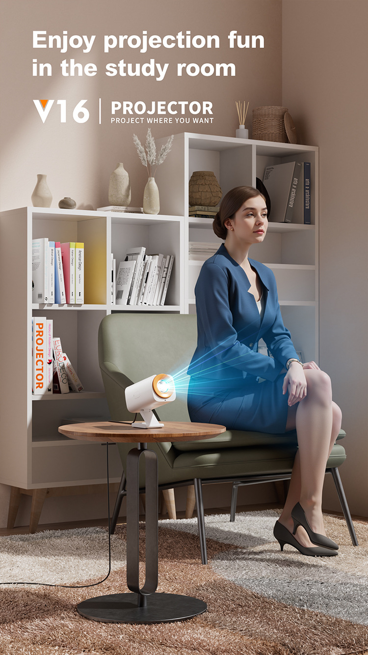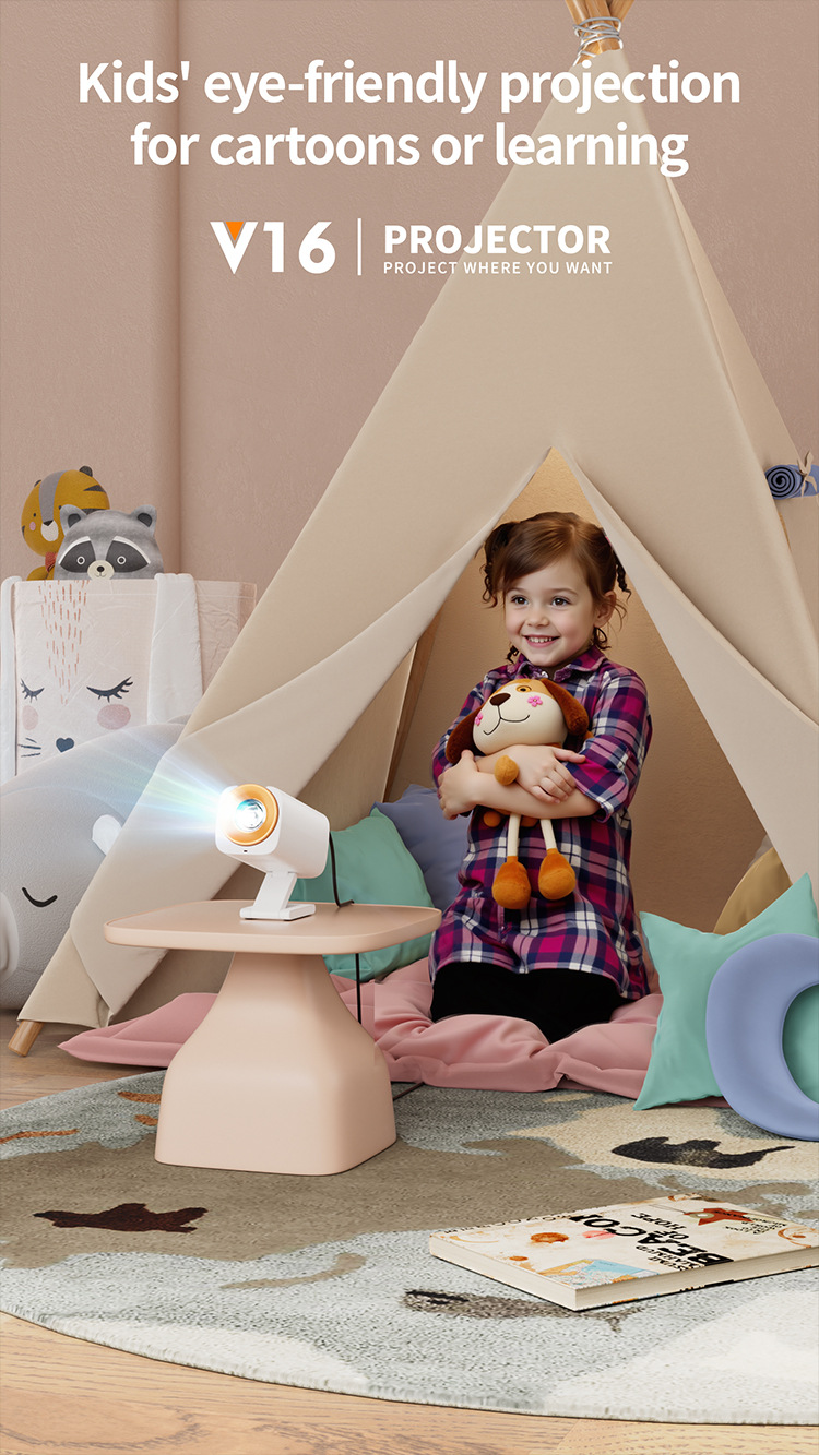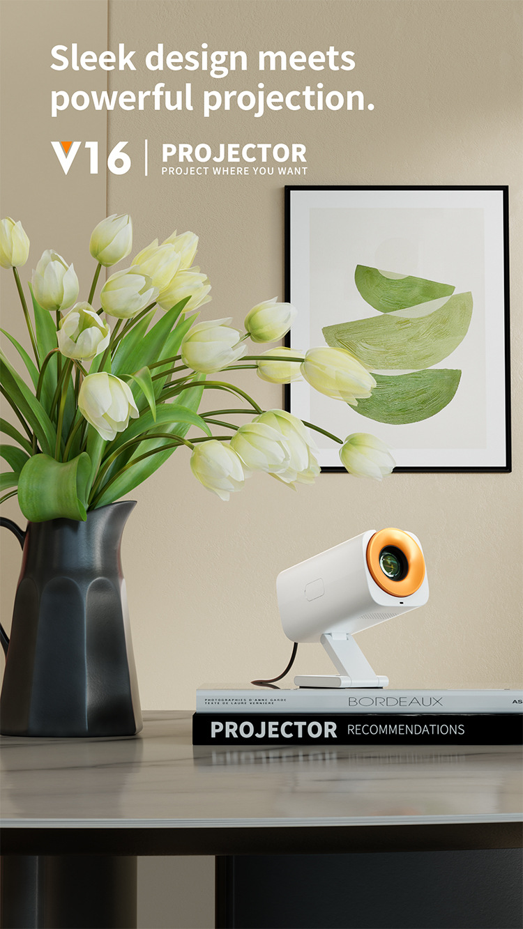 V16 跨境新款安卓12系统 家用户外手动对焦折叠便携式Mini投影仪