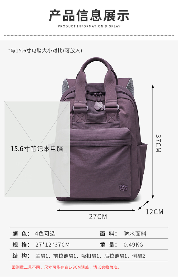 ins小众大学生书包旅行大容量通勤背包小型韩系高级感双肩背包女