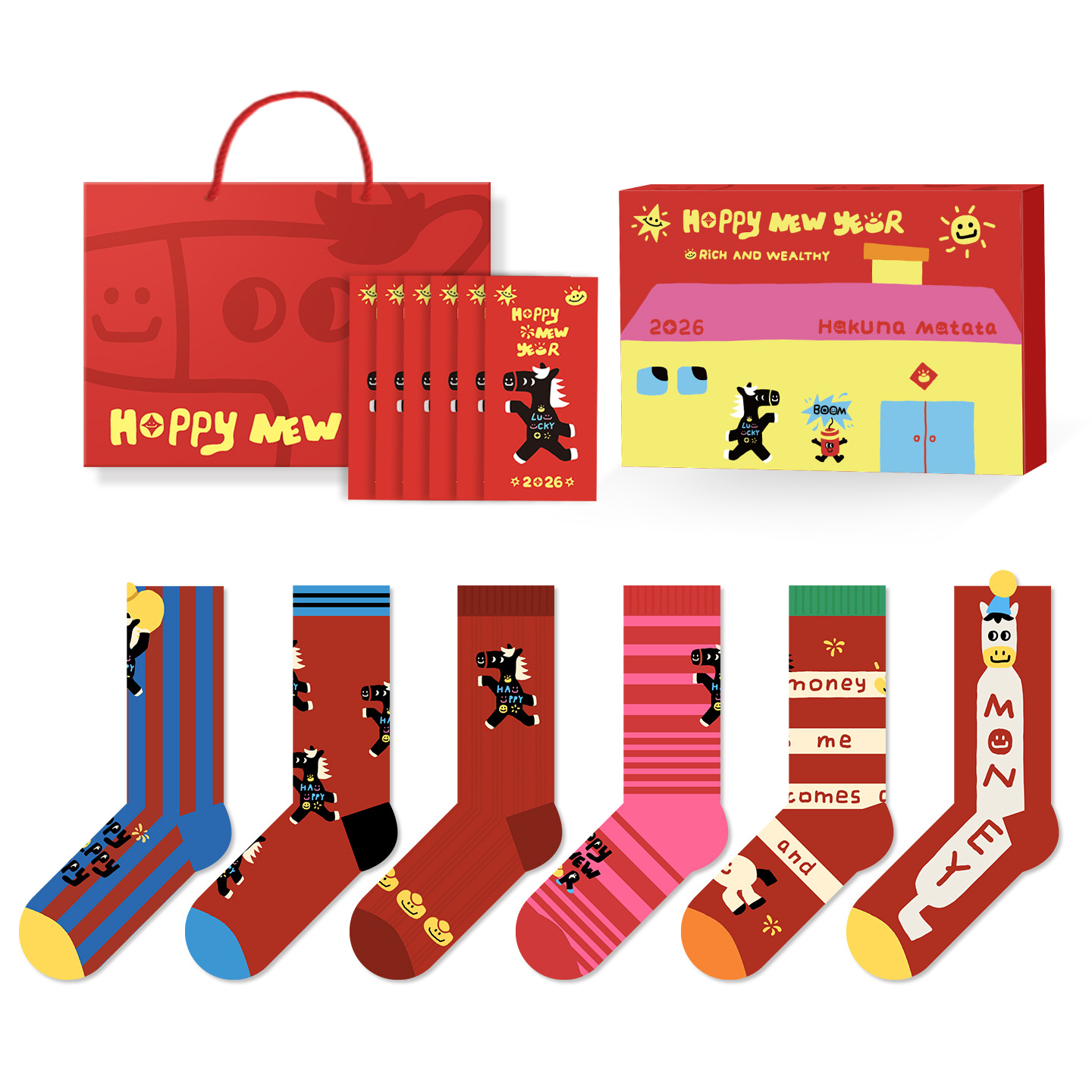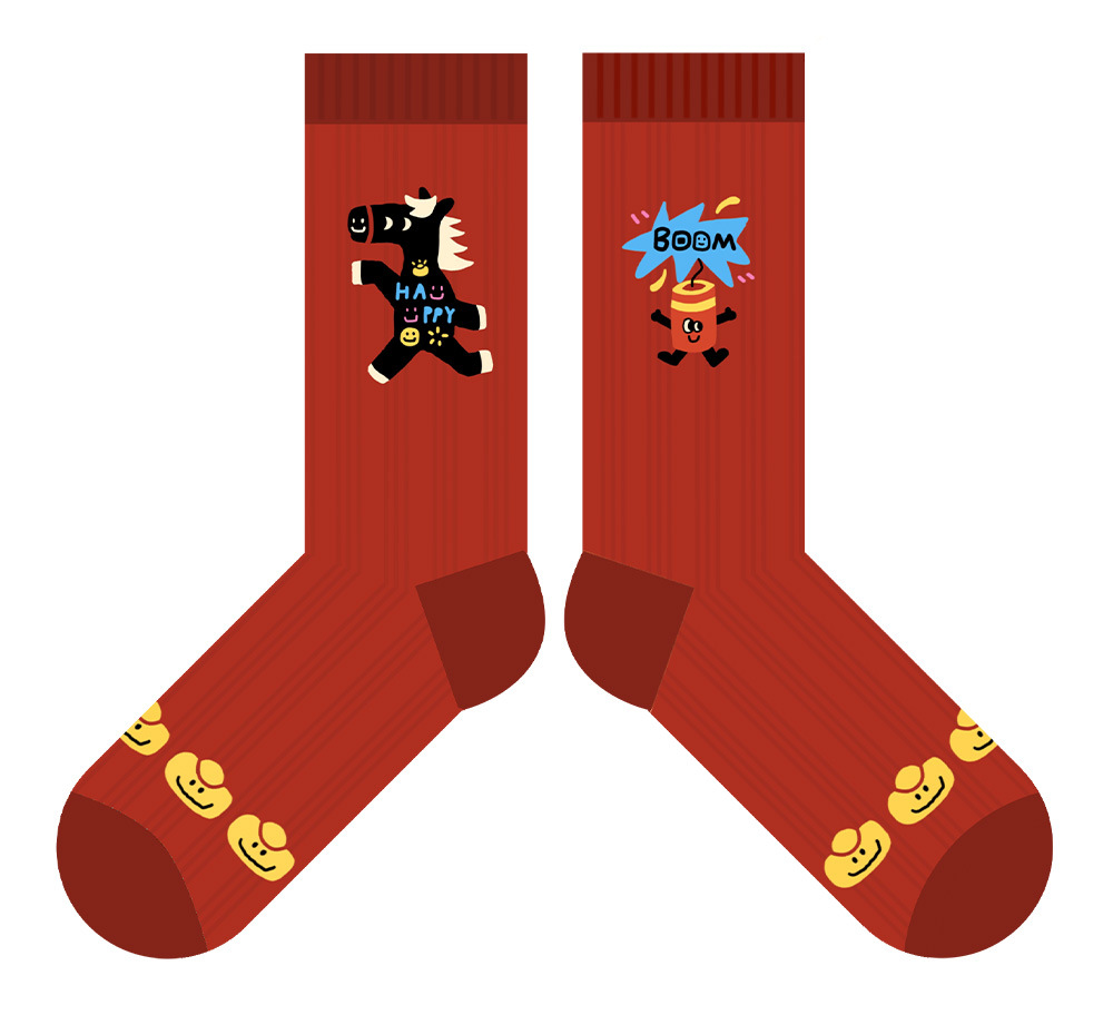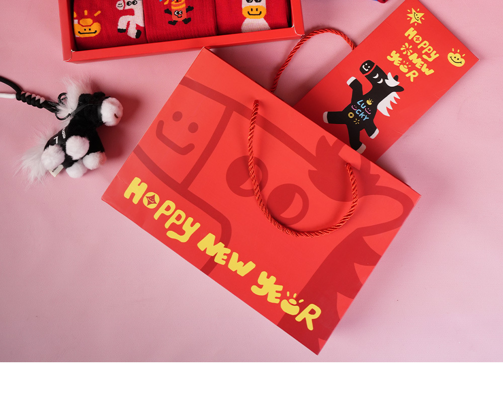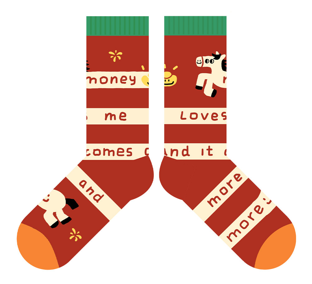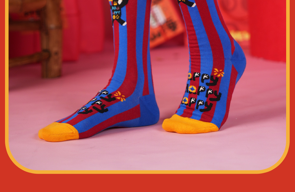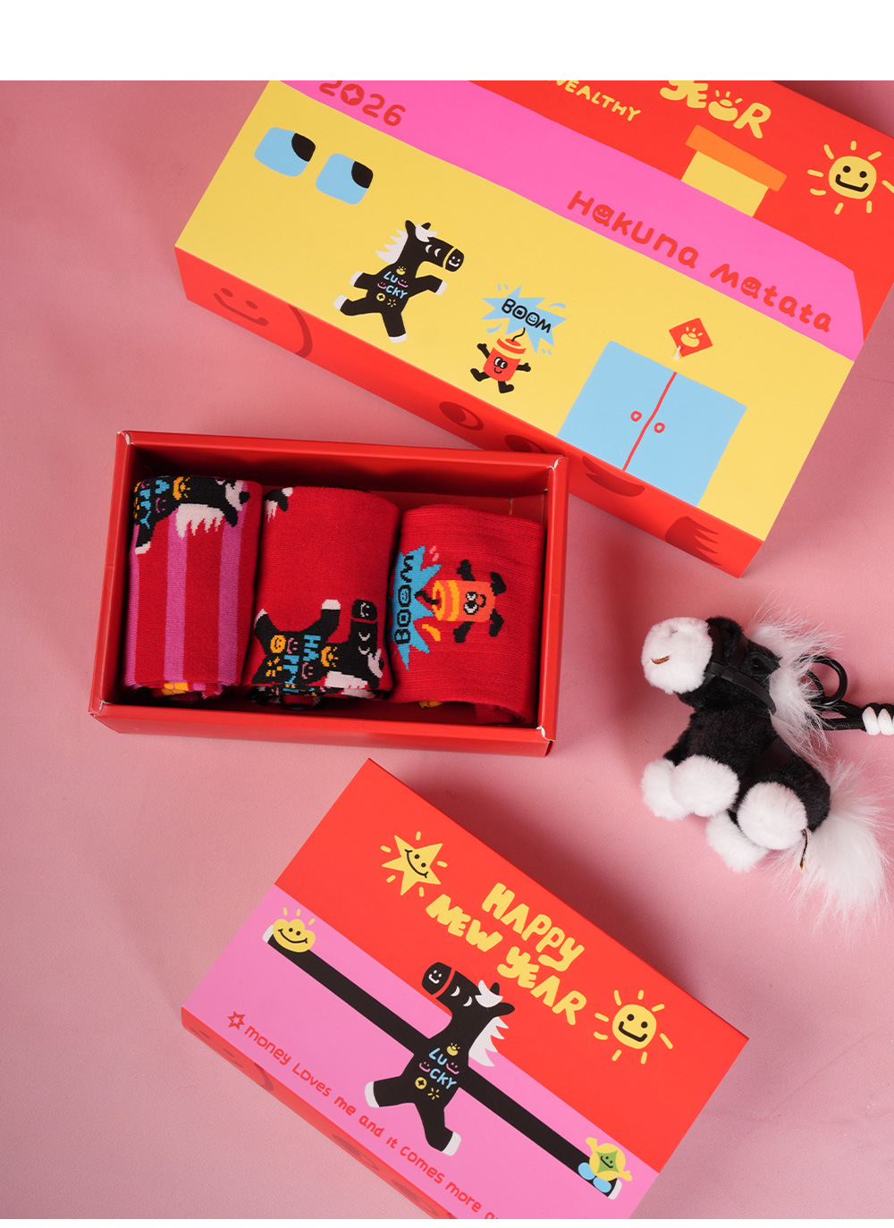 新年小马卡通年袜冬季加厚中筒设计感潮袜女本命年红底棉袜男