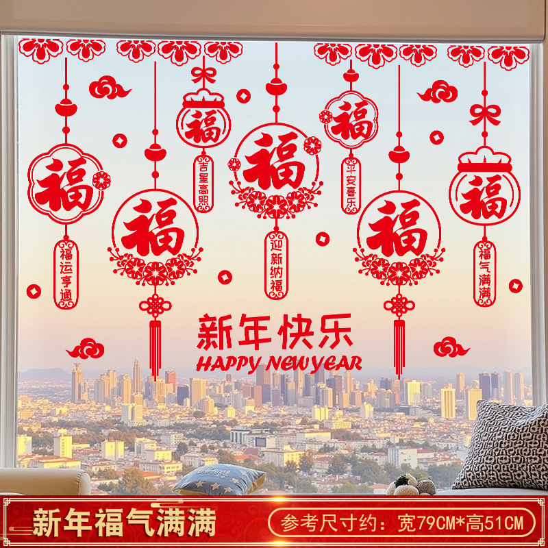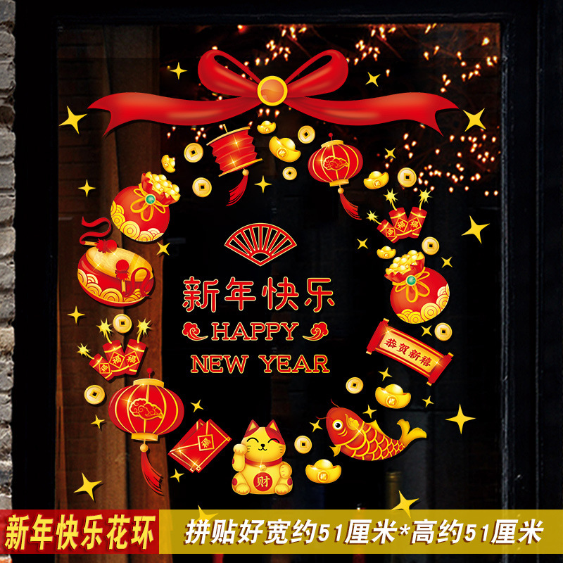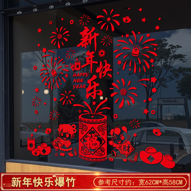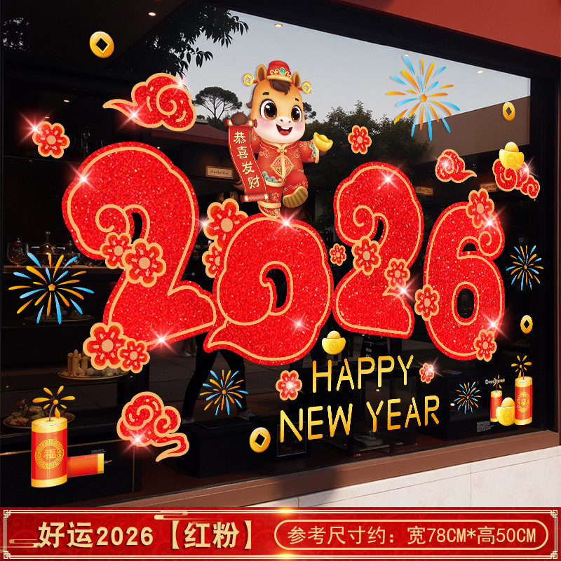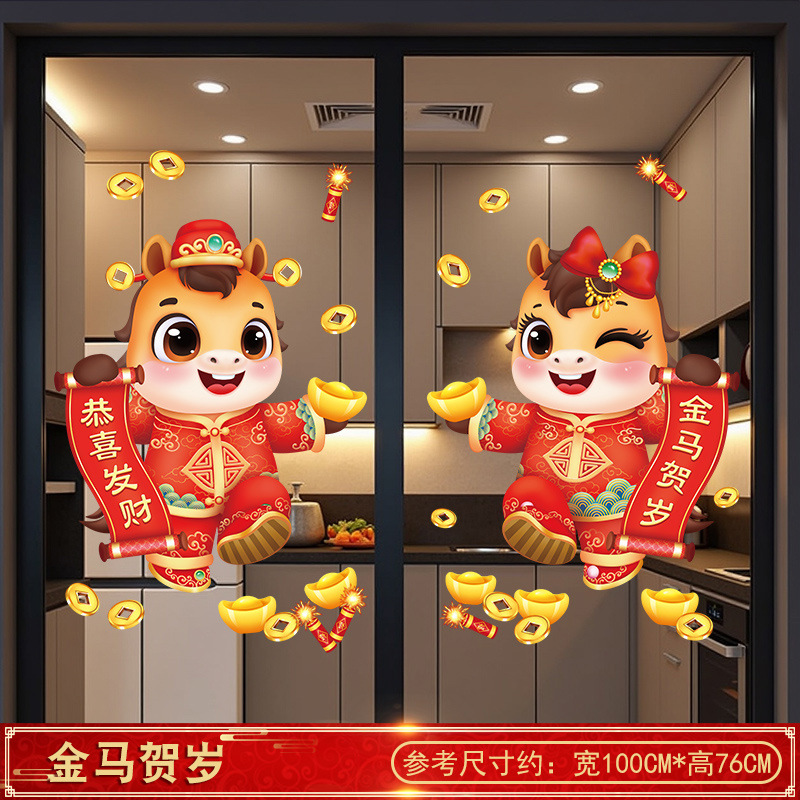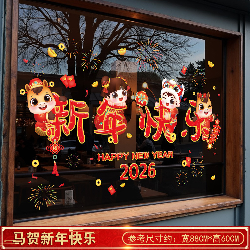 2026元旦新年装饰静电贴玻璃贴纸马年春节橱窗贴画窗花贴过年布置