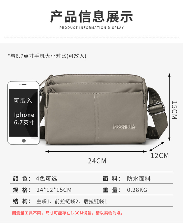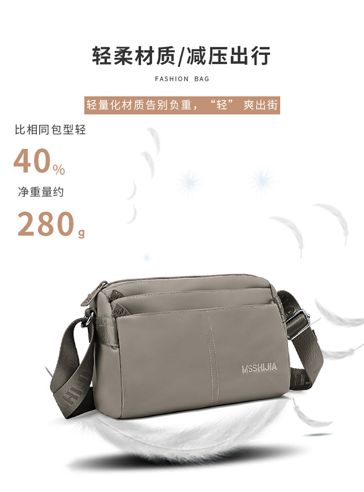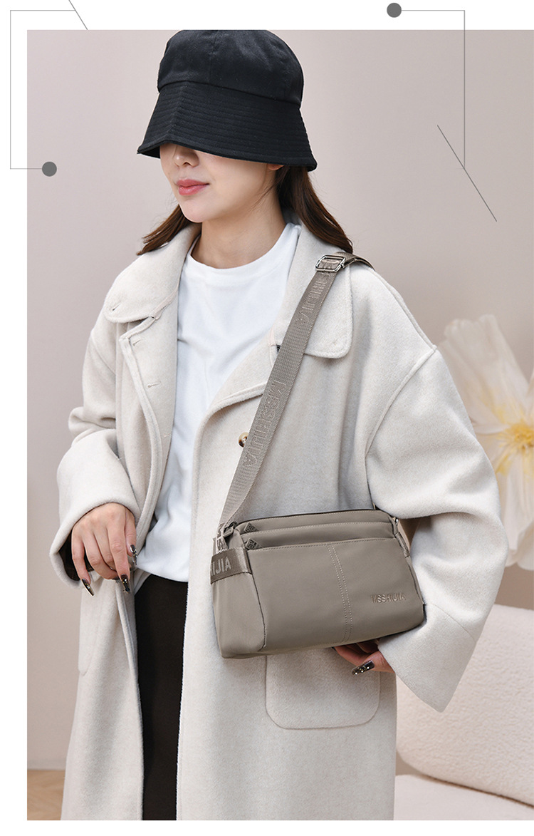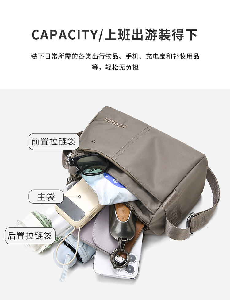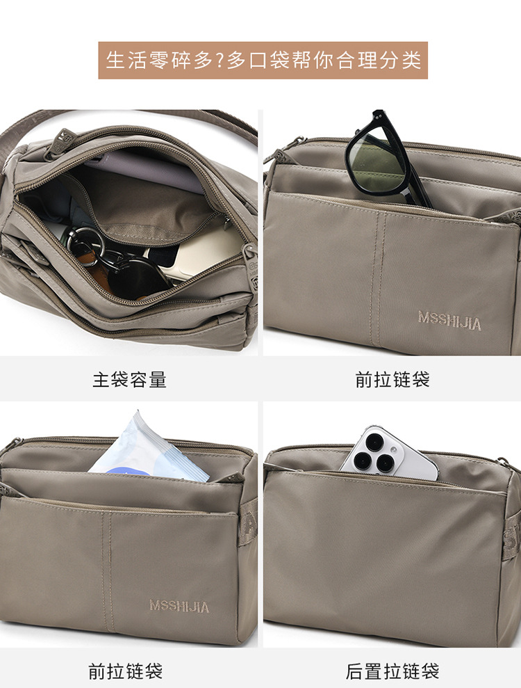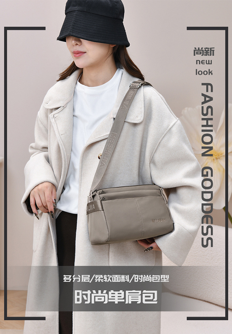 新品百搭大容量多隔层单肩包上班通勤斜挎包尼龙布手机包女包轻便