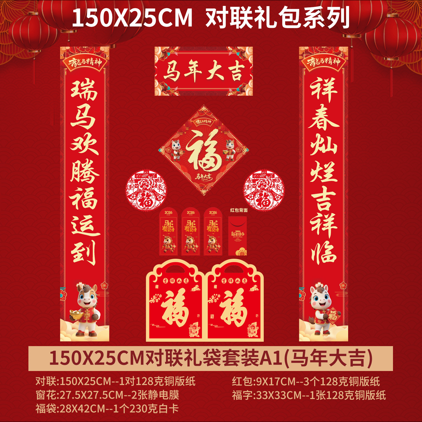 2026年对联定制套装大礼包烫金马年春节春联批货广告对联红包批发