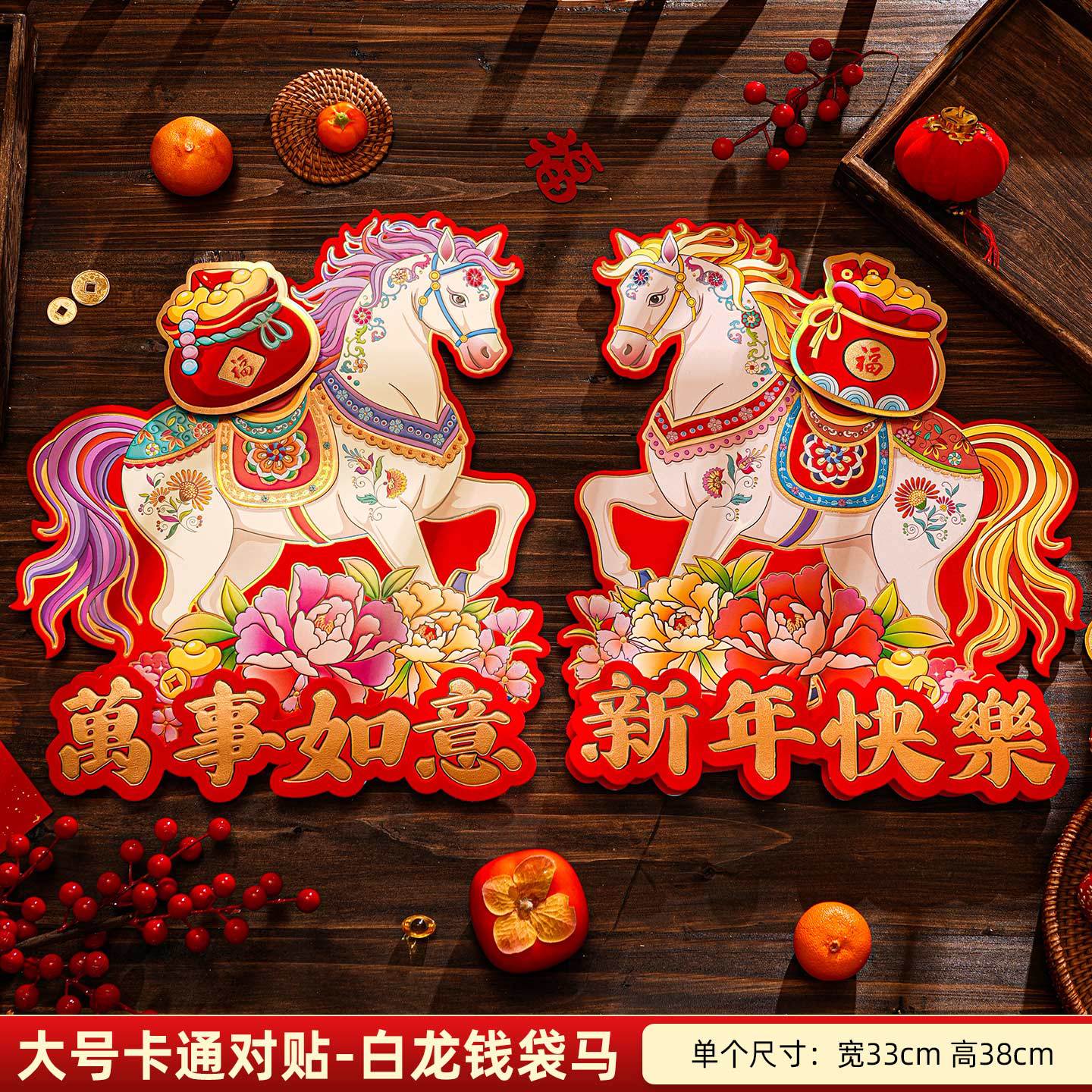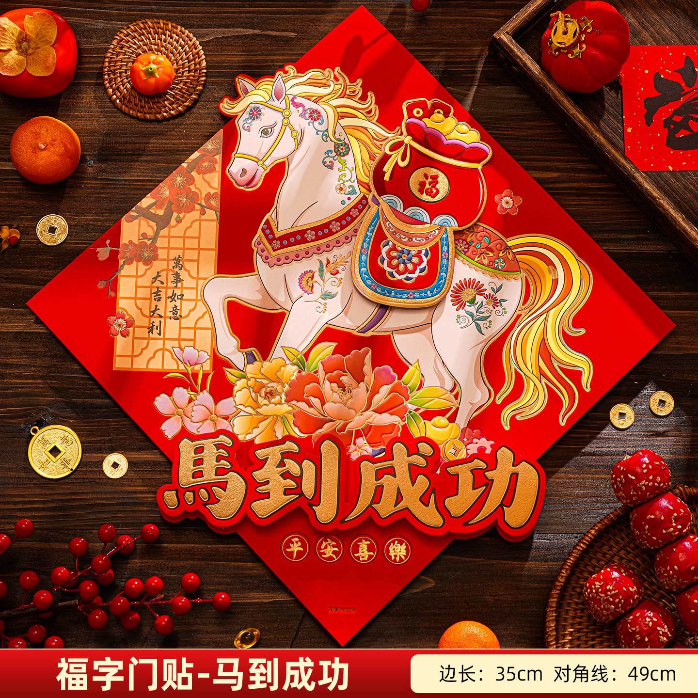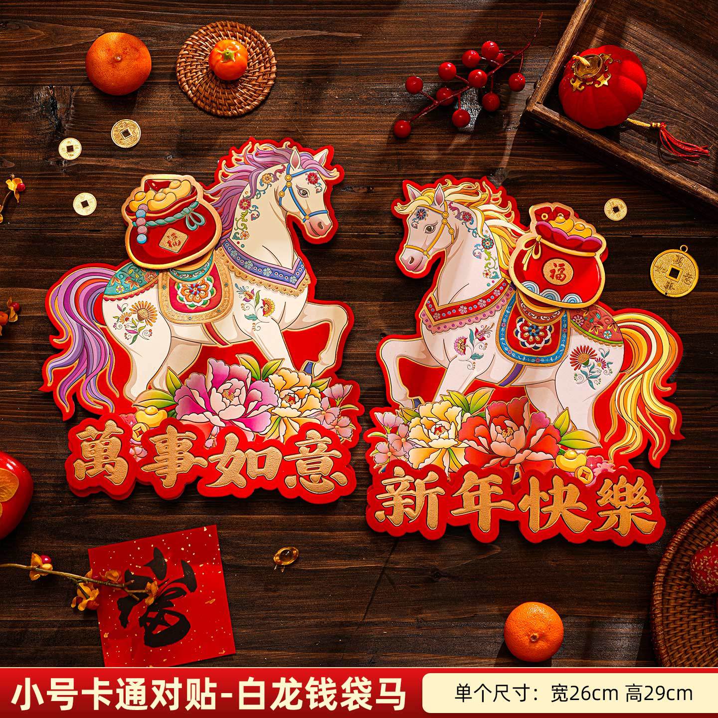 马年对贴2026新款福字门贴春节过年立体生肖卡通福字墙贴年画装饰