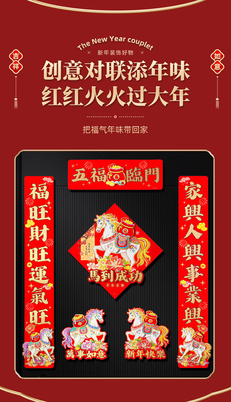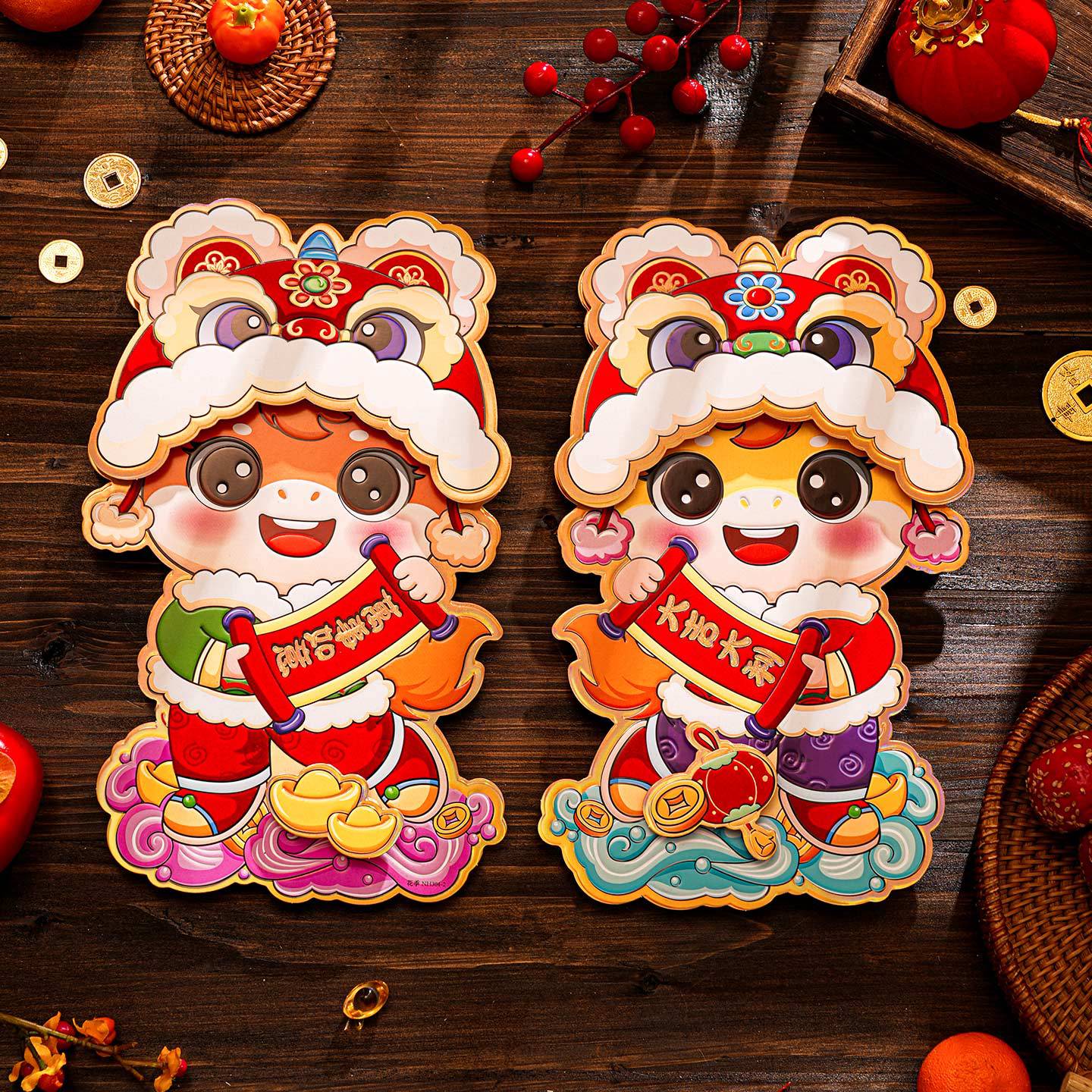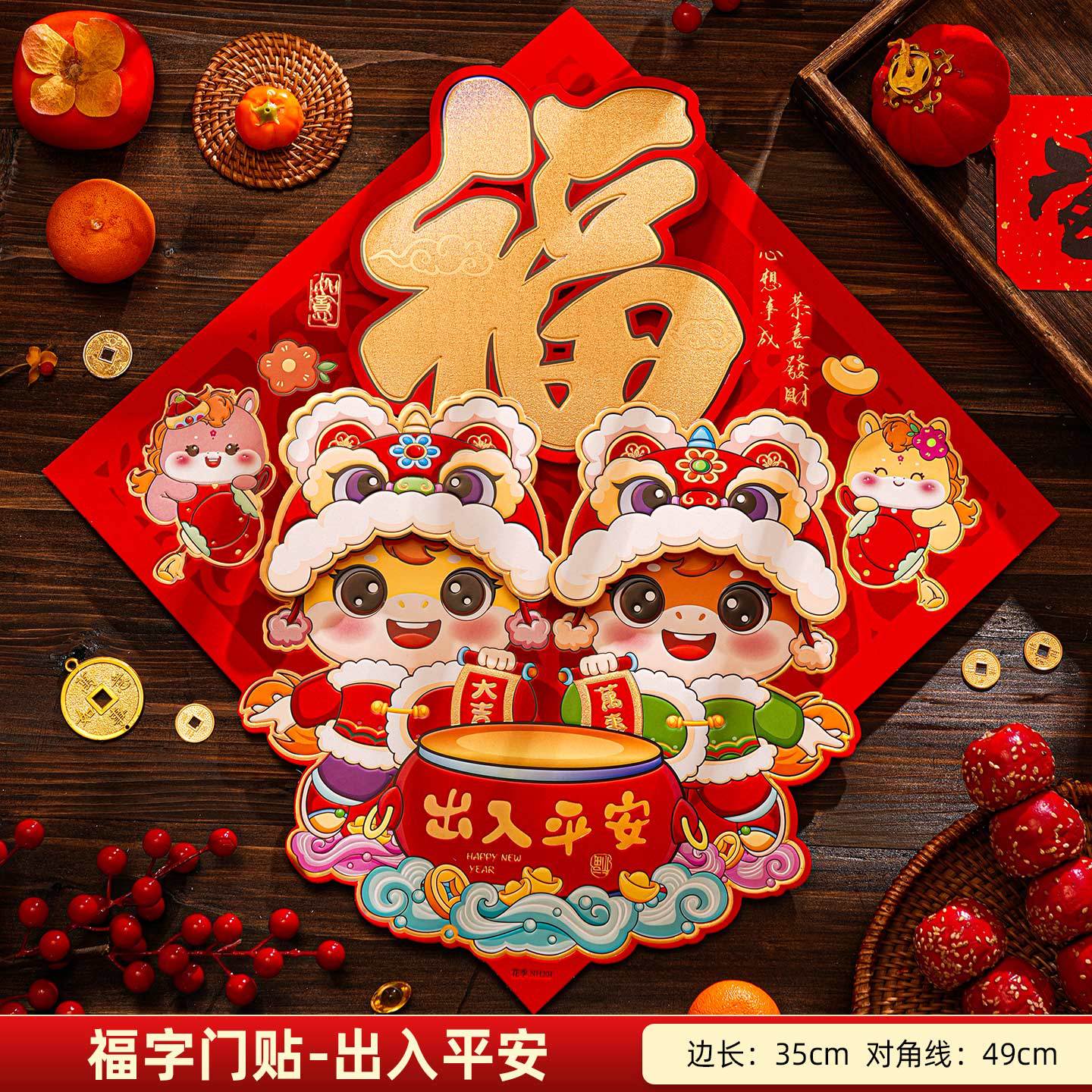 马年对贴2026新款福字门贴春节过年立体生肖卡通福字墙贴年画装饰