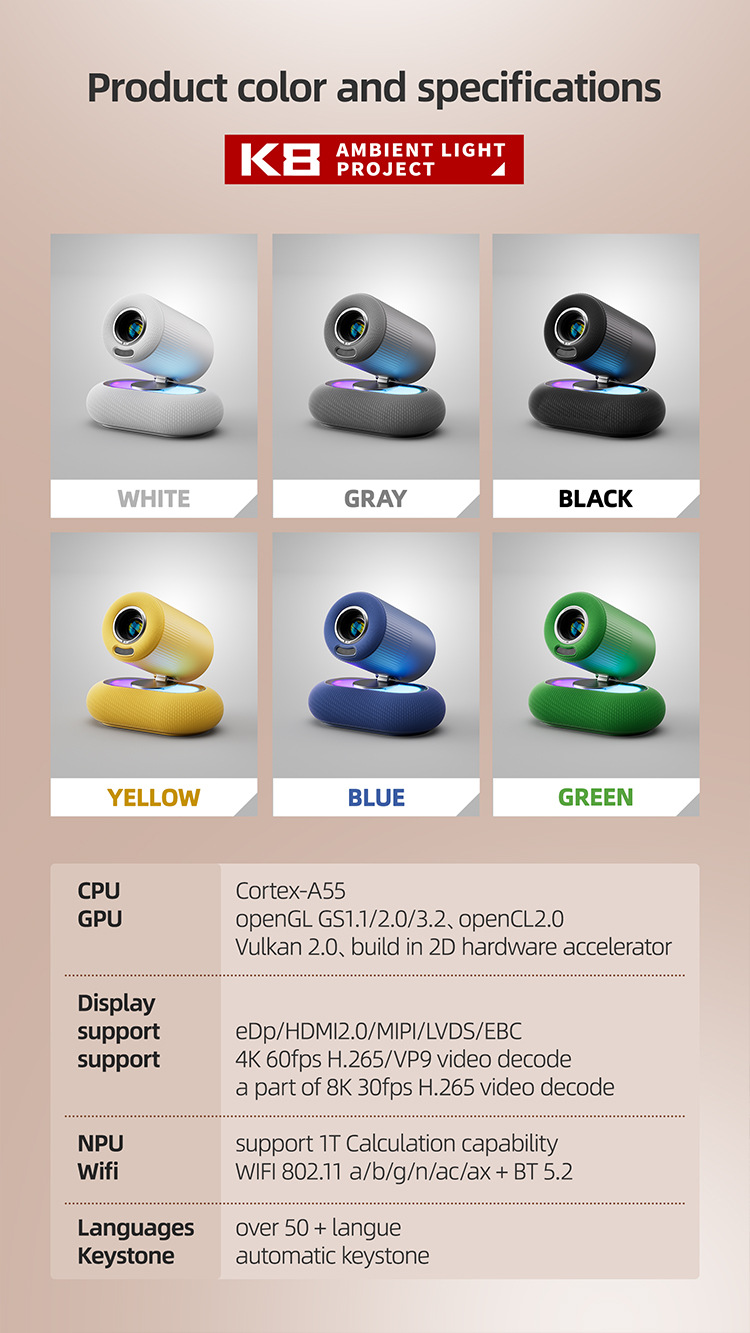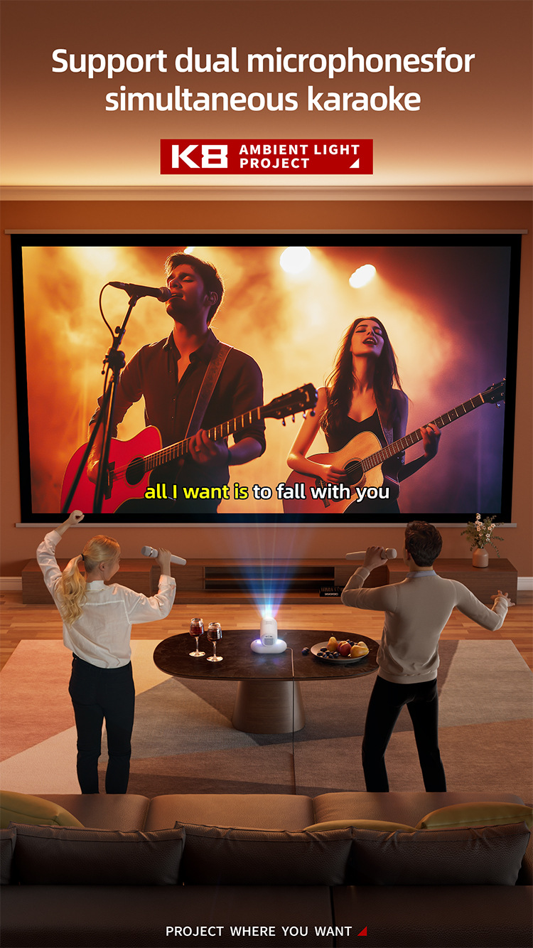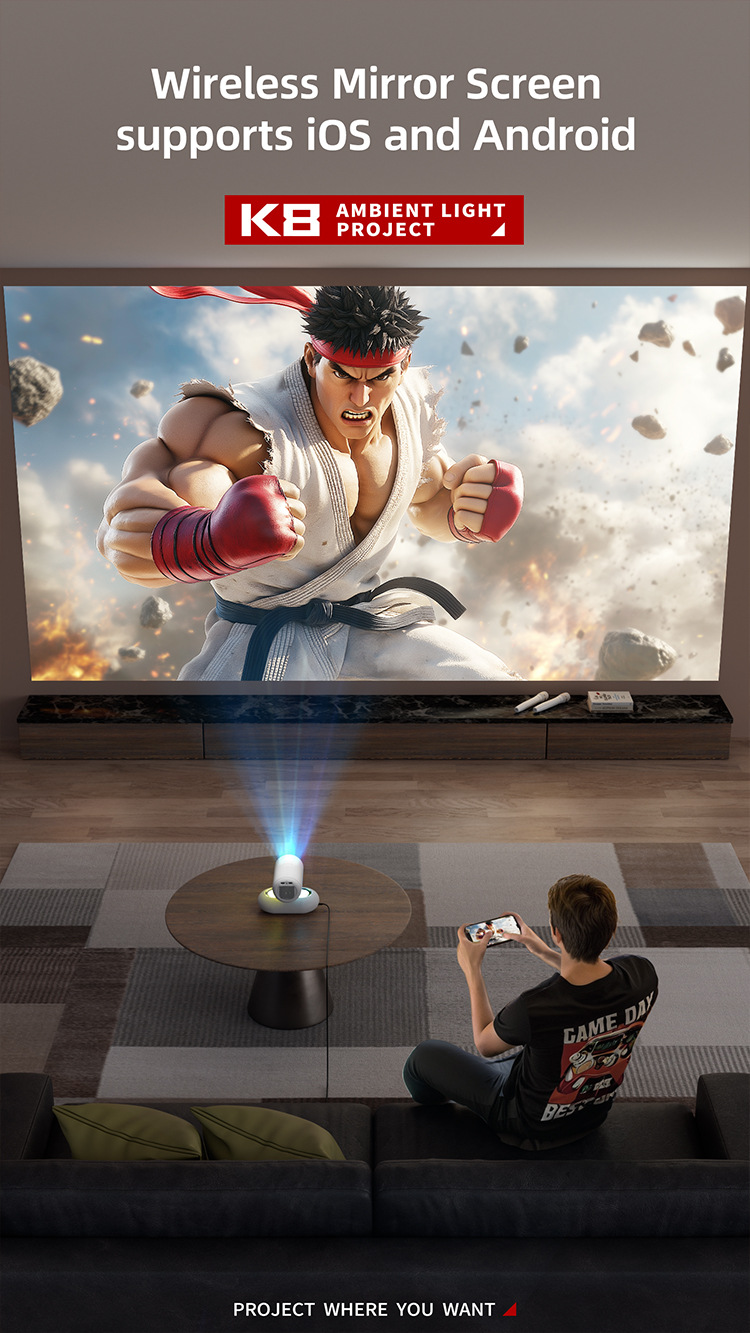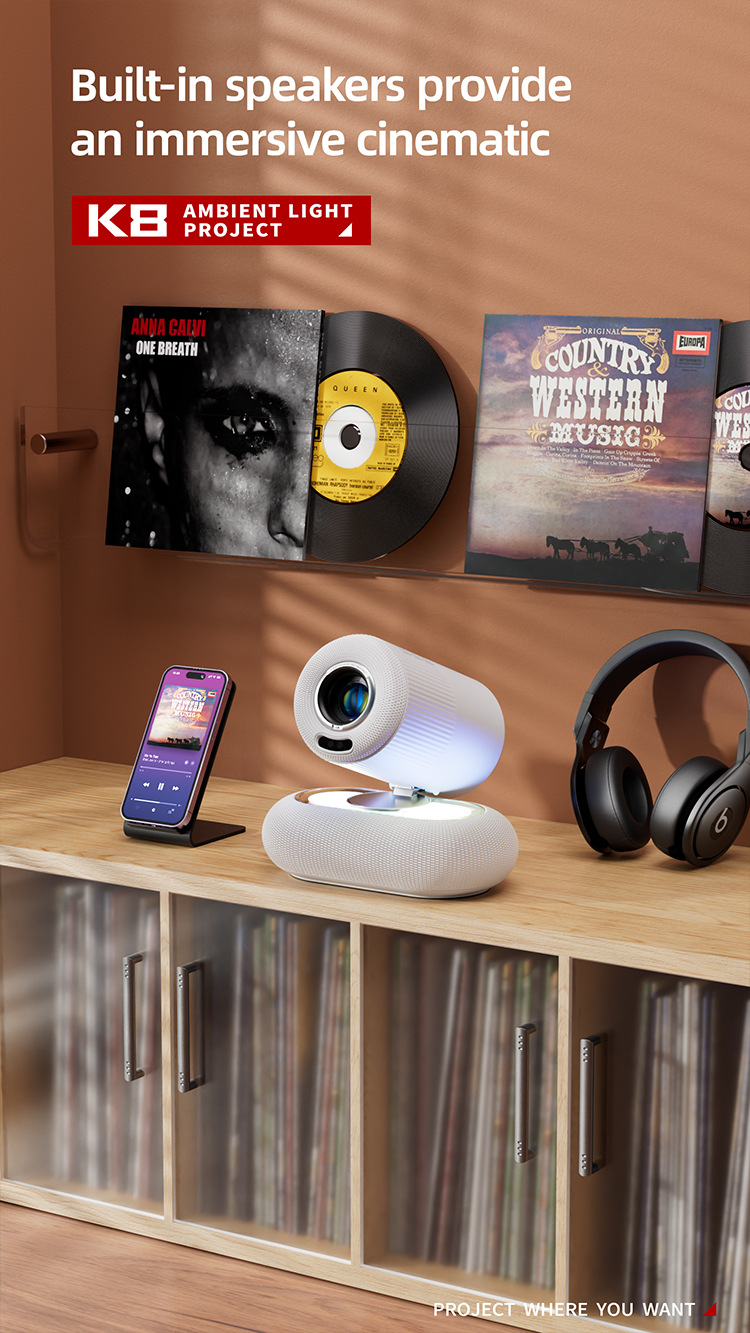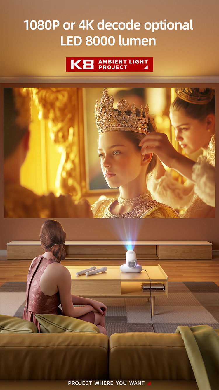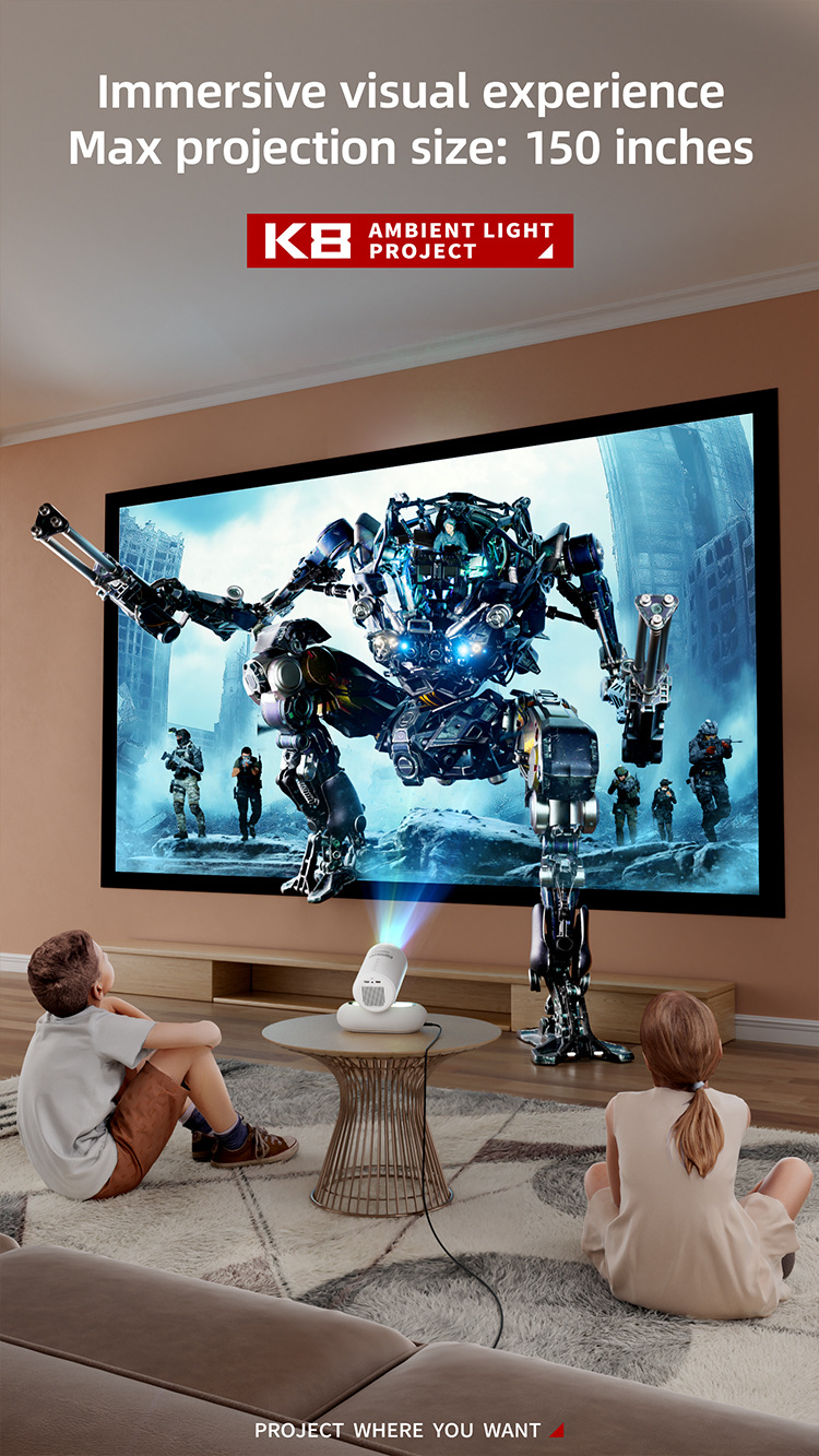 K8 跨境新款安卓13系统 自动对焦1080P 家用可配麦克风Mini投影仪