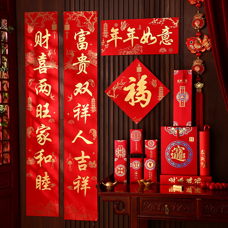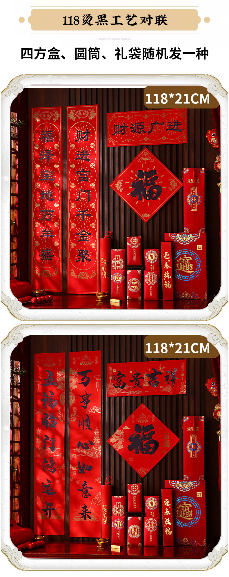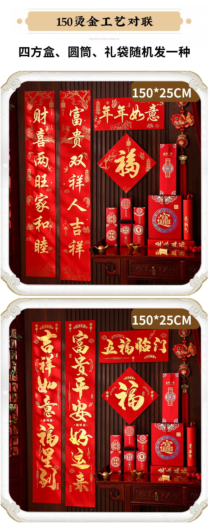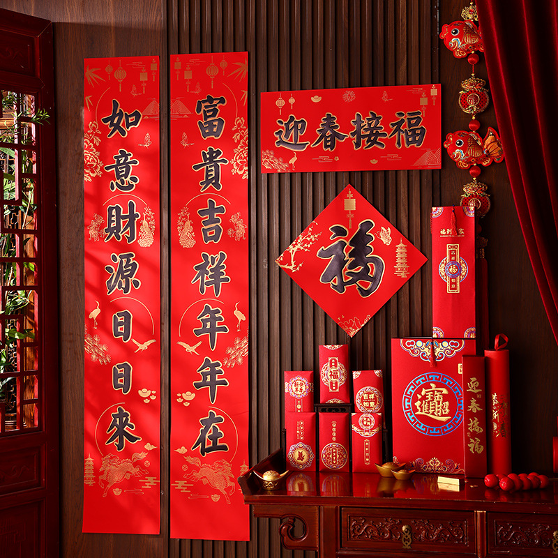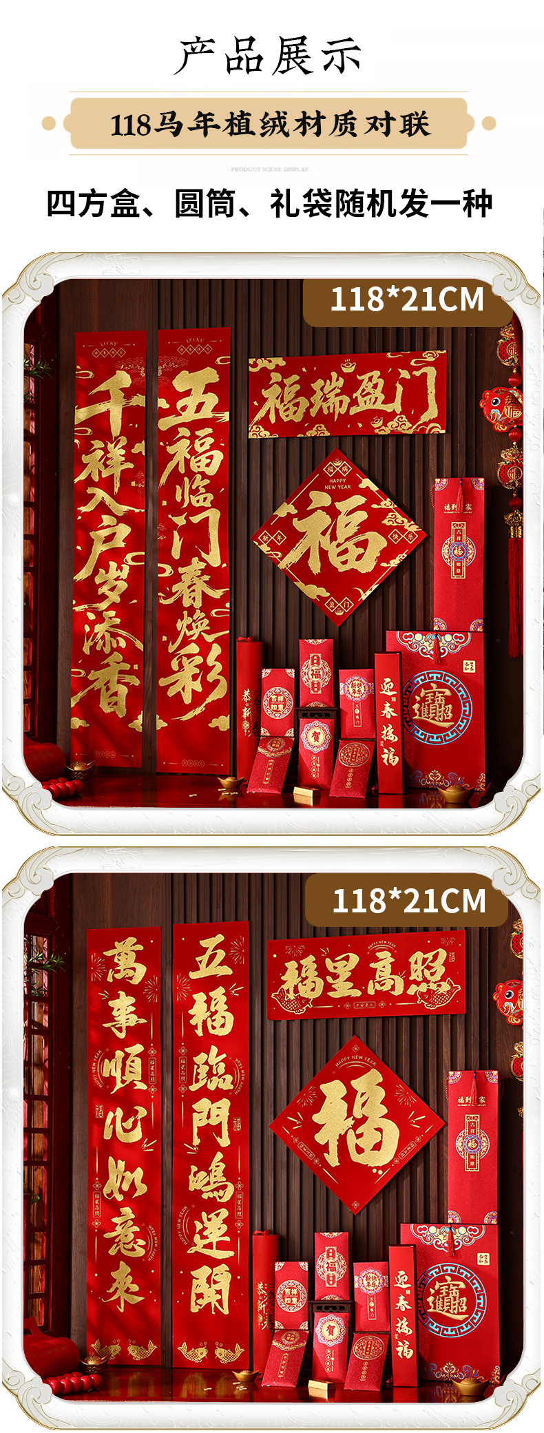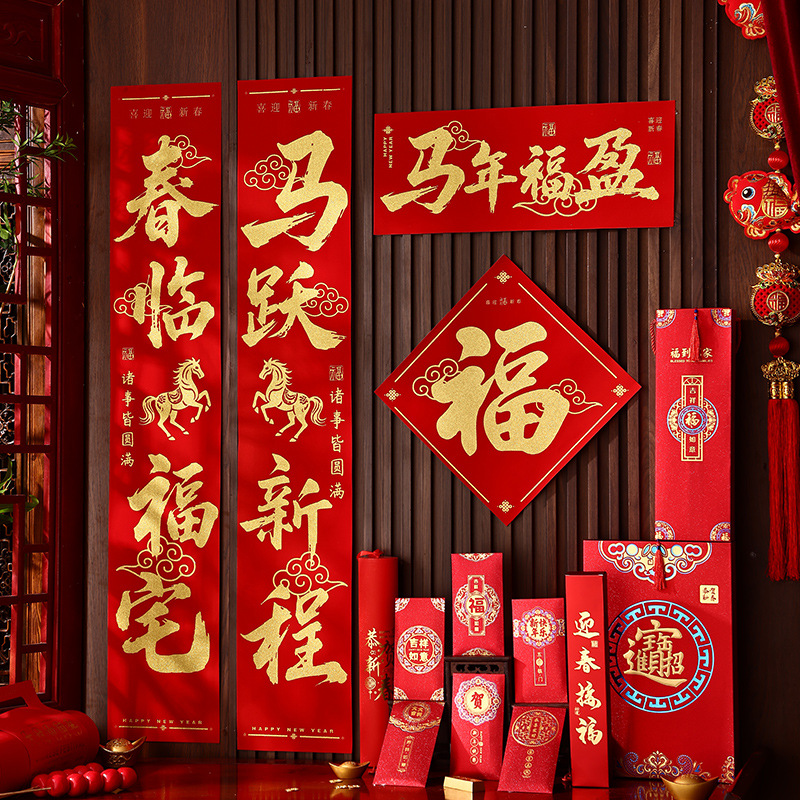 2026马年烫金对联定制植绒春联现货大礼盒定做企业银行印LOGO批发