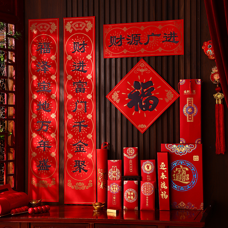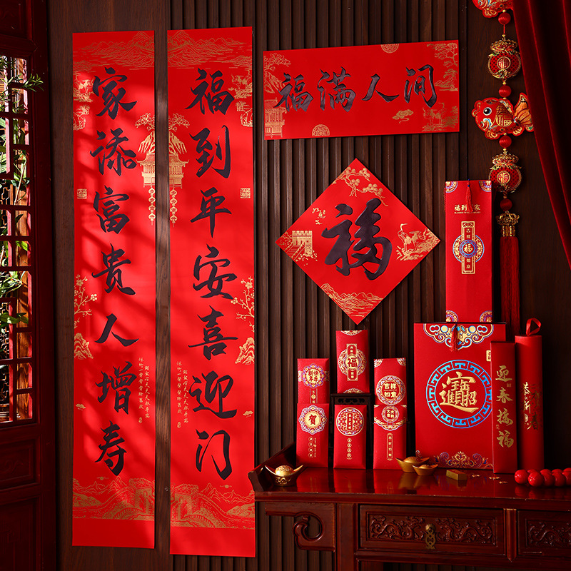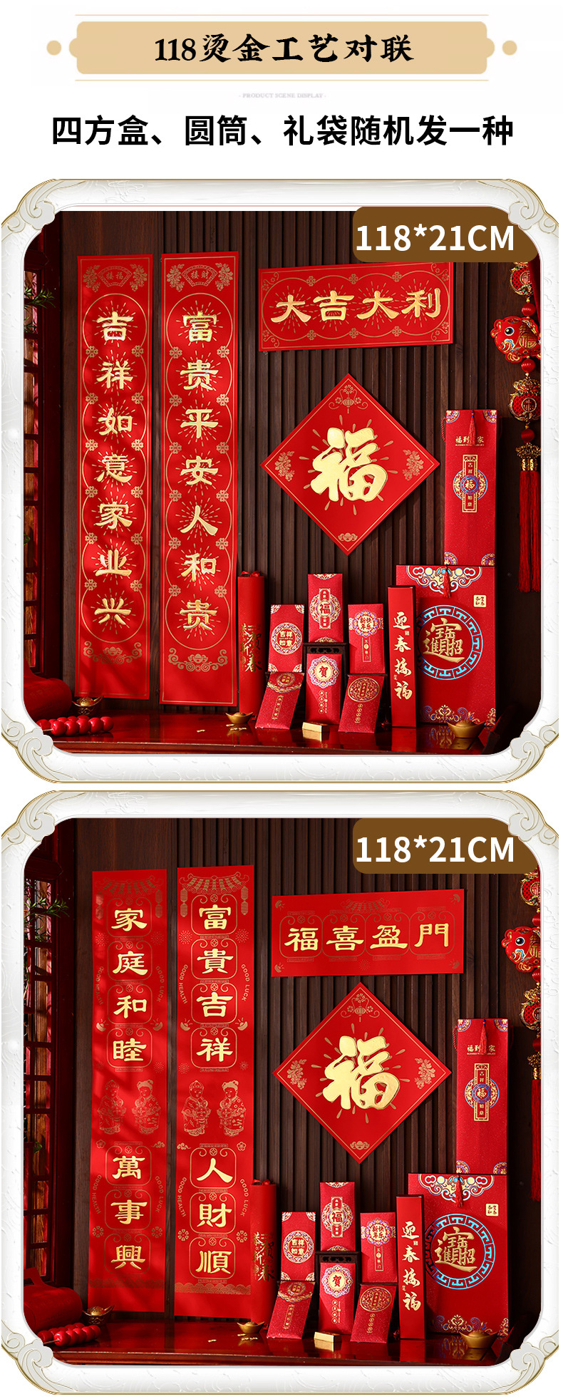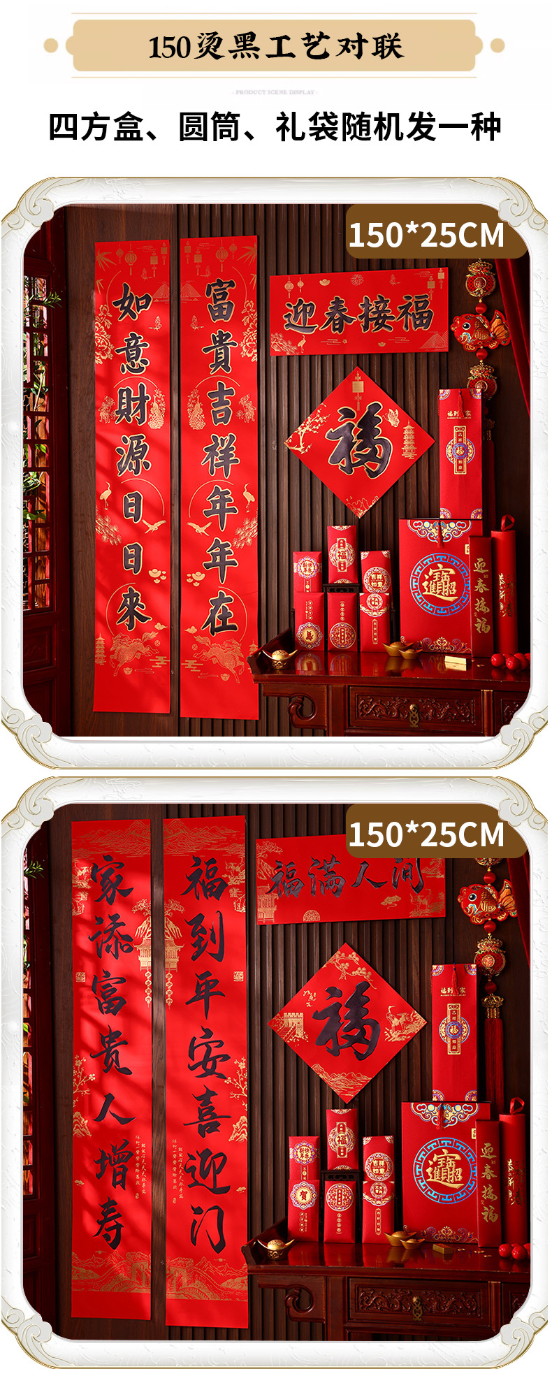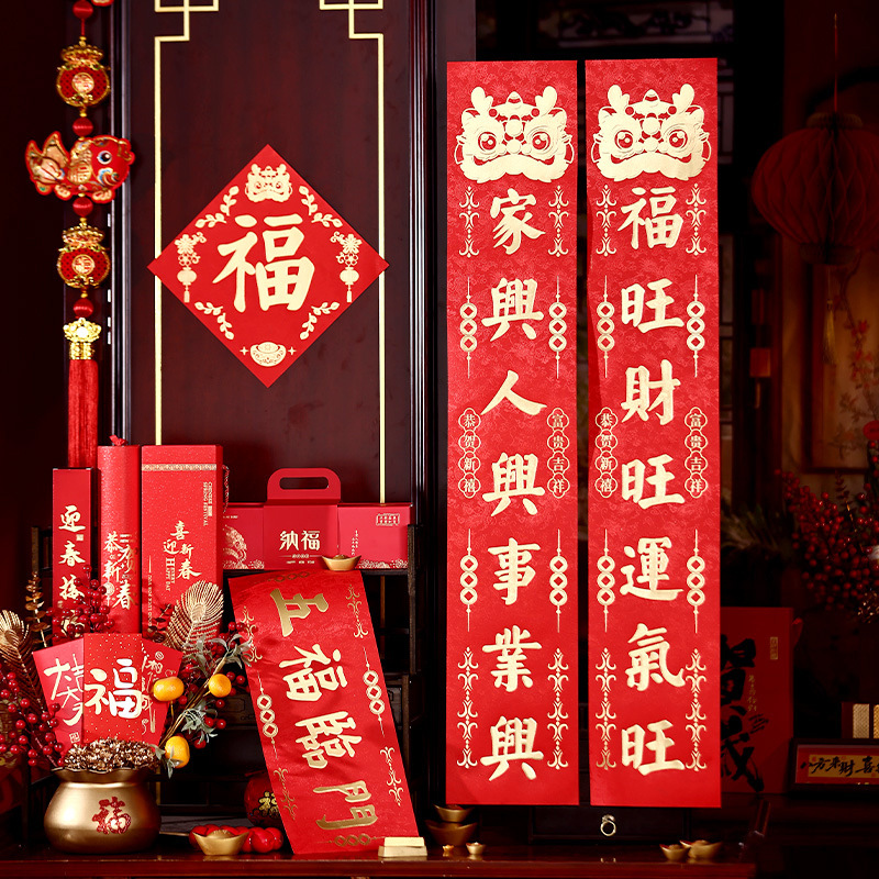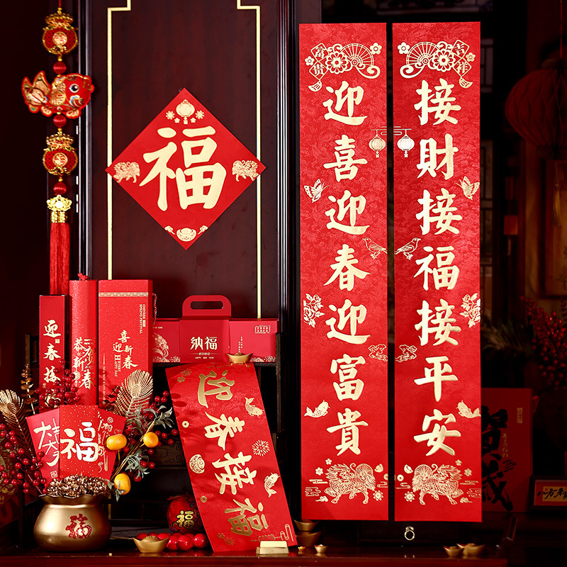 2026马年烫金对联定制植绒春联现货大礼盒定做企业银行印LOGO批发