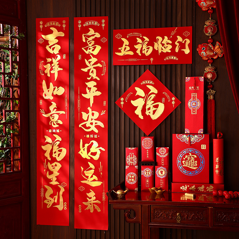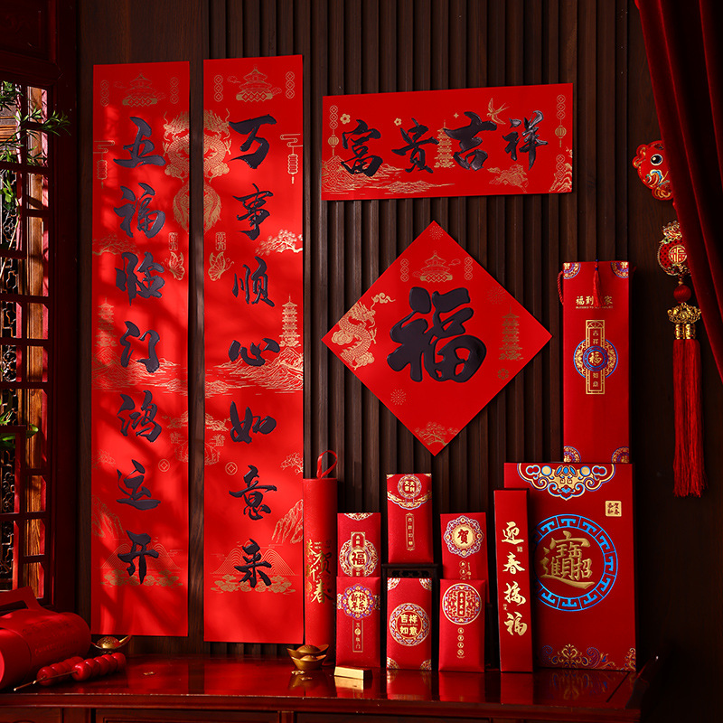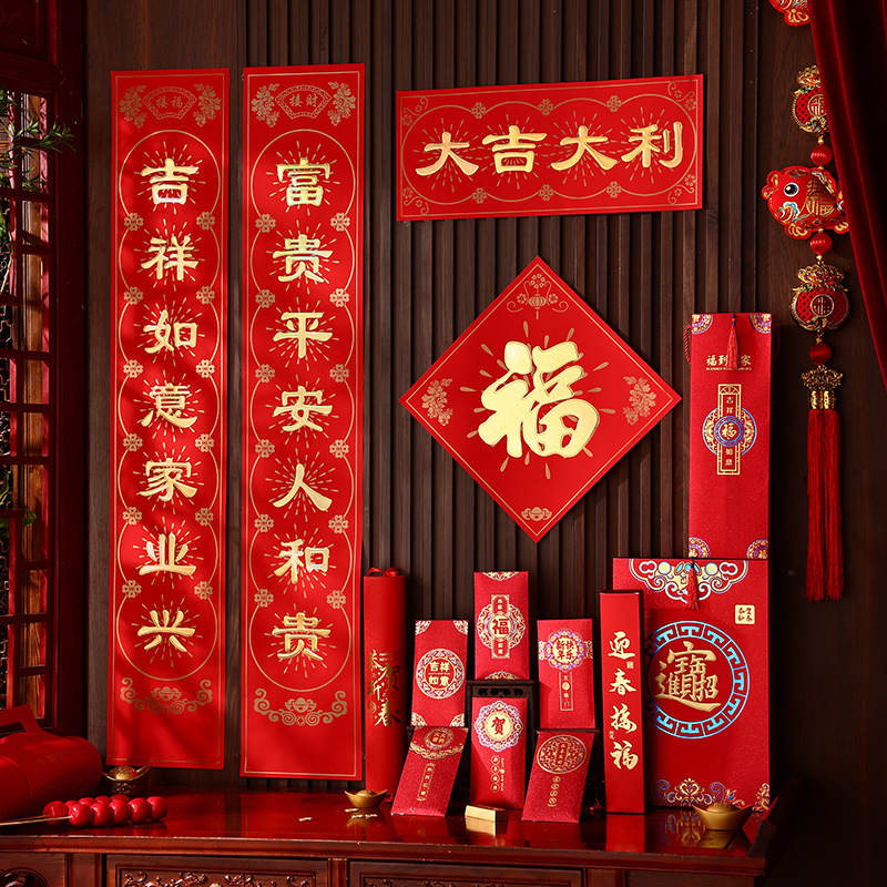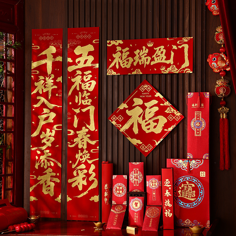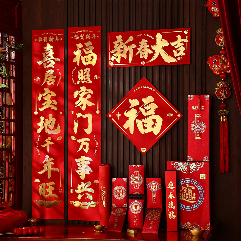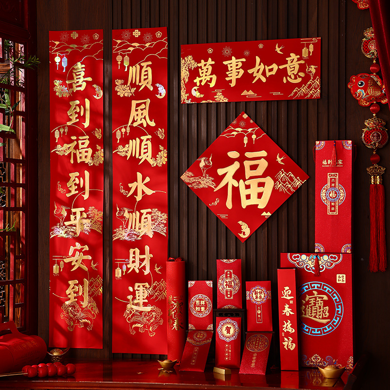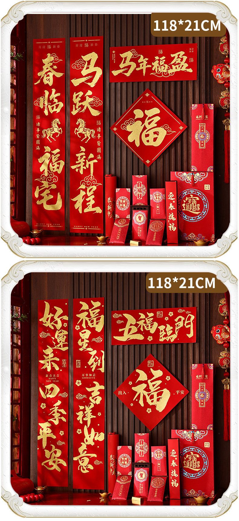 2026马年烫金对联定制植绒春联现货大礼盒定做企业银行印LOGO批发