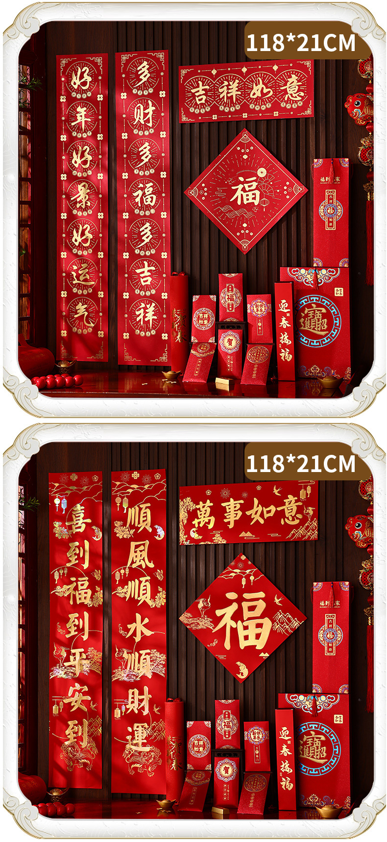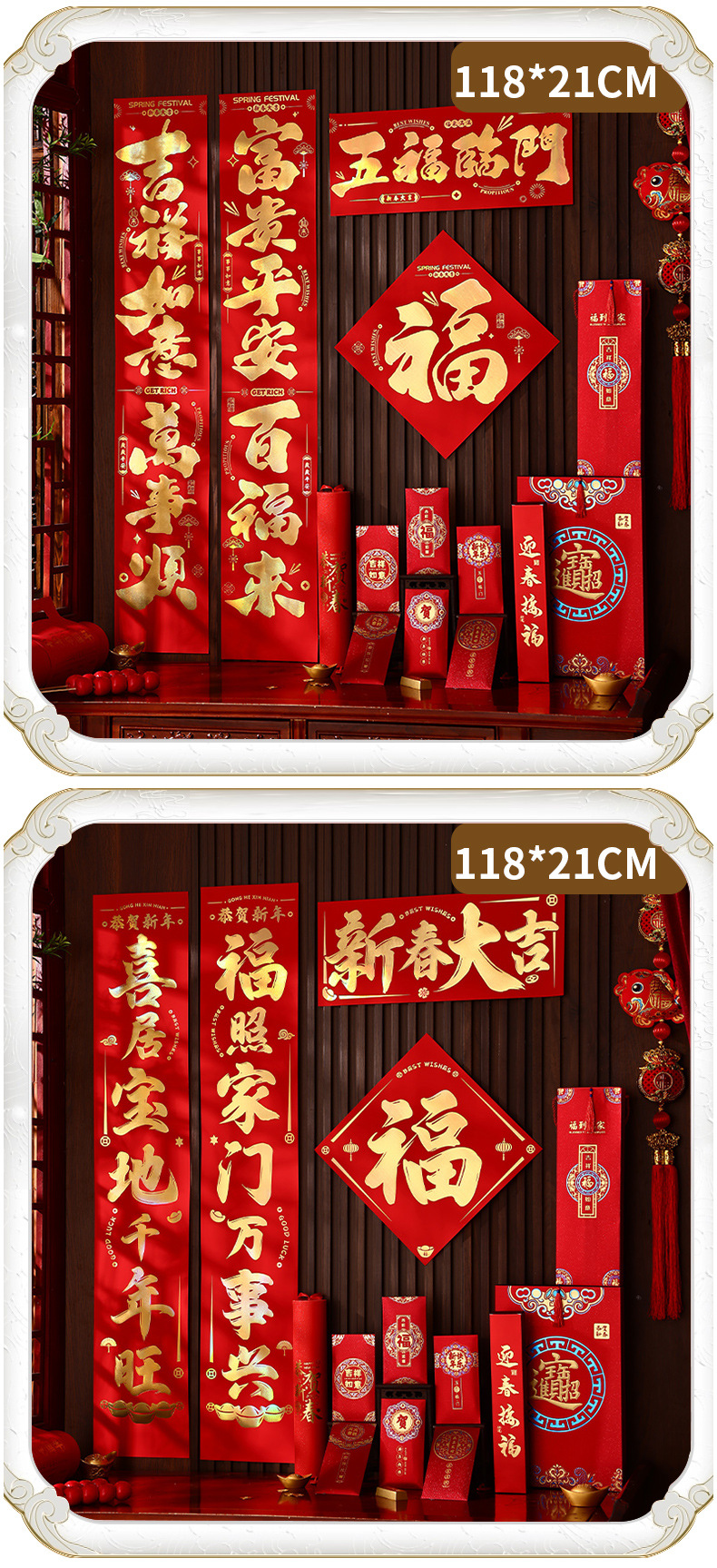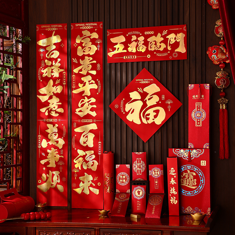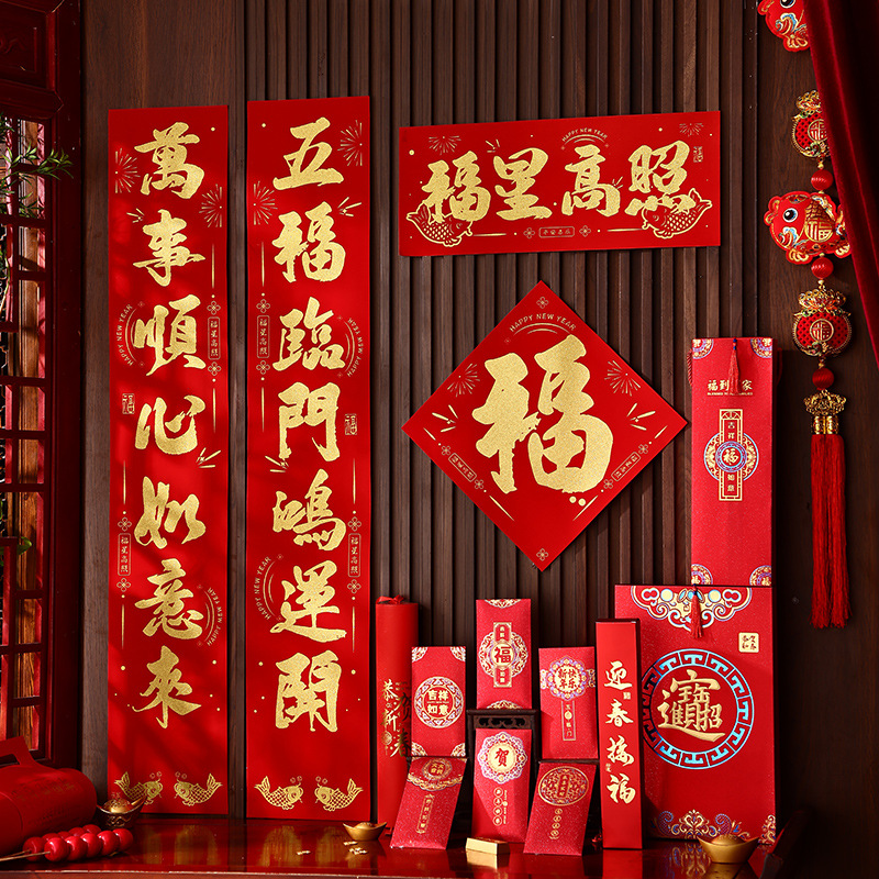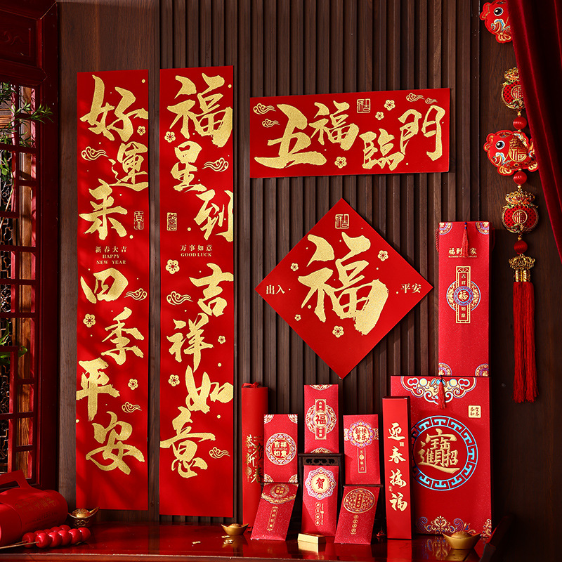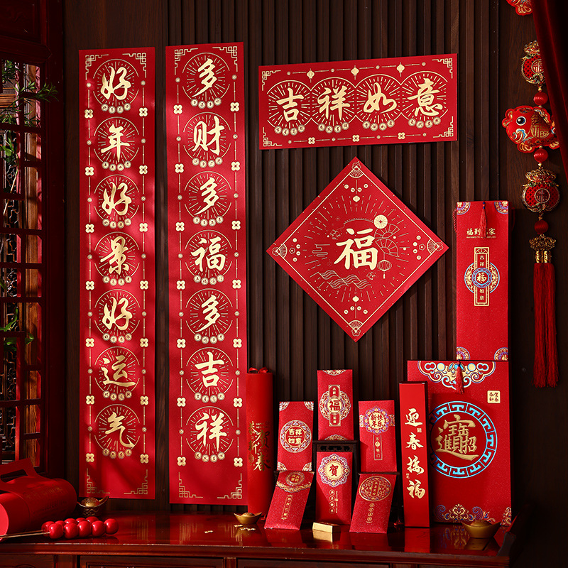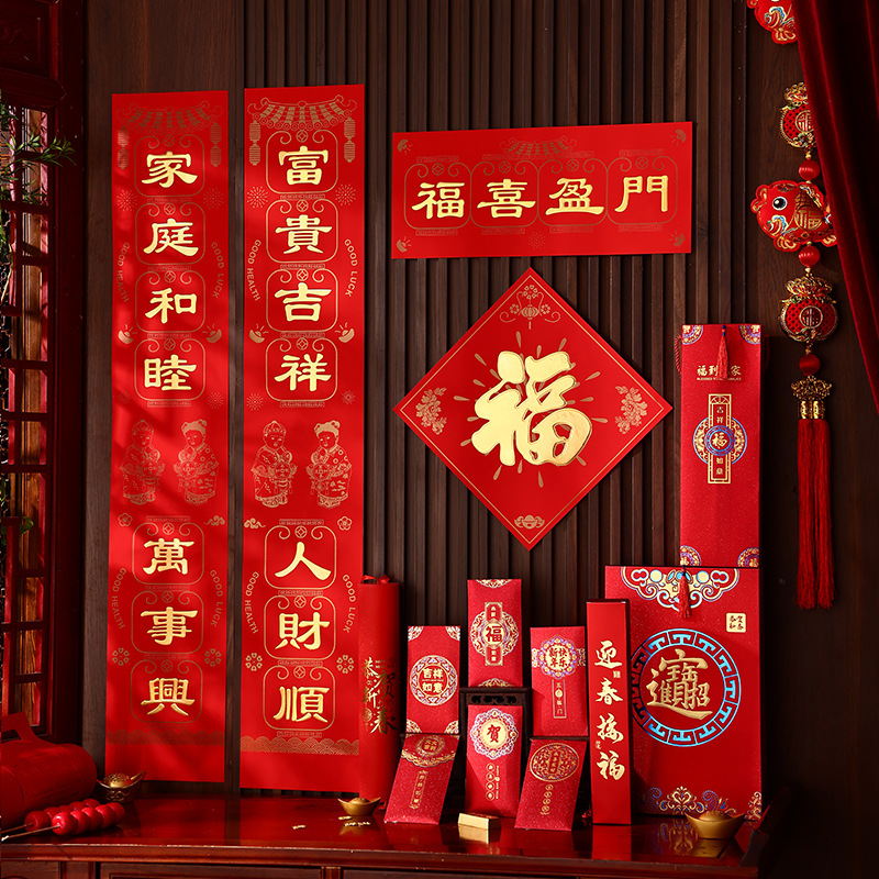 2026马年烫金对联定制植绒春联现货大礼盒定做企业银行印LOGO批发