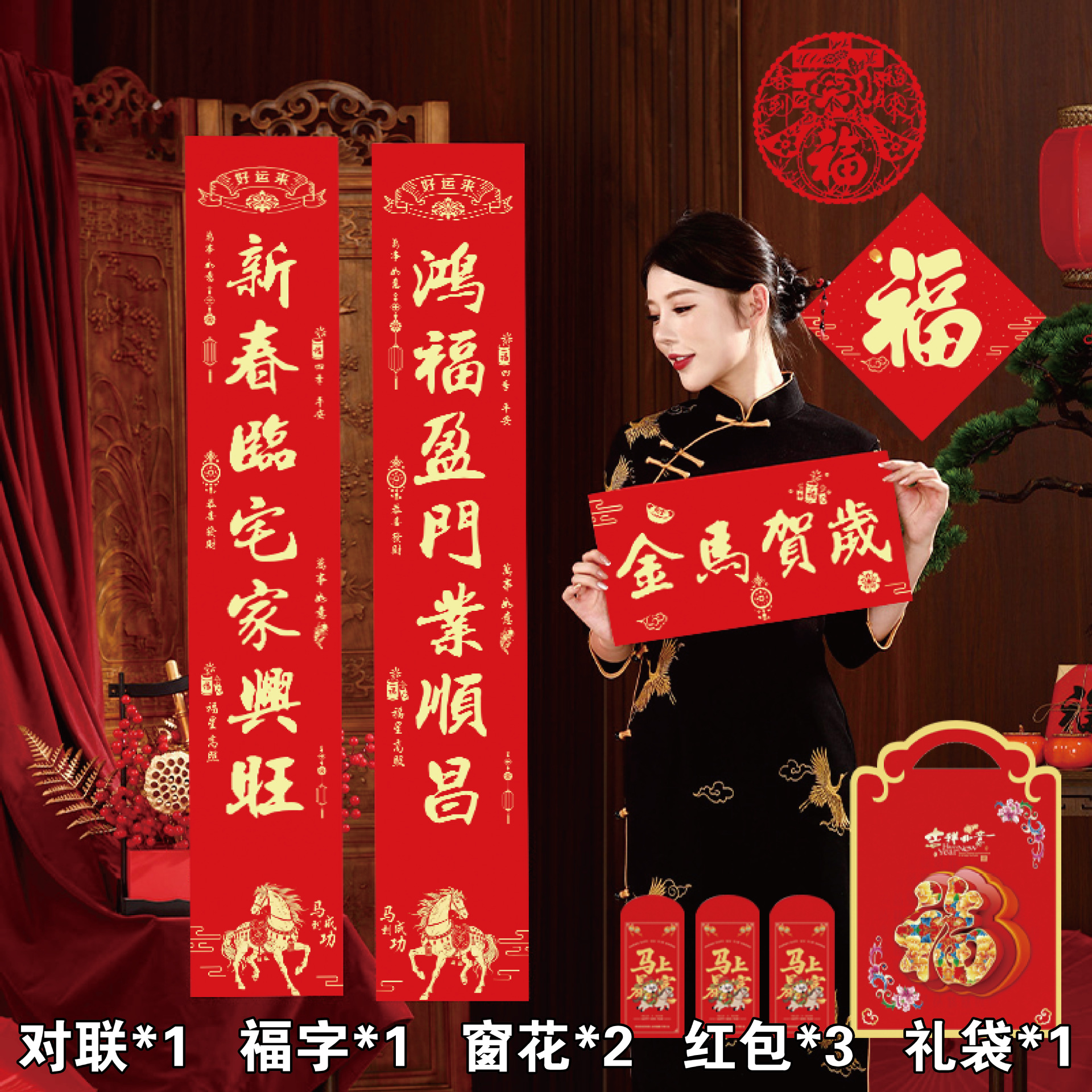 对联定制2026马年广告春联定制印logo烫金礼盒春节过年大礼包批货